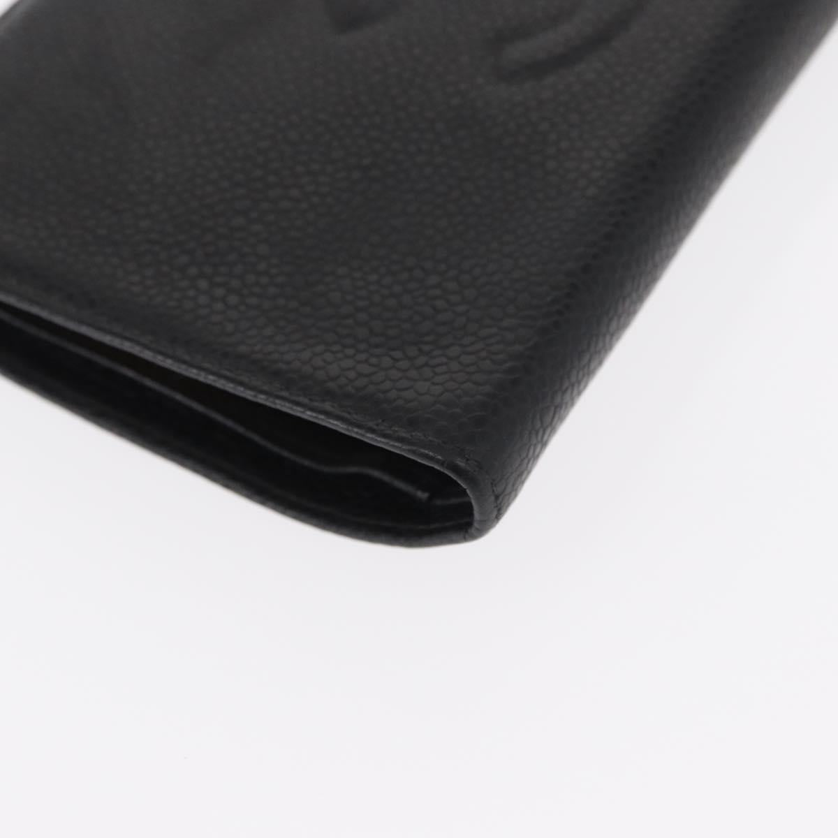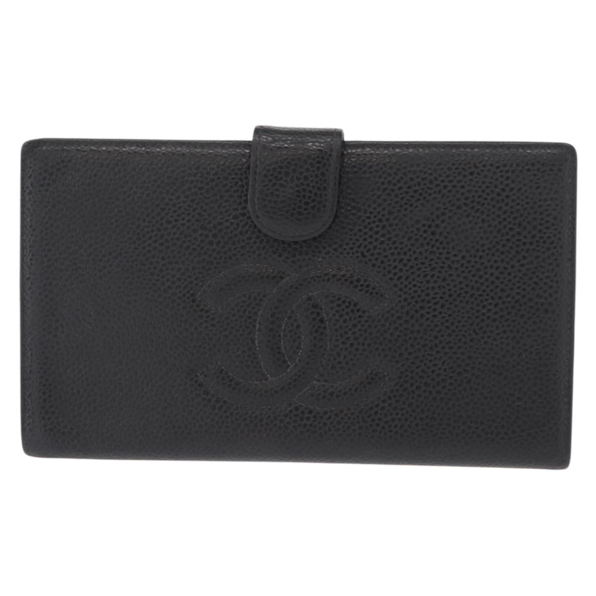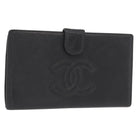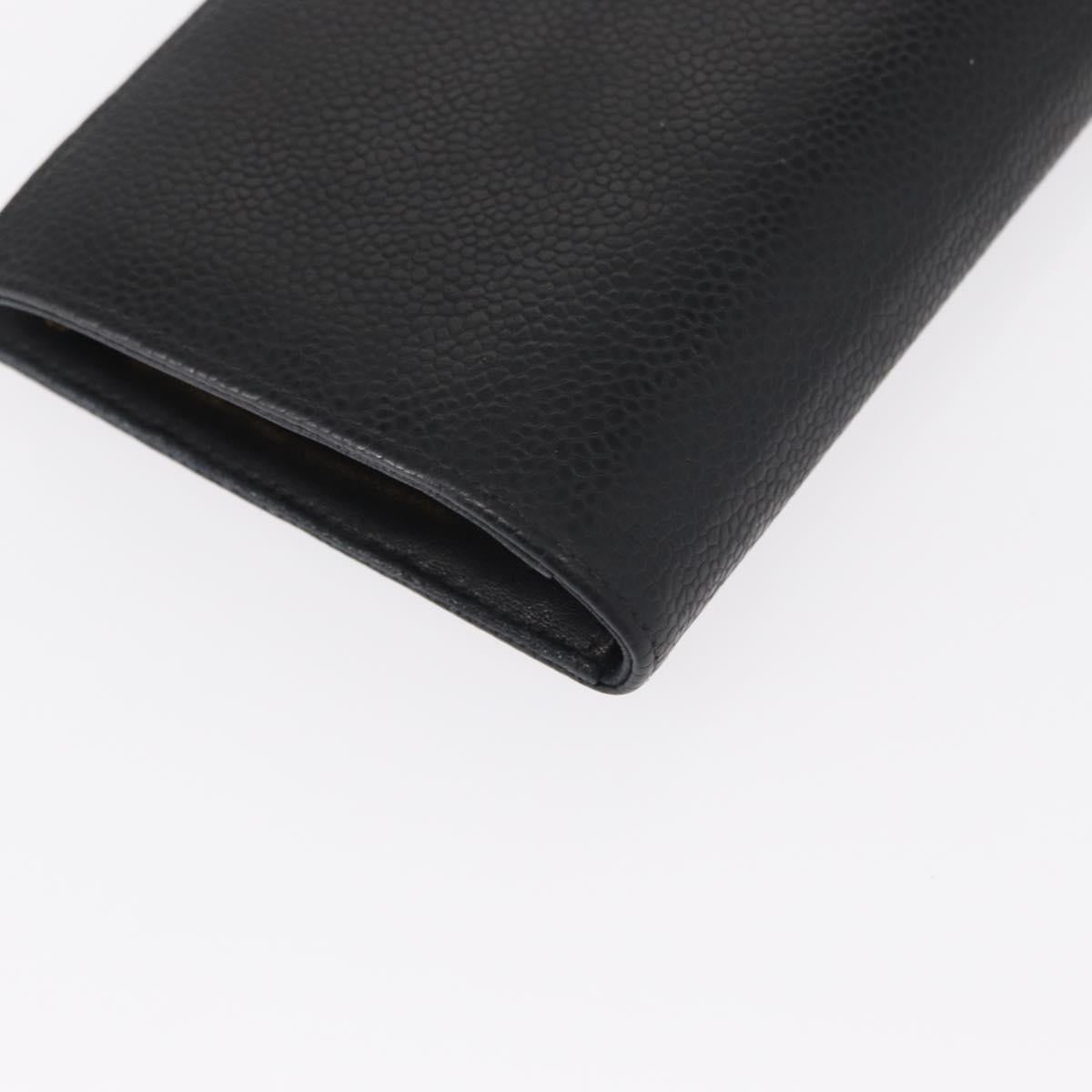CHANEL Long Wallet Caviar Skin Black Gold CC Auth bs31972