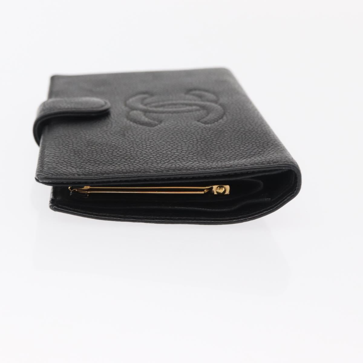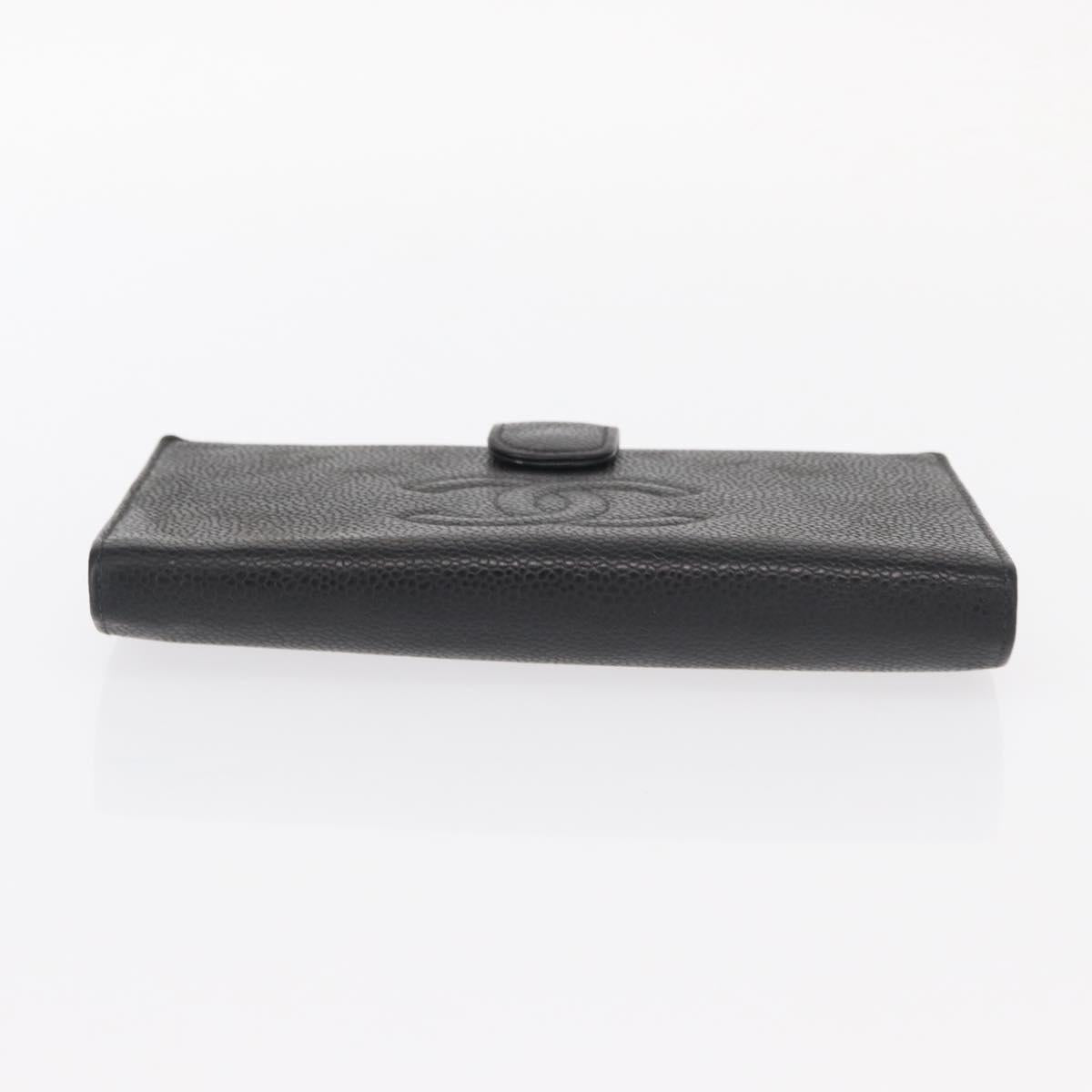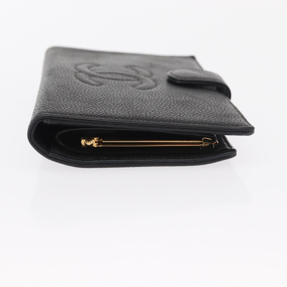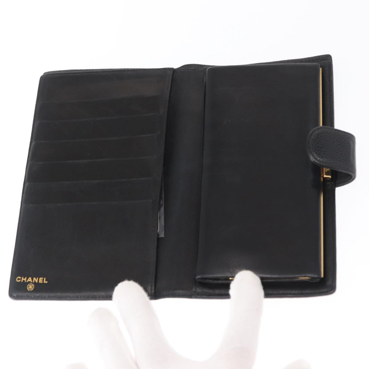 CHANEL Long Wallet Caviar Skin Black Gold CC Auth bs31972