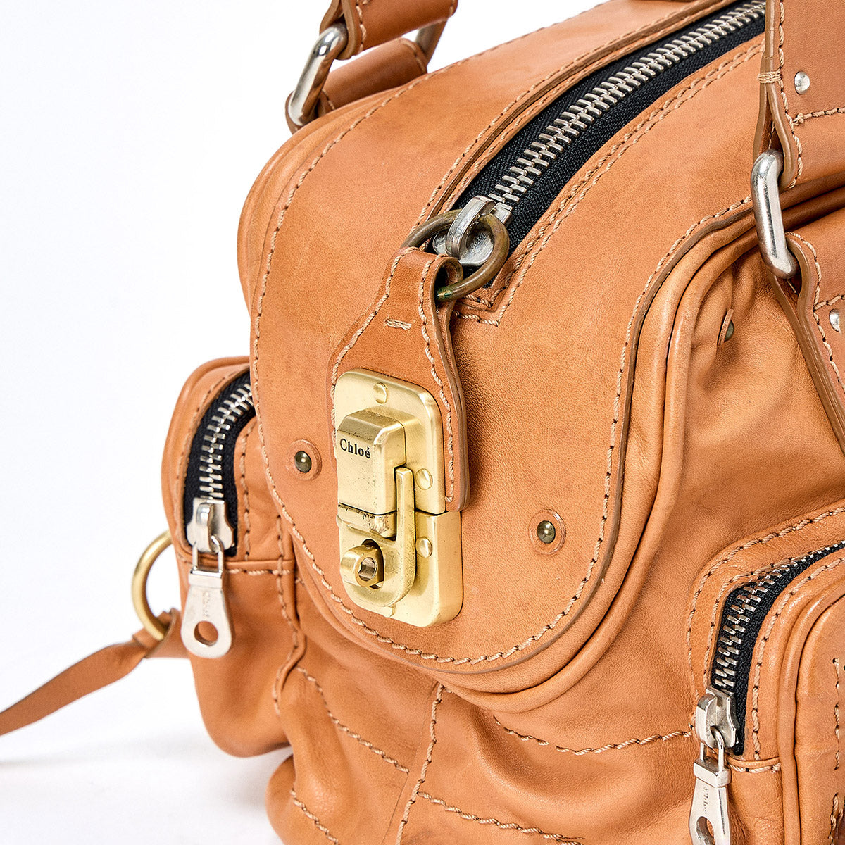 Chloe Betty Hand Bag Caramel Gold Leather Auth