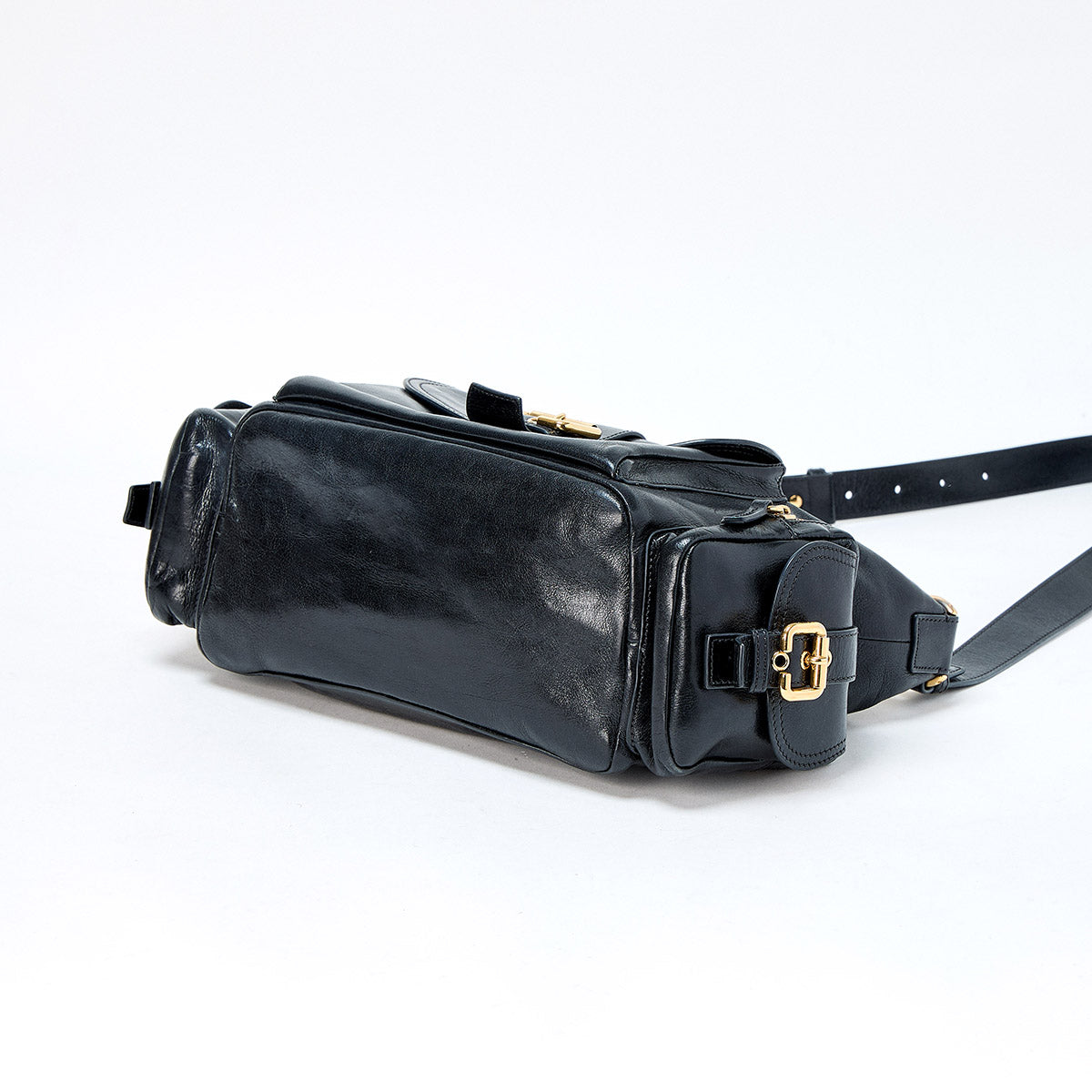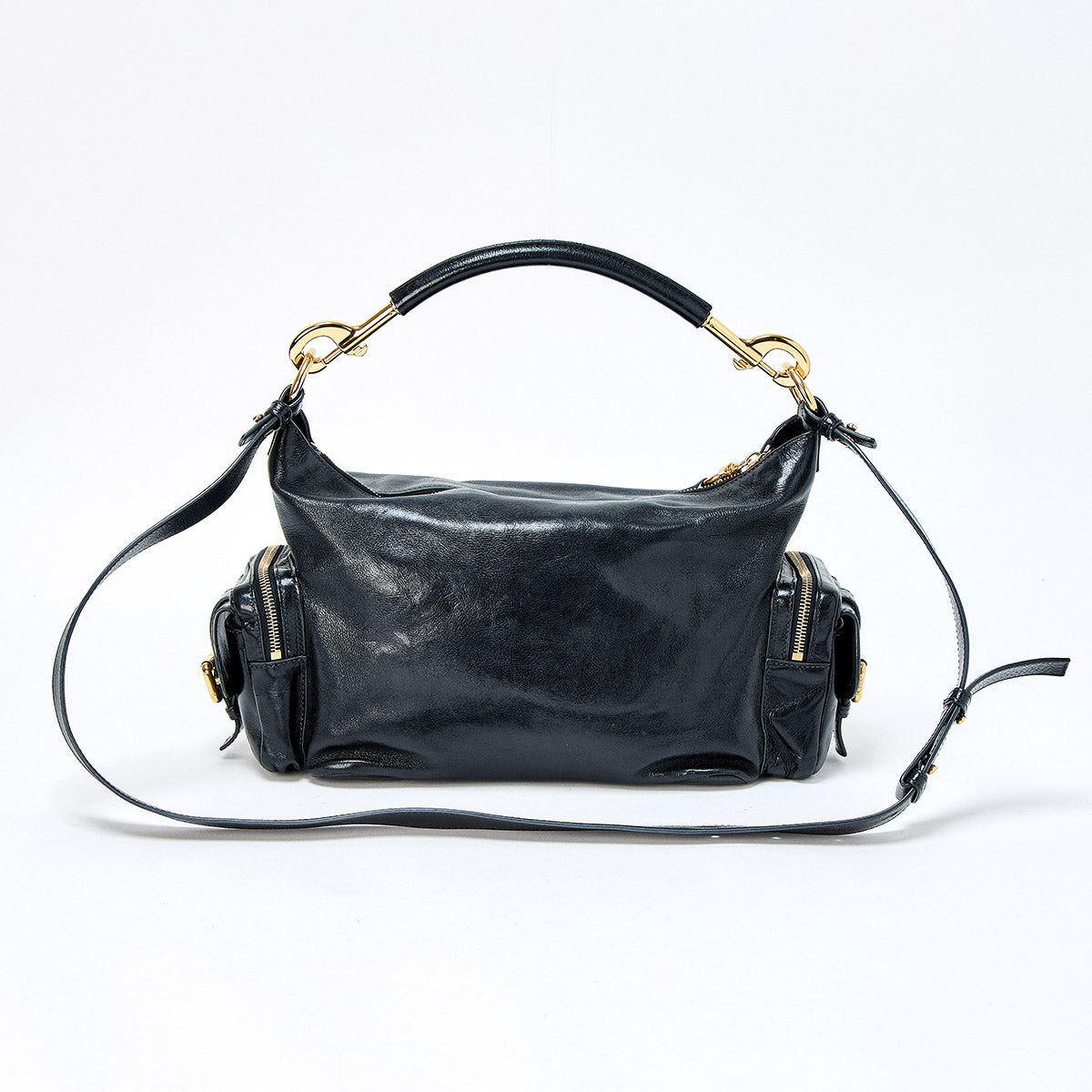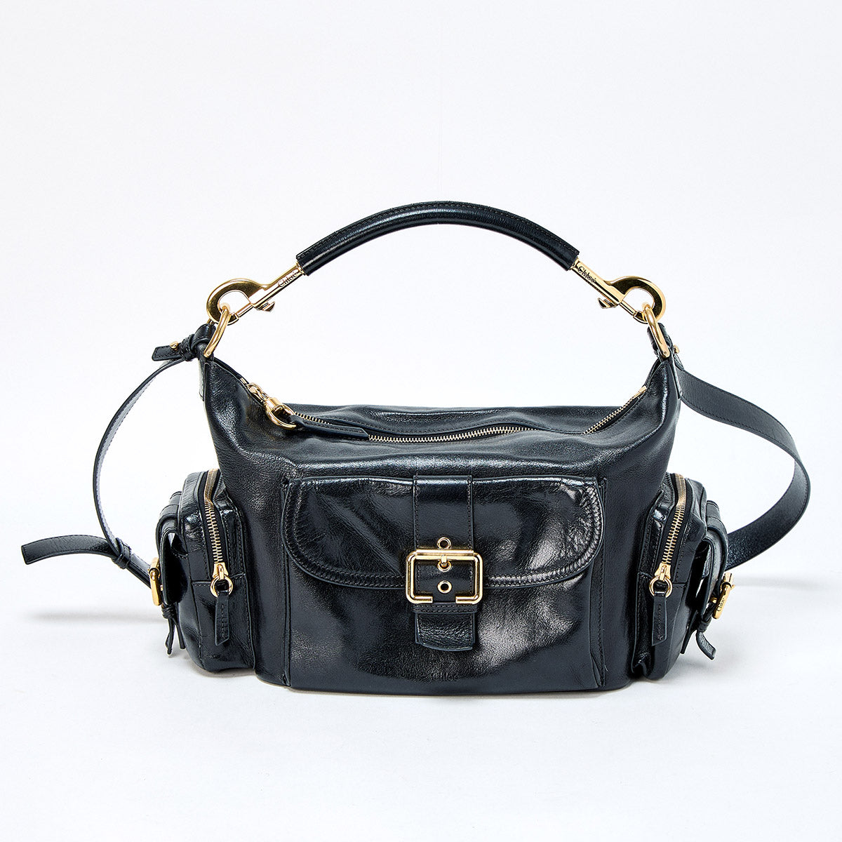 Chloe Camera Bag Hand Bag Black Gold Shiny Leather Auth