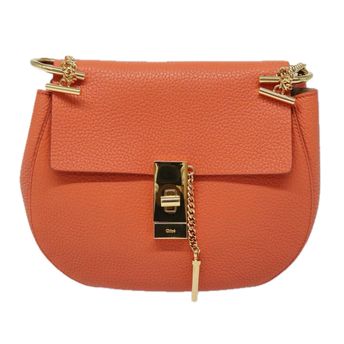 Chloe Chain Drew Shoulder Bag Leather Orange Gold Auth am6946AV