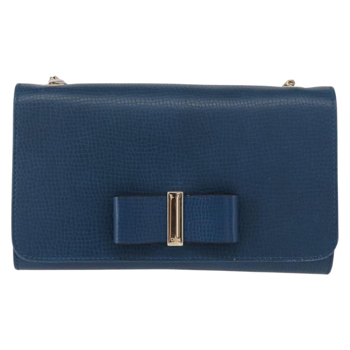 Chloe Chain Shoulder Bag Leather Blue Gold Auth BA8819