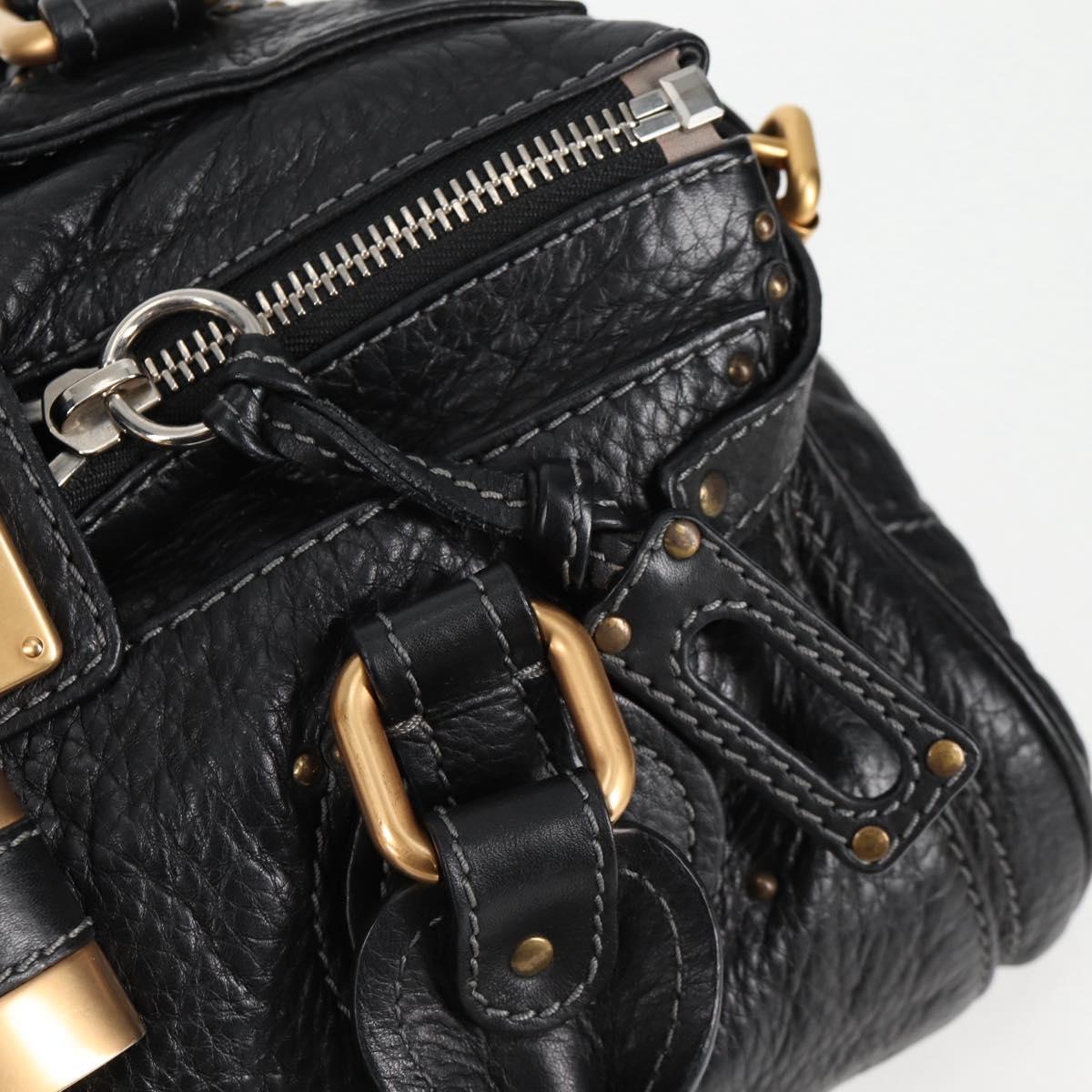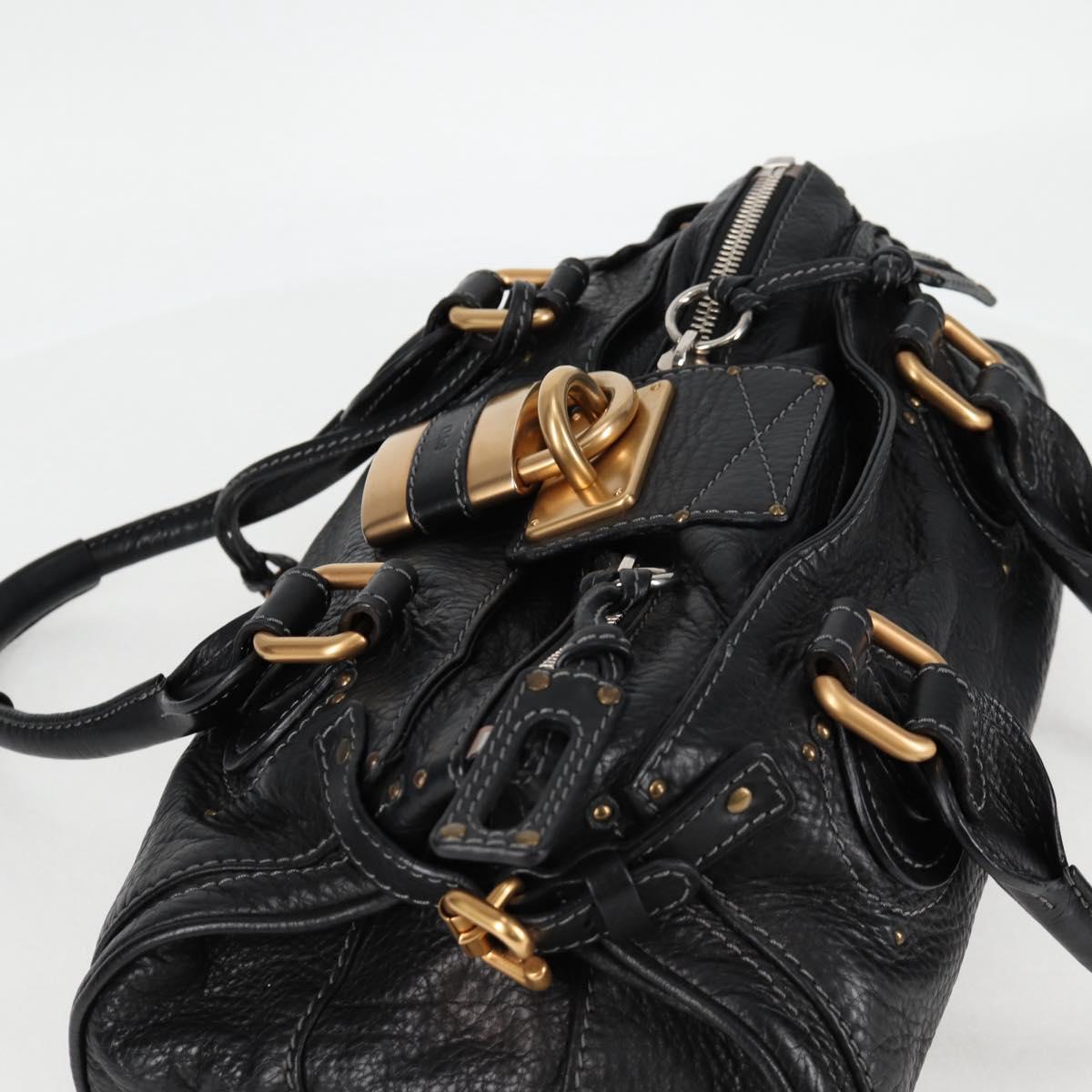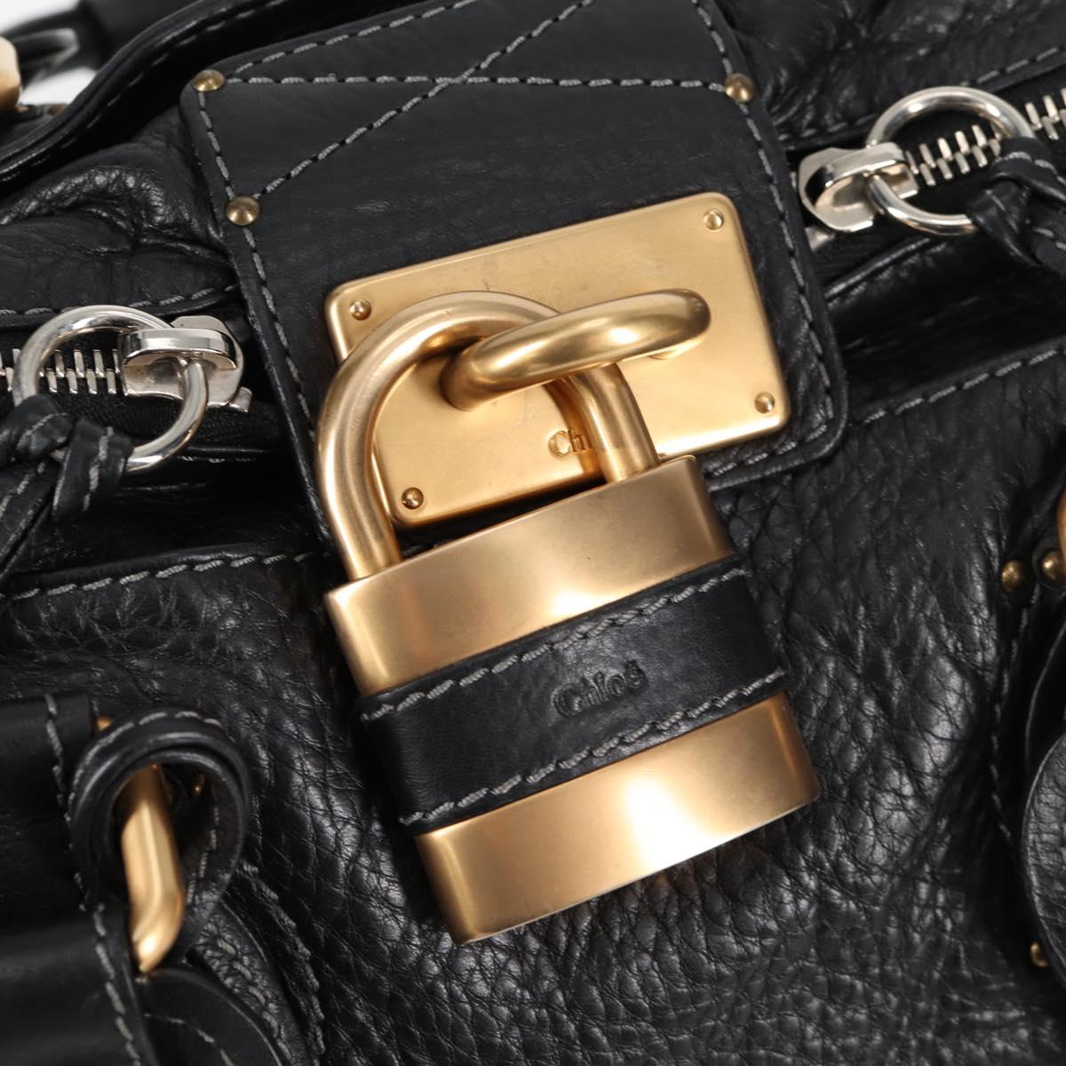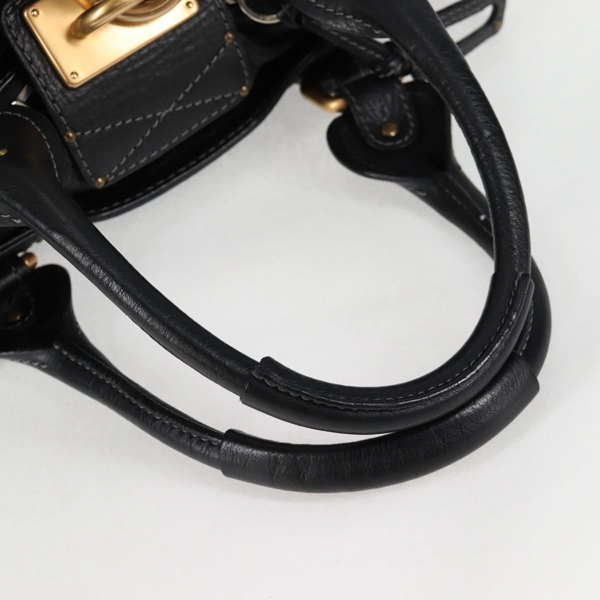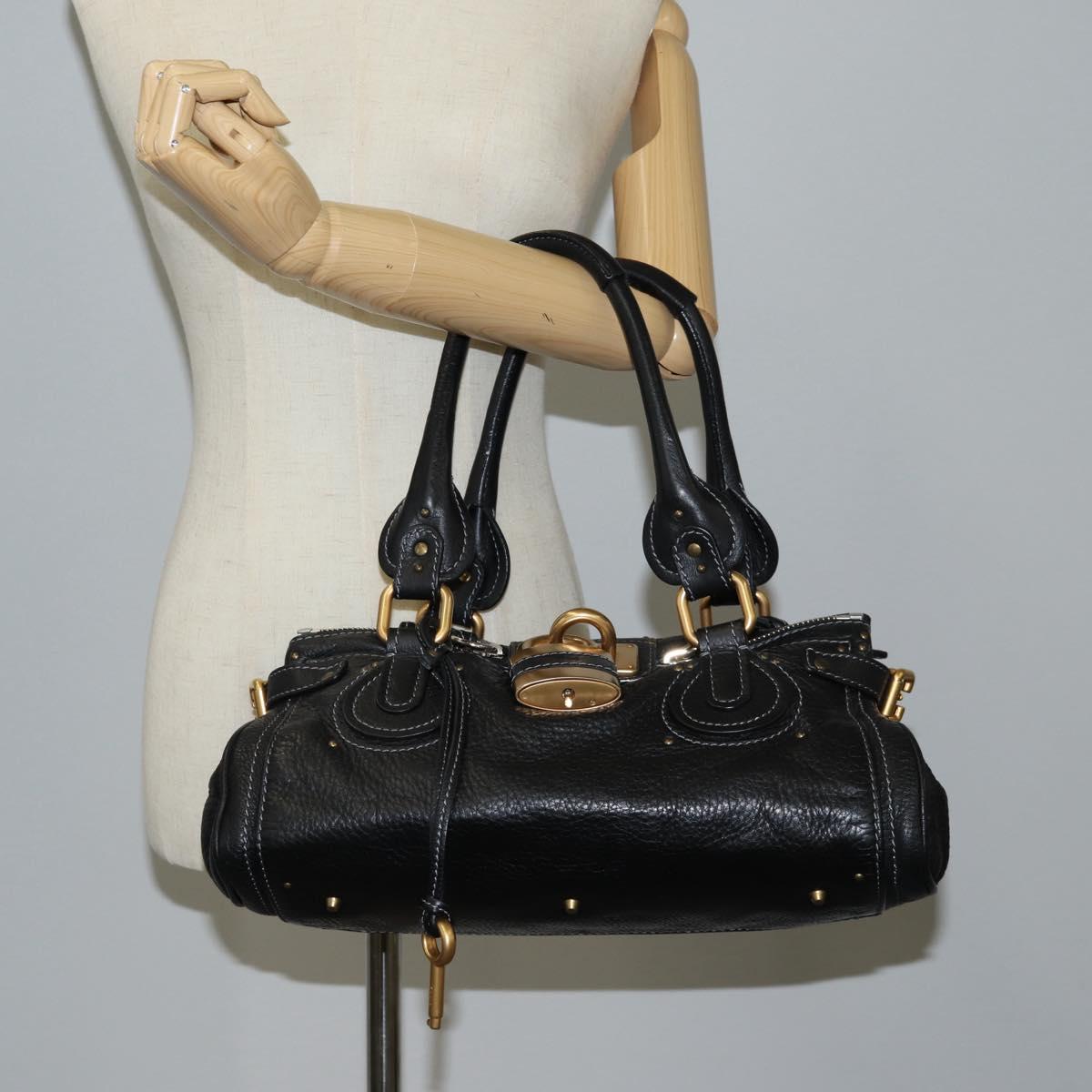 Chloe Paddington Hand Bag Leather Black Gold Silver Auth am8266AM