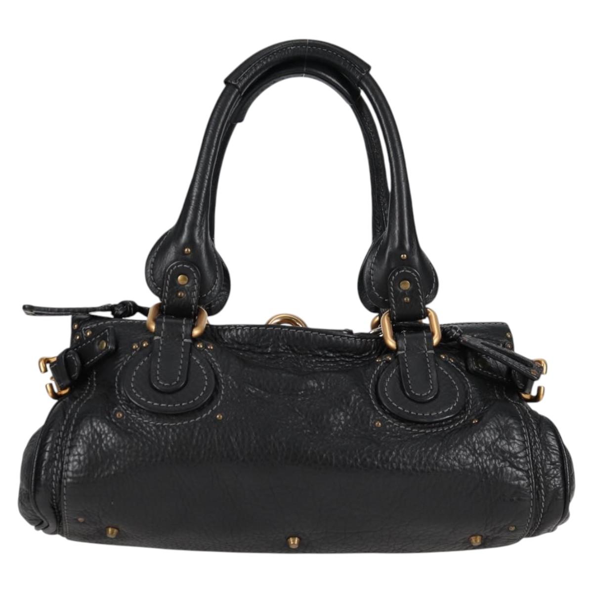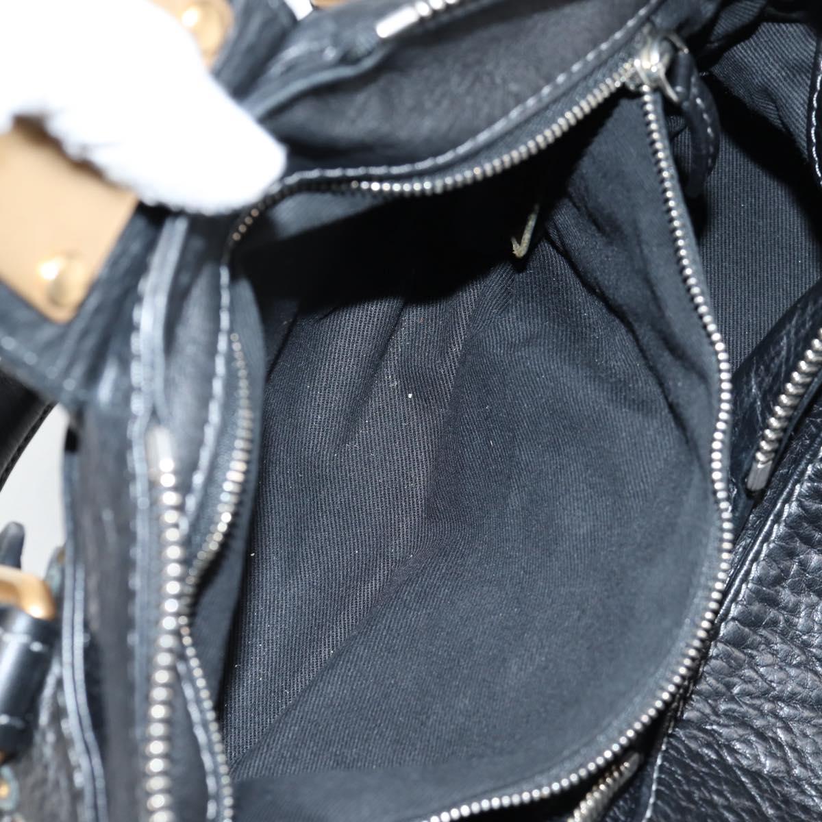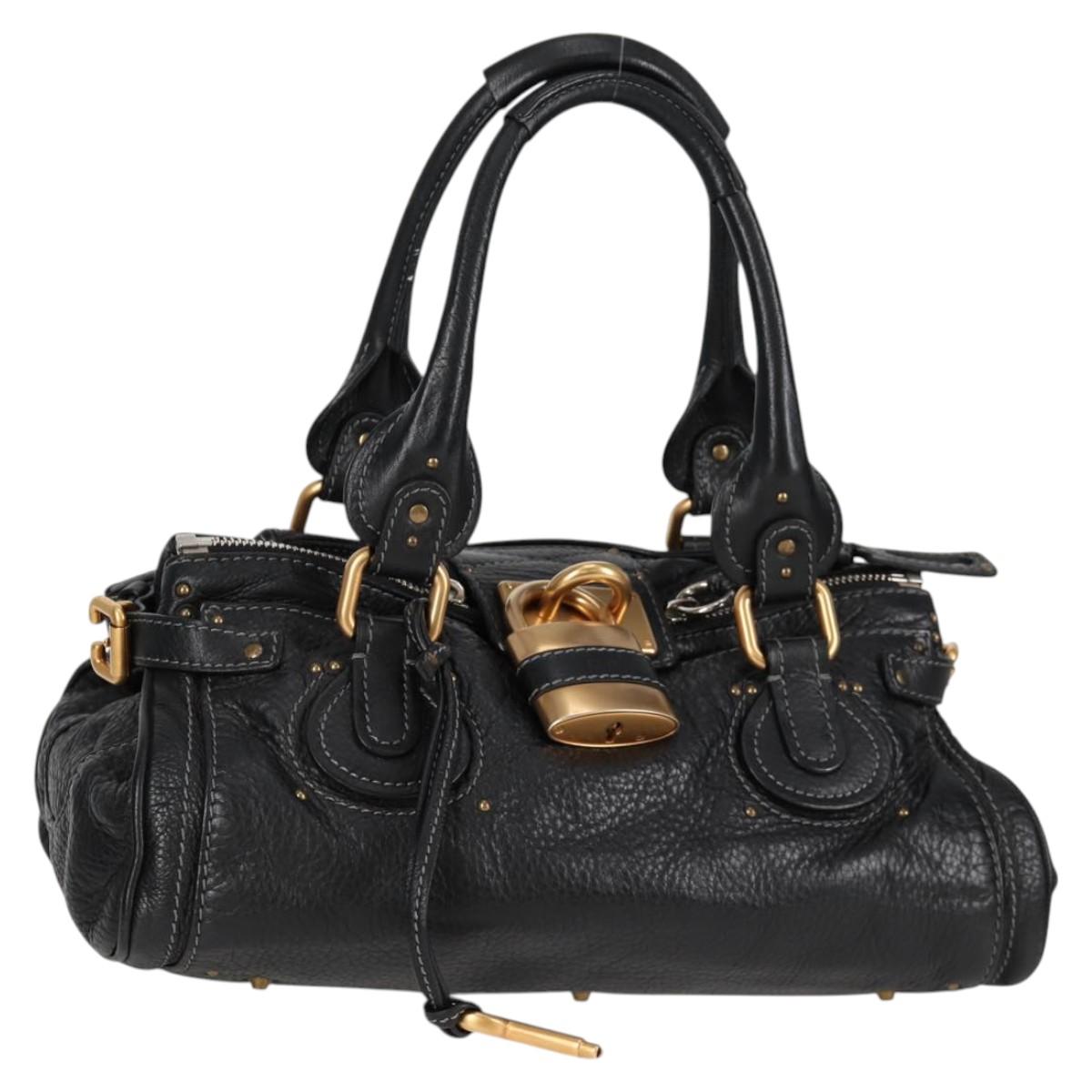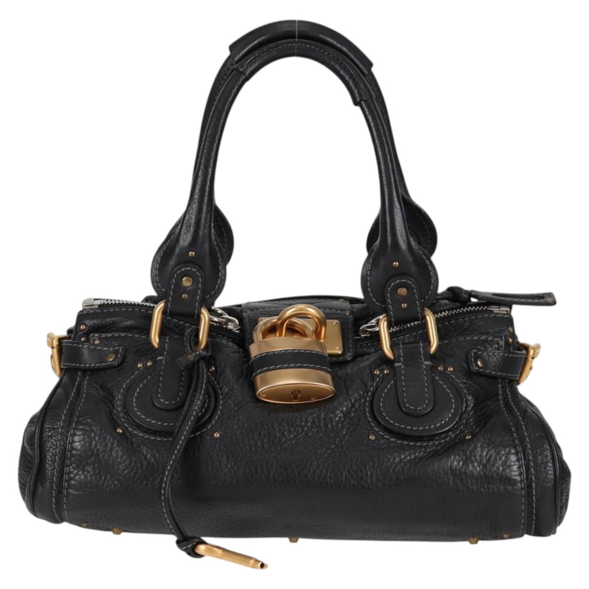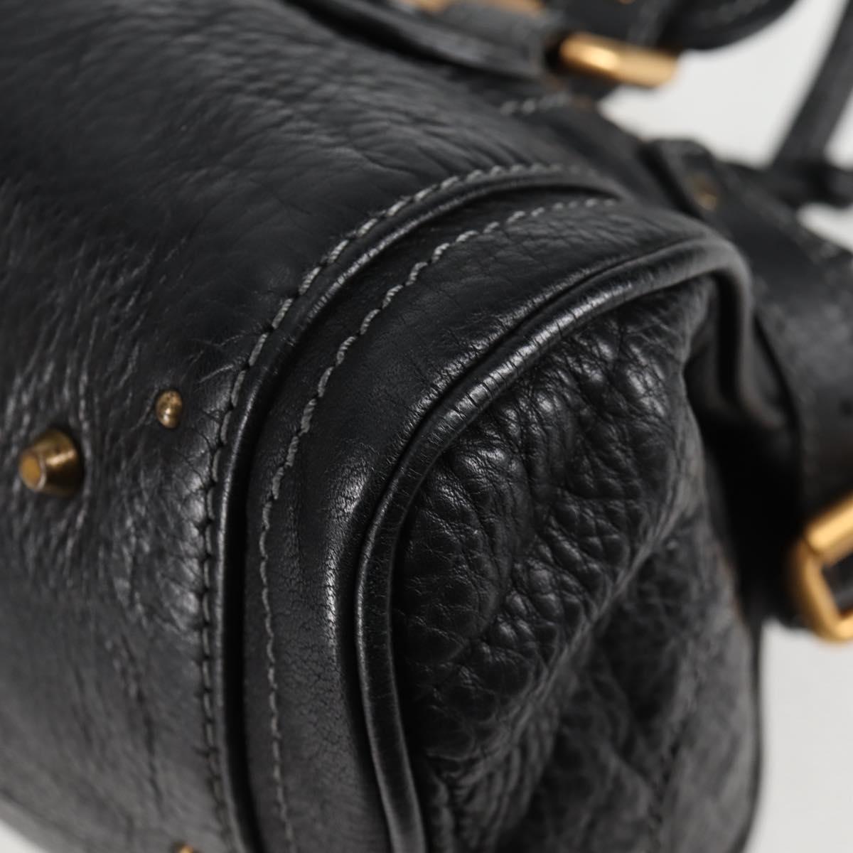 Chloe Paddington Hand Bag Leather Black Gold Silver Auth am8266AM