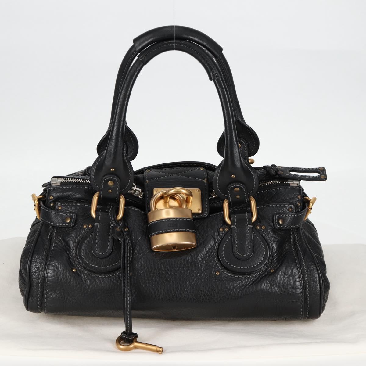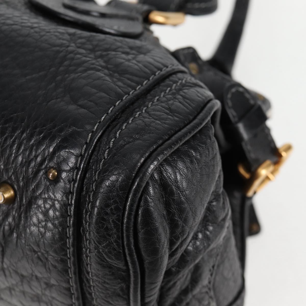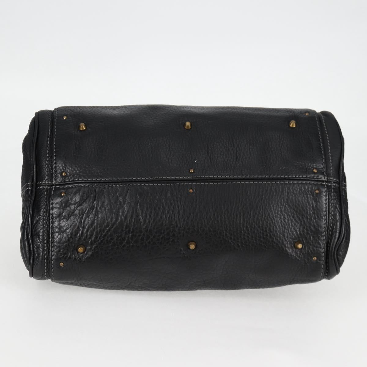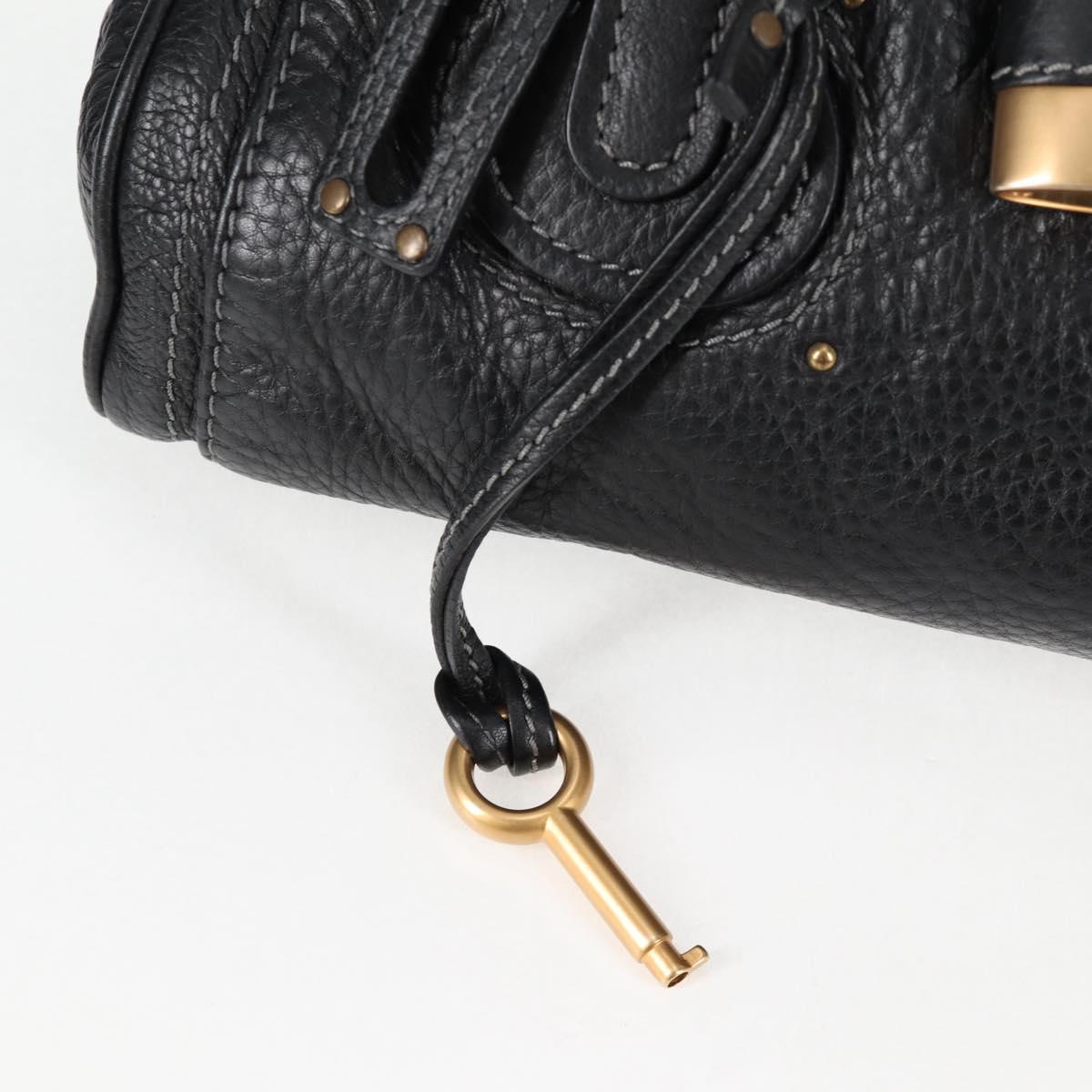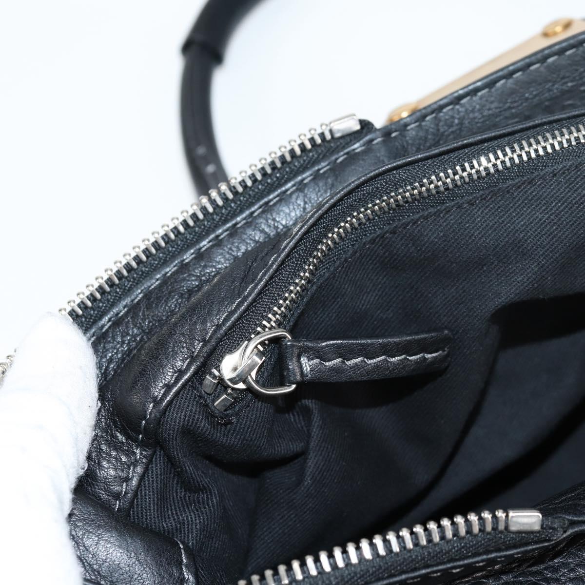 Chloe Paddington Hand Bag Leather Black Gold Silver Auth am8266AM