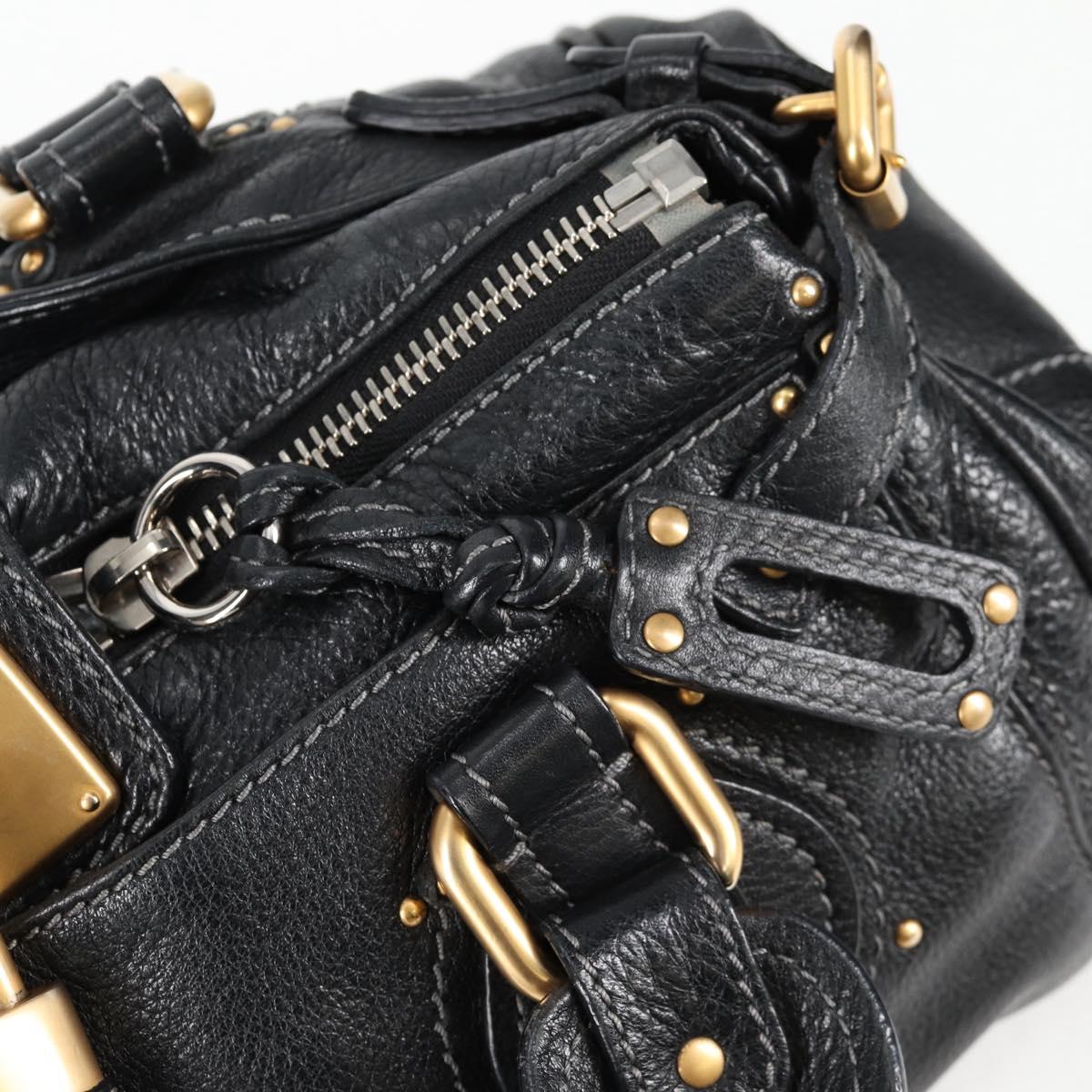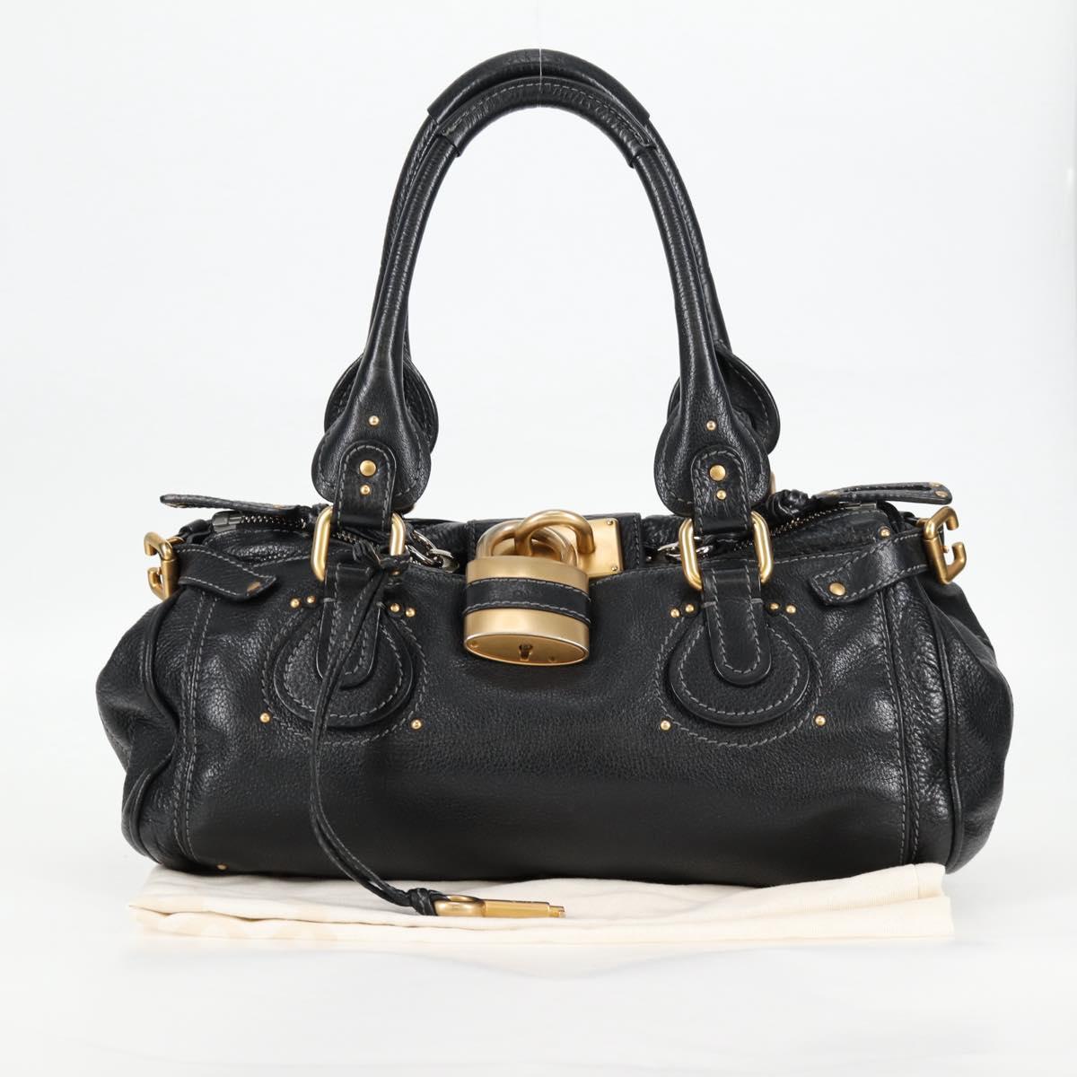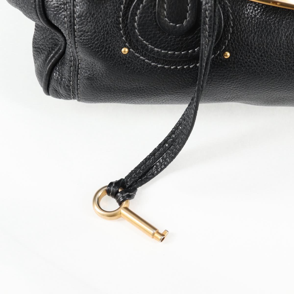 Chloe Paddington Hand Bag Leather Black Gold Silver Auth am8514V