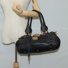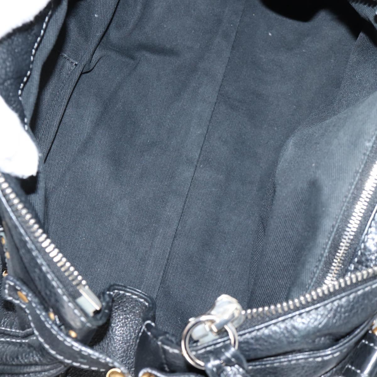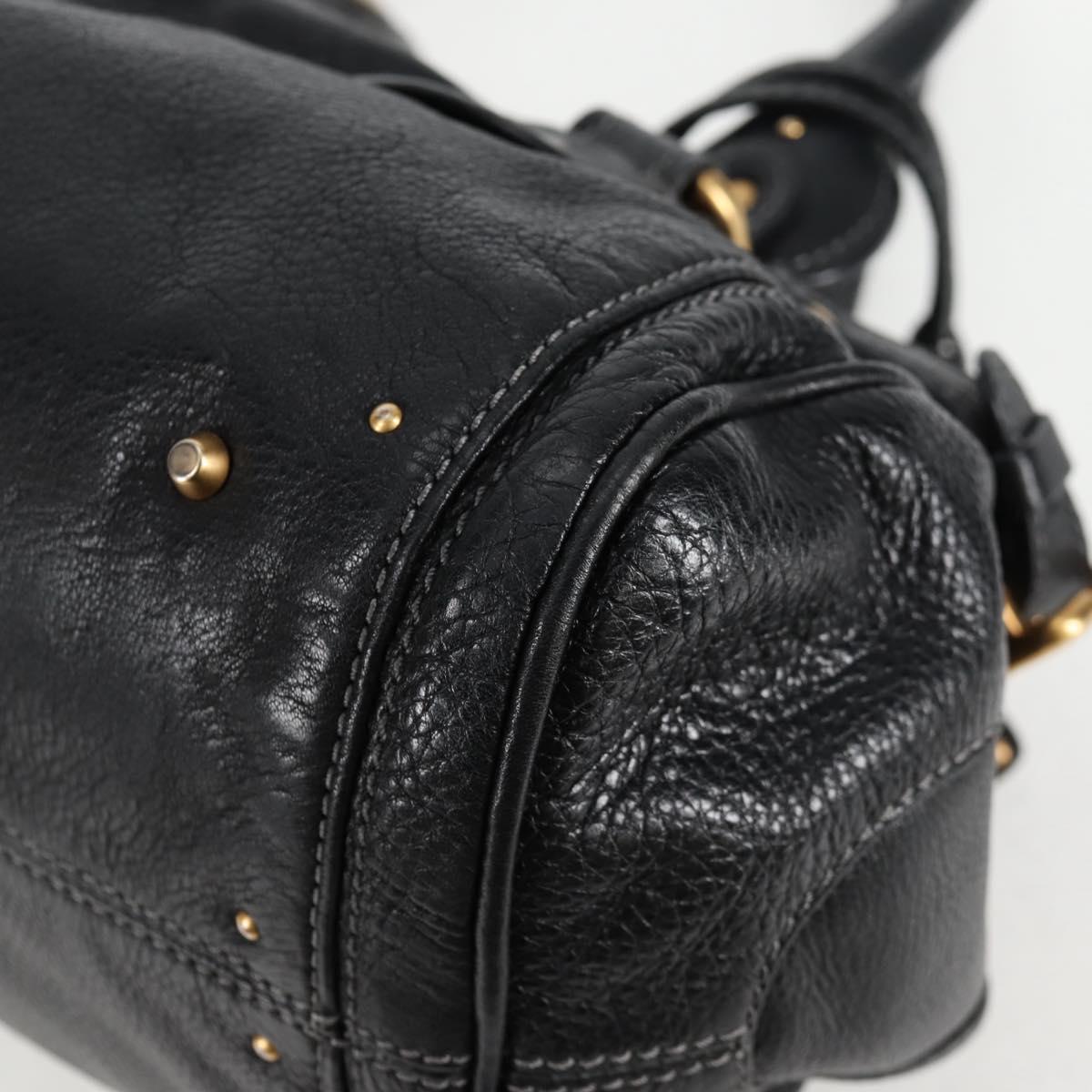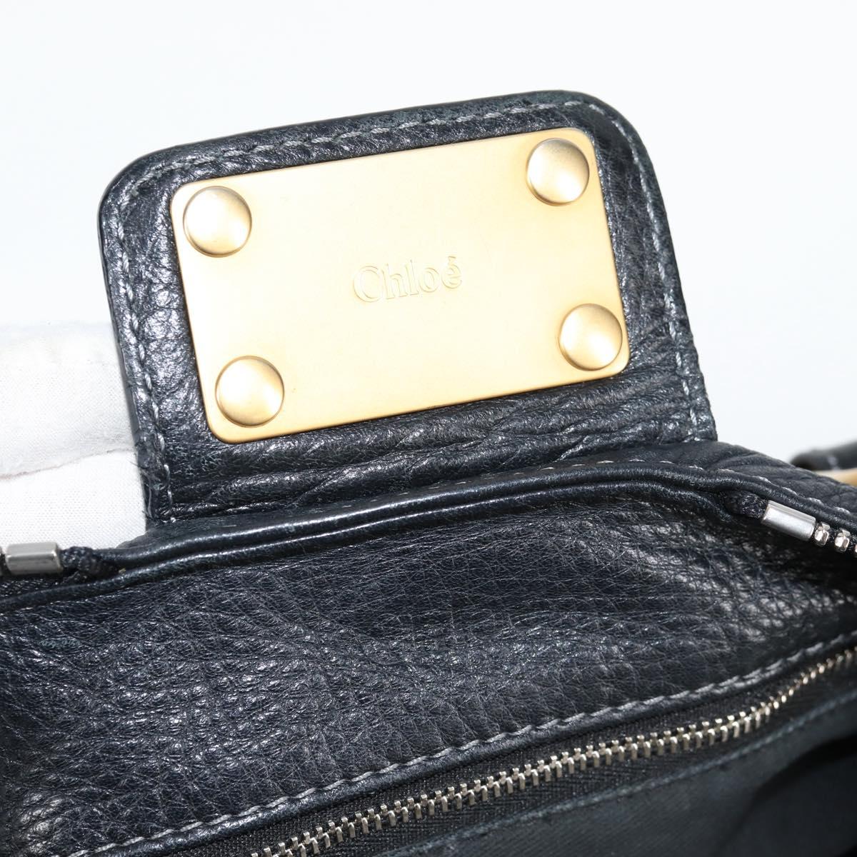 Chloe Paddington Hand Bag Leather Black Gold Silver Auth am8514V