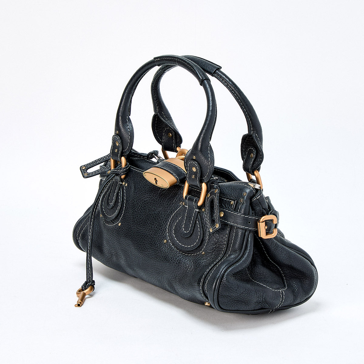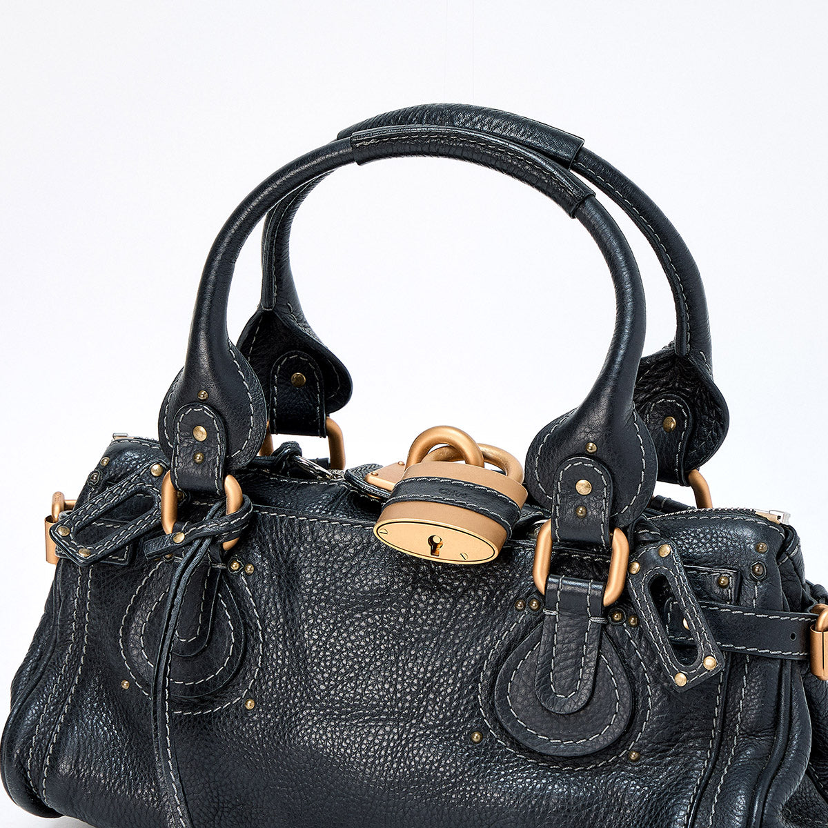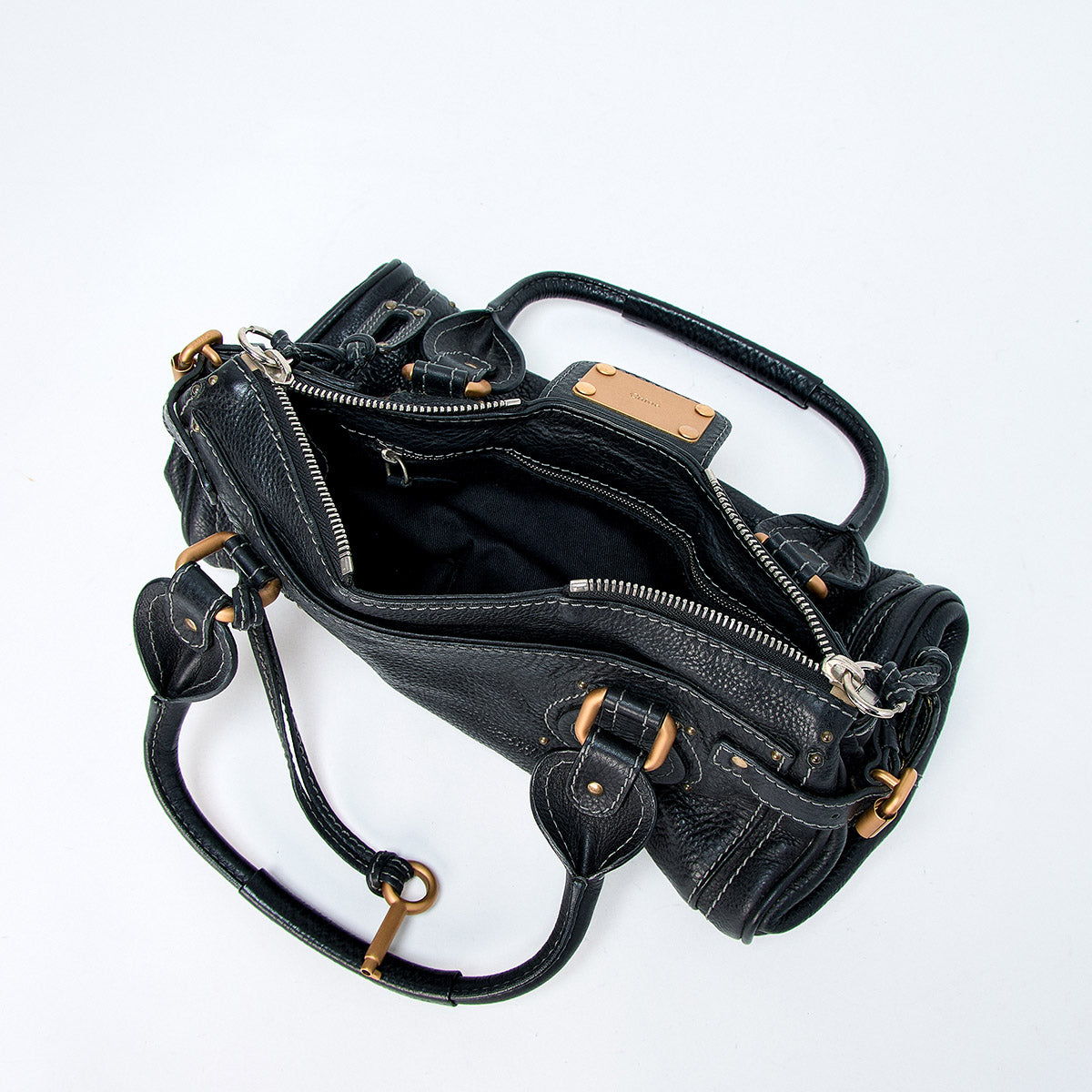 Chloe Paddington Medium Hand Bag Black Gold Leather Auth
