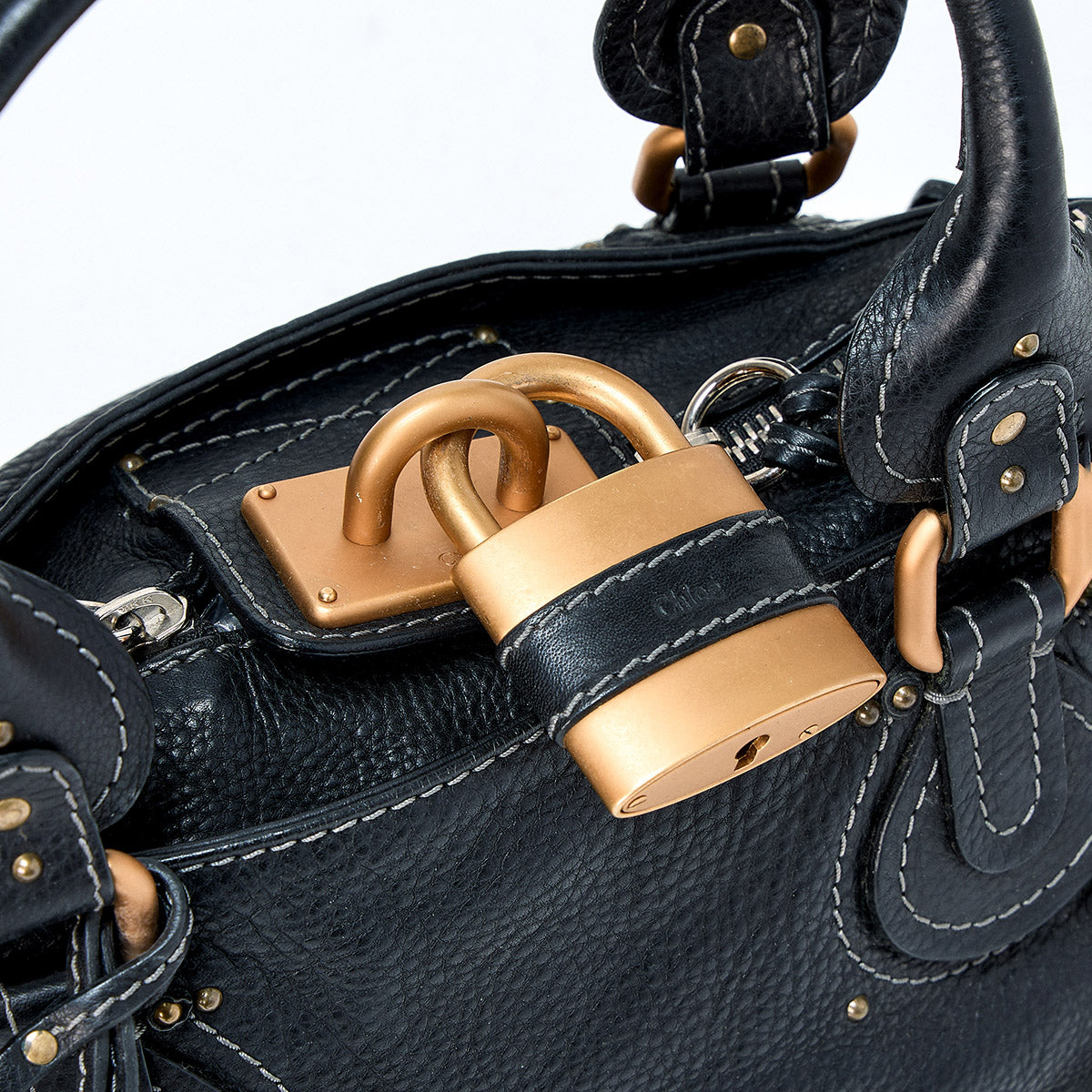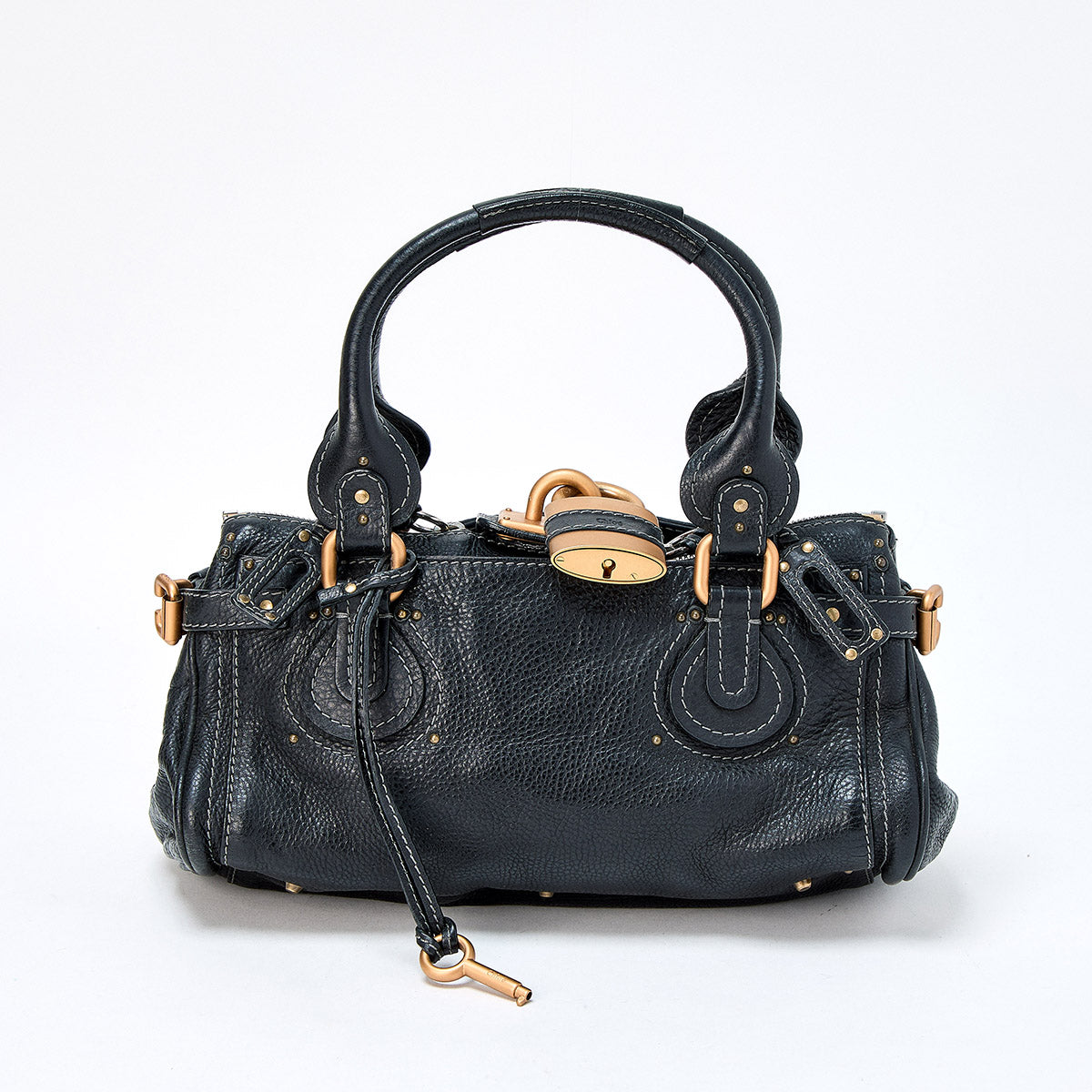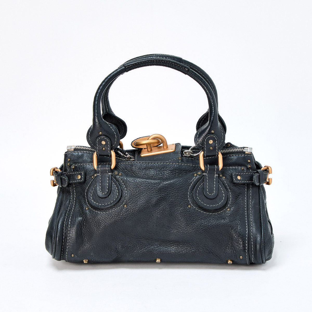 Chloe Paddington Medium Hand Bag Black Gold Leather Auth