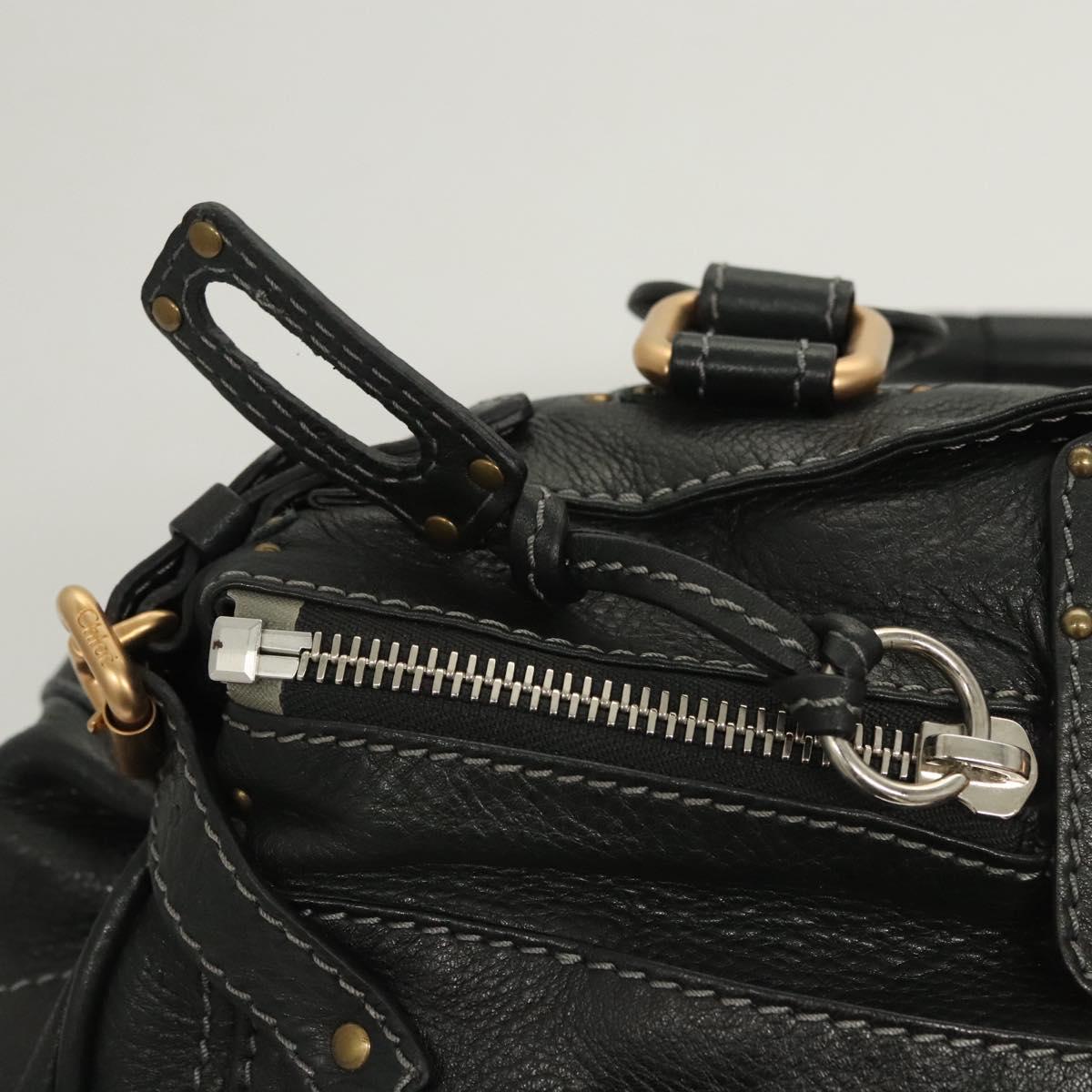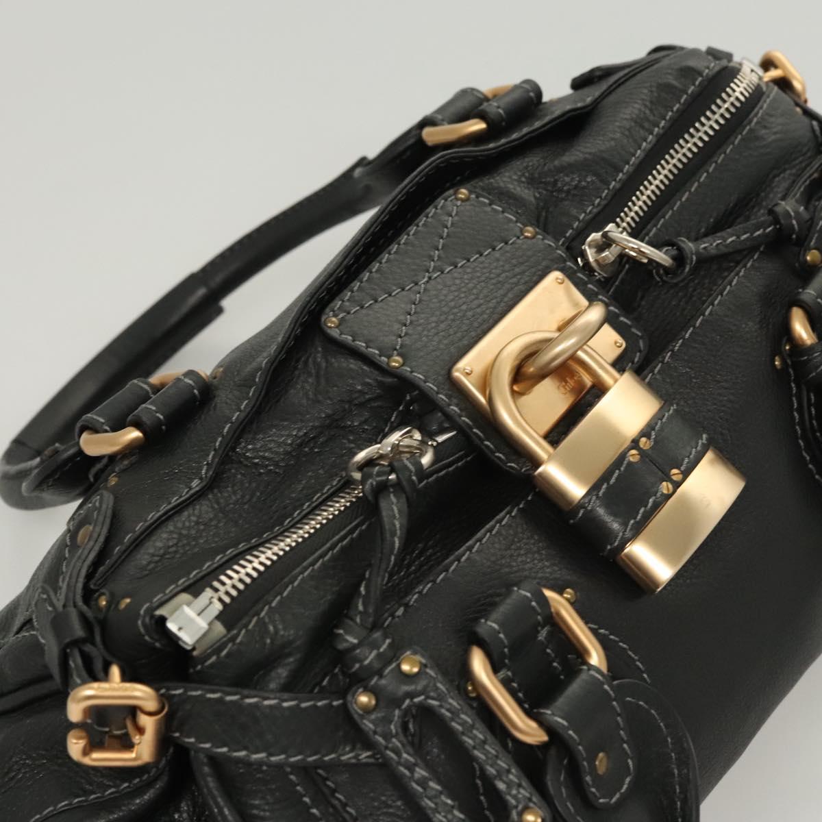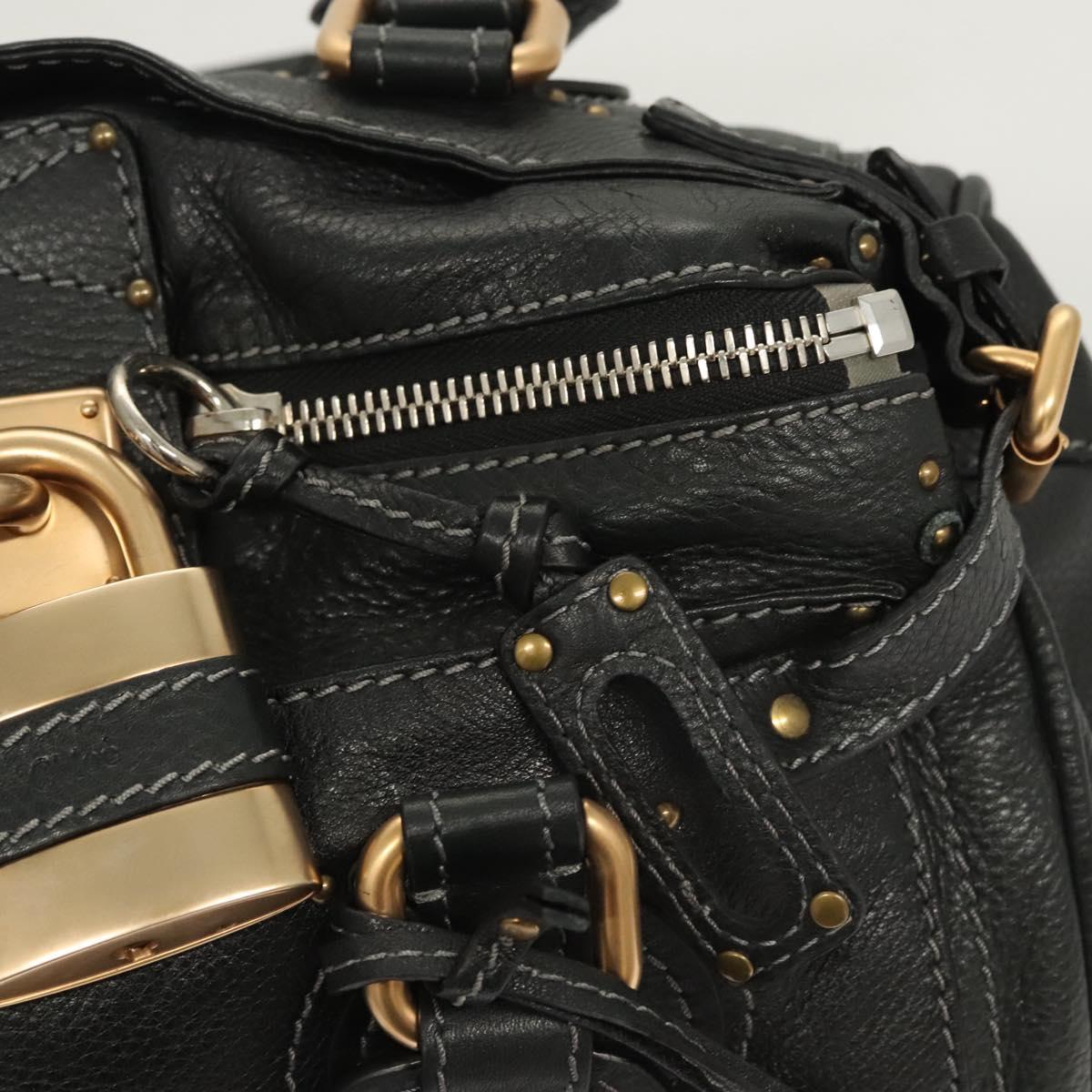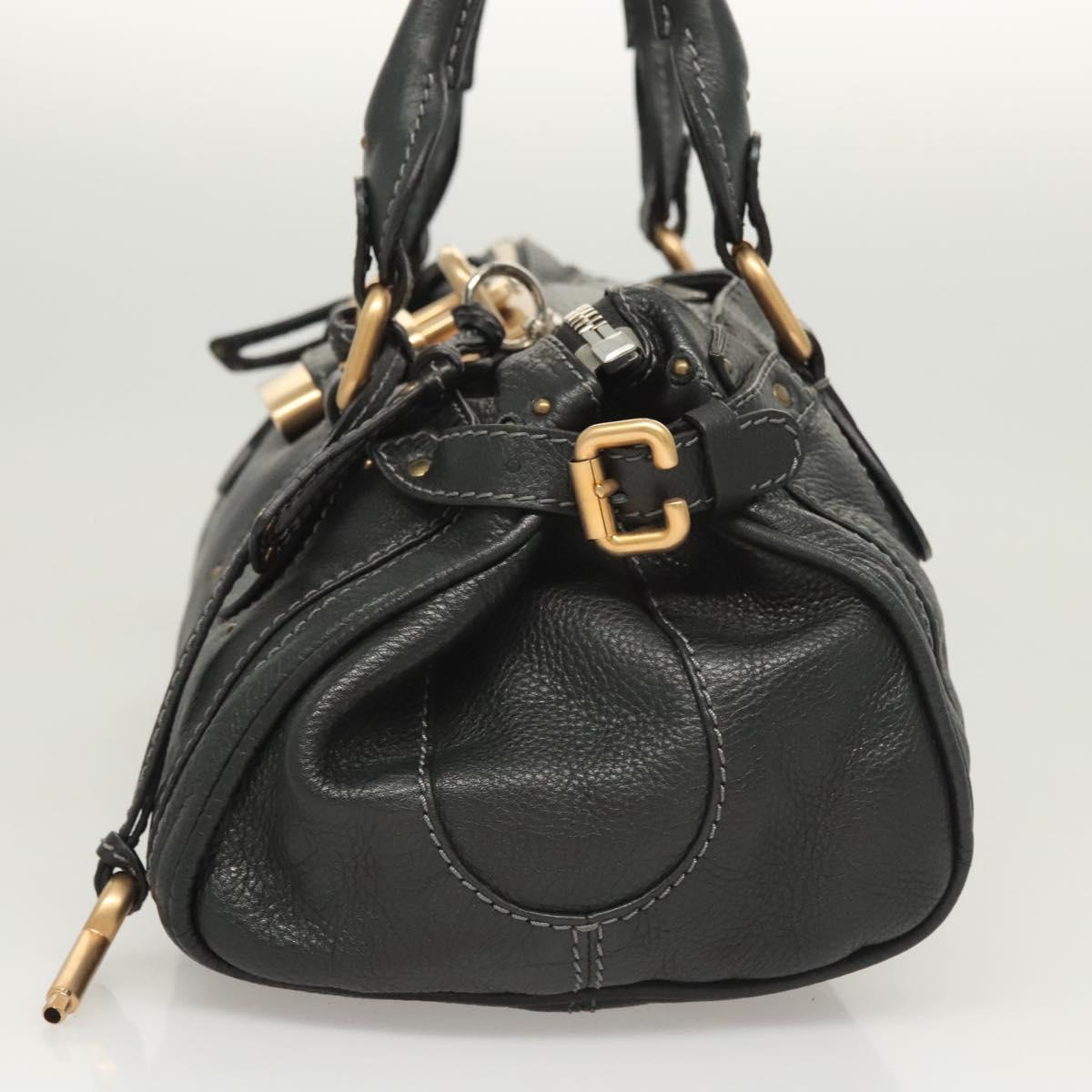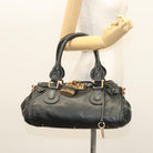 Chloe Paddington Shoulder Bag Leather Black Gold Silver Auth PP579V