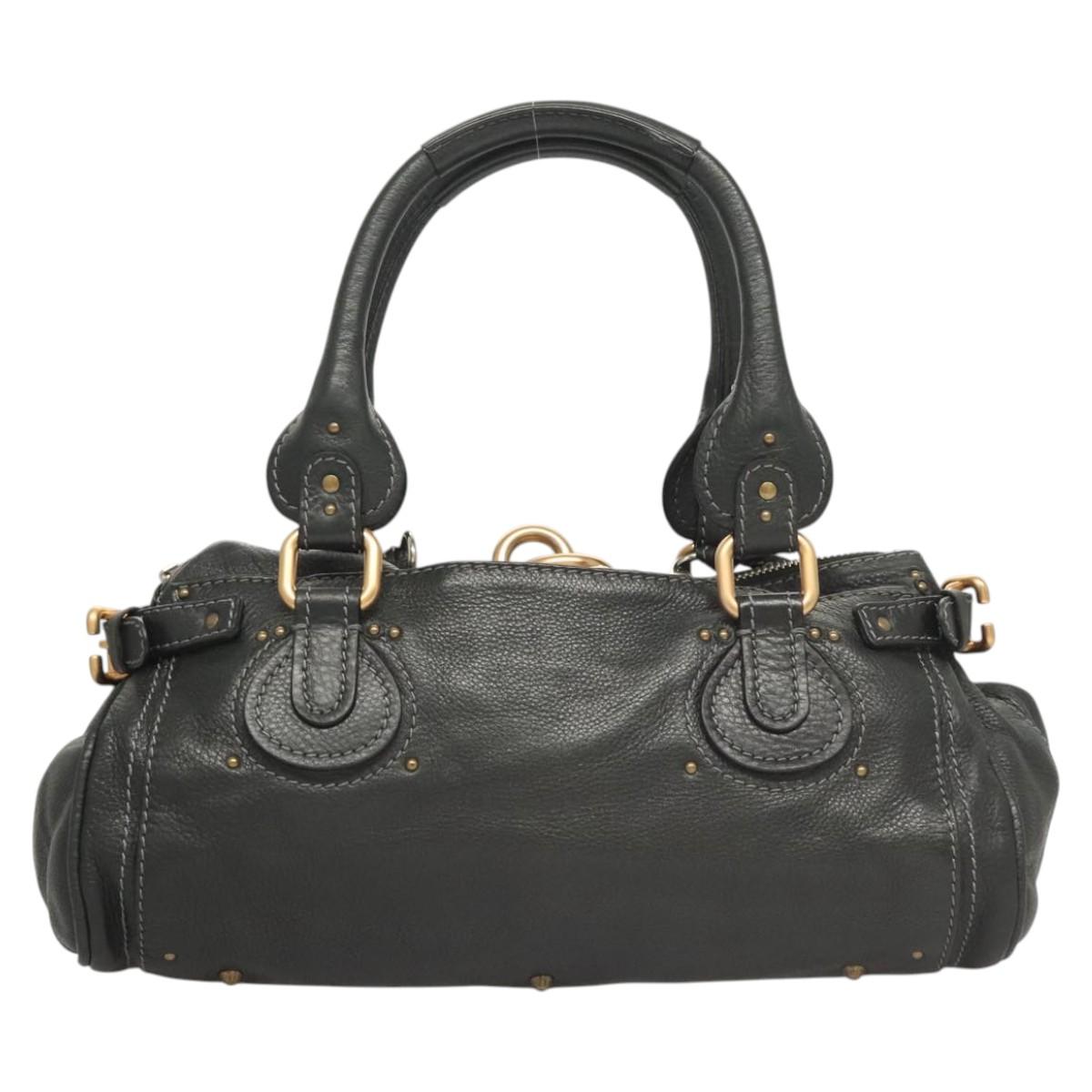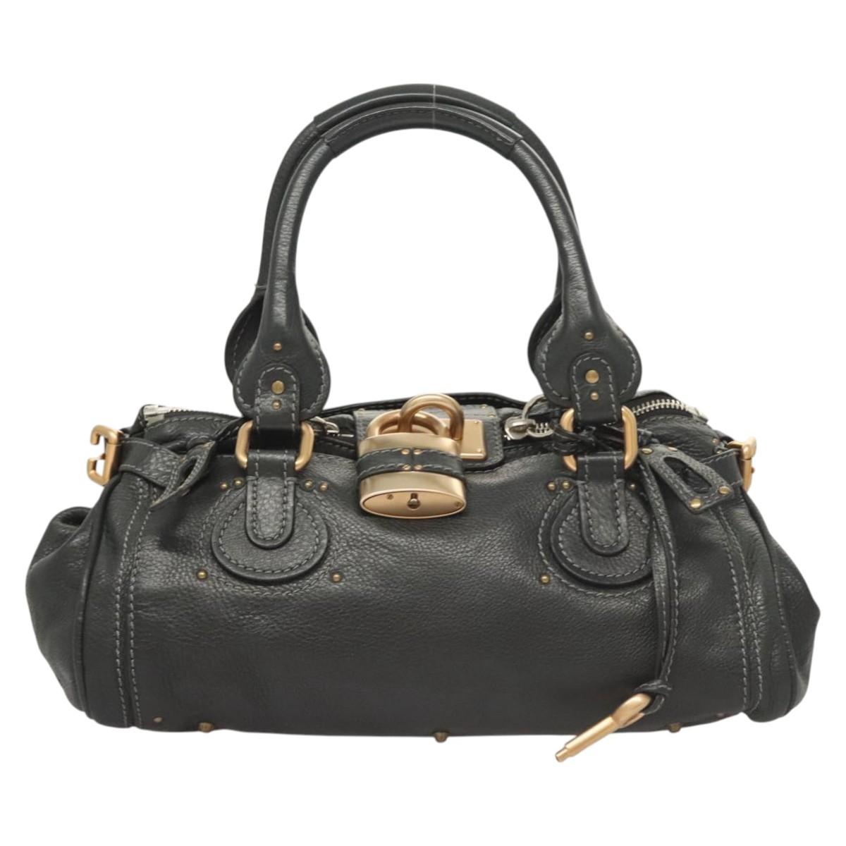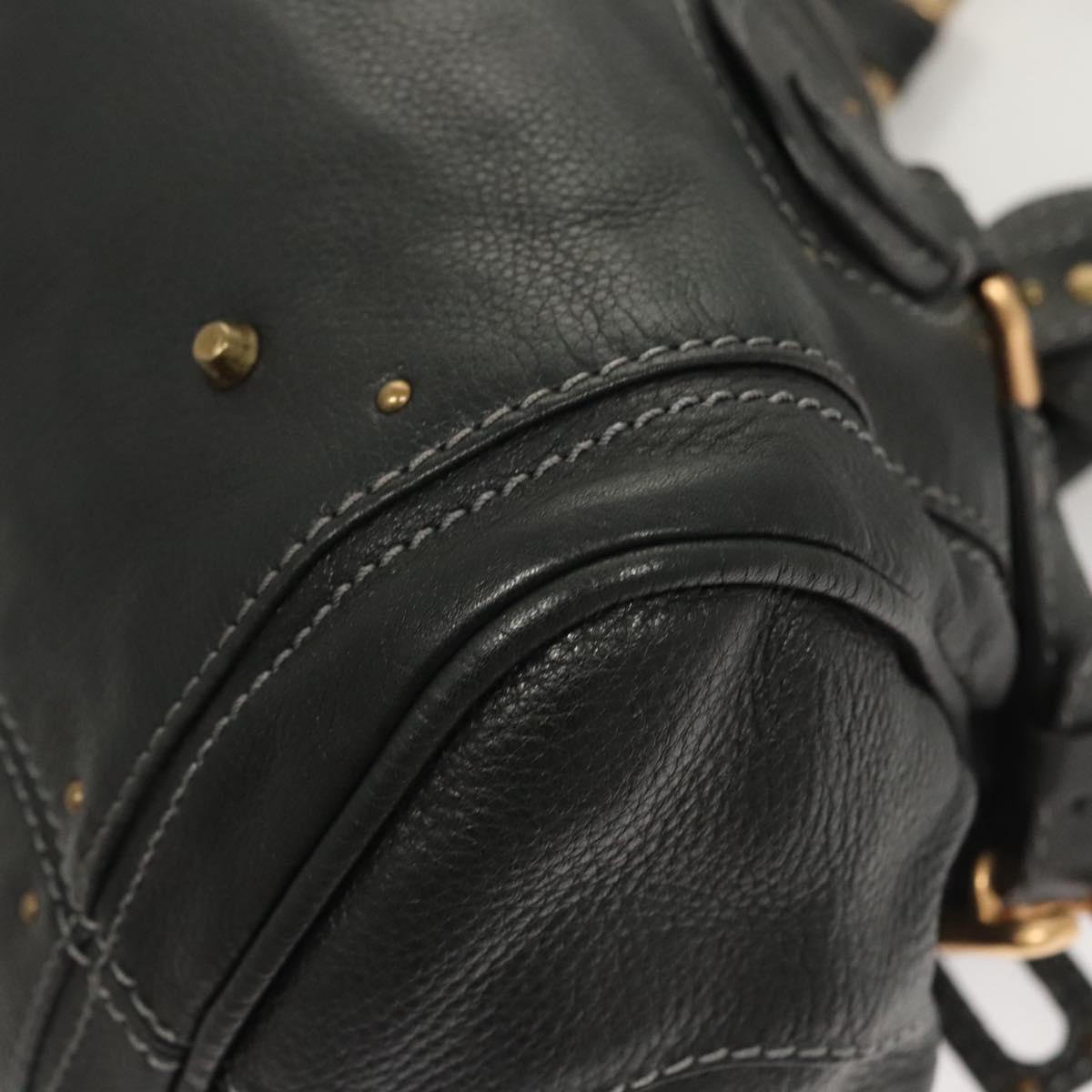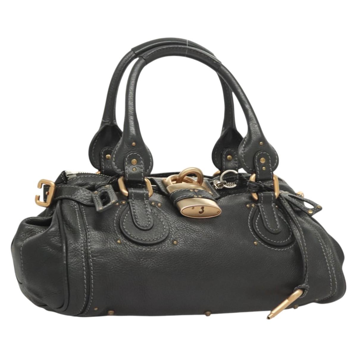 Chloe Paddington Shoulder Bag Leather Black Gold Silver Auth PP579V