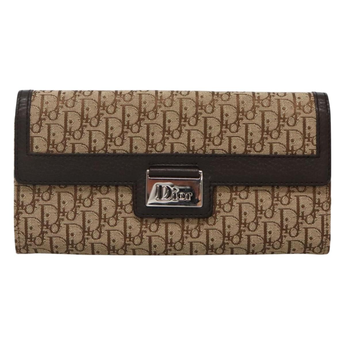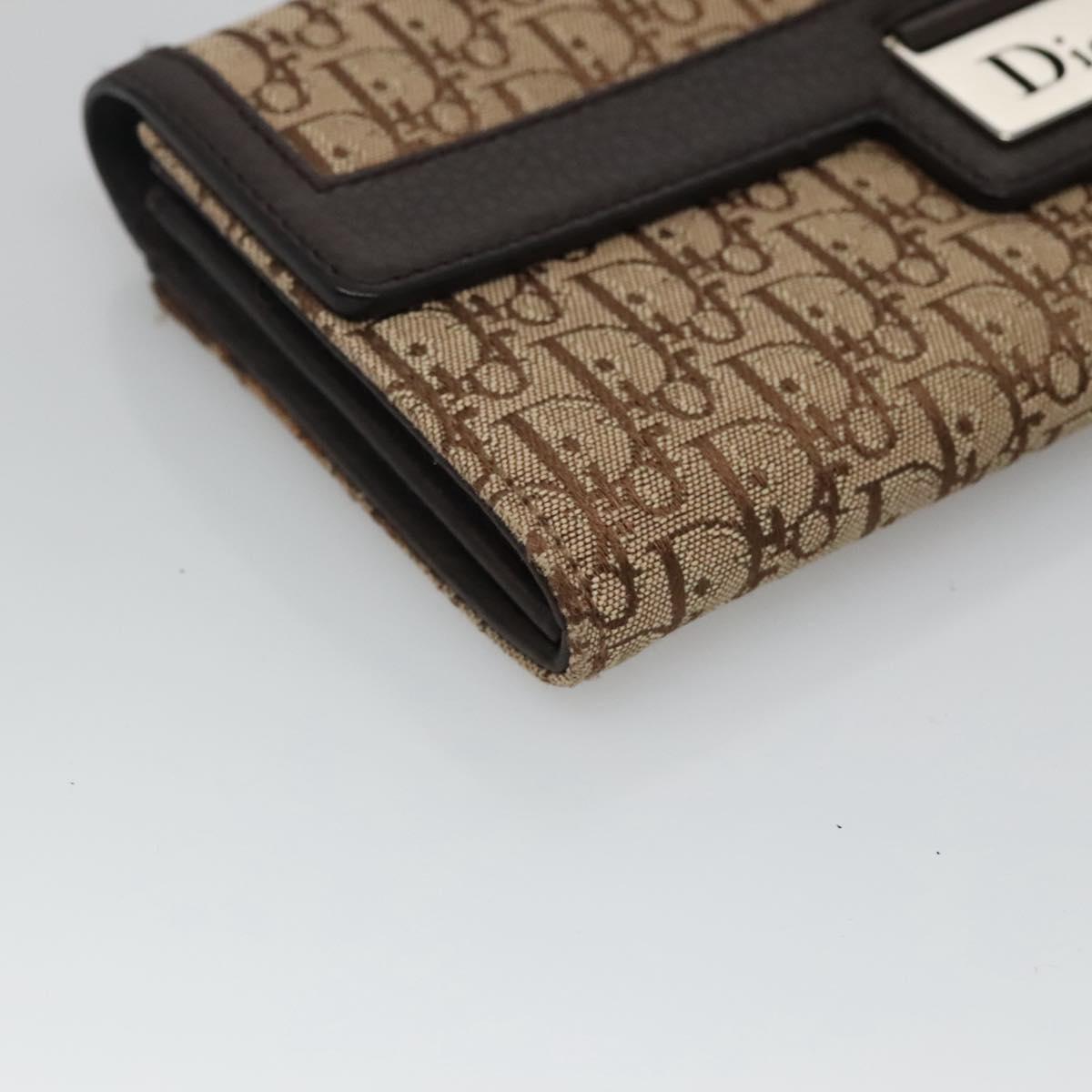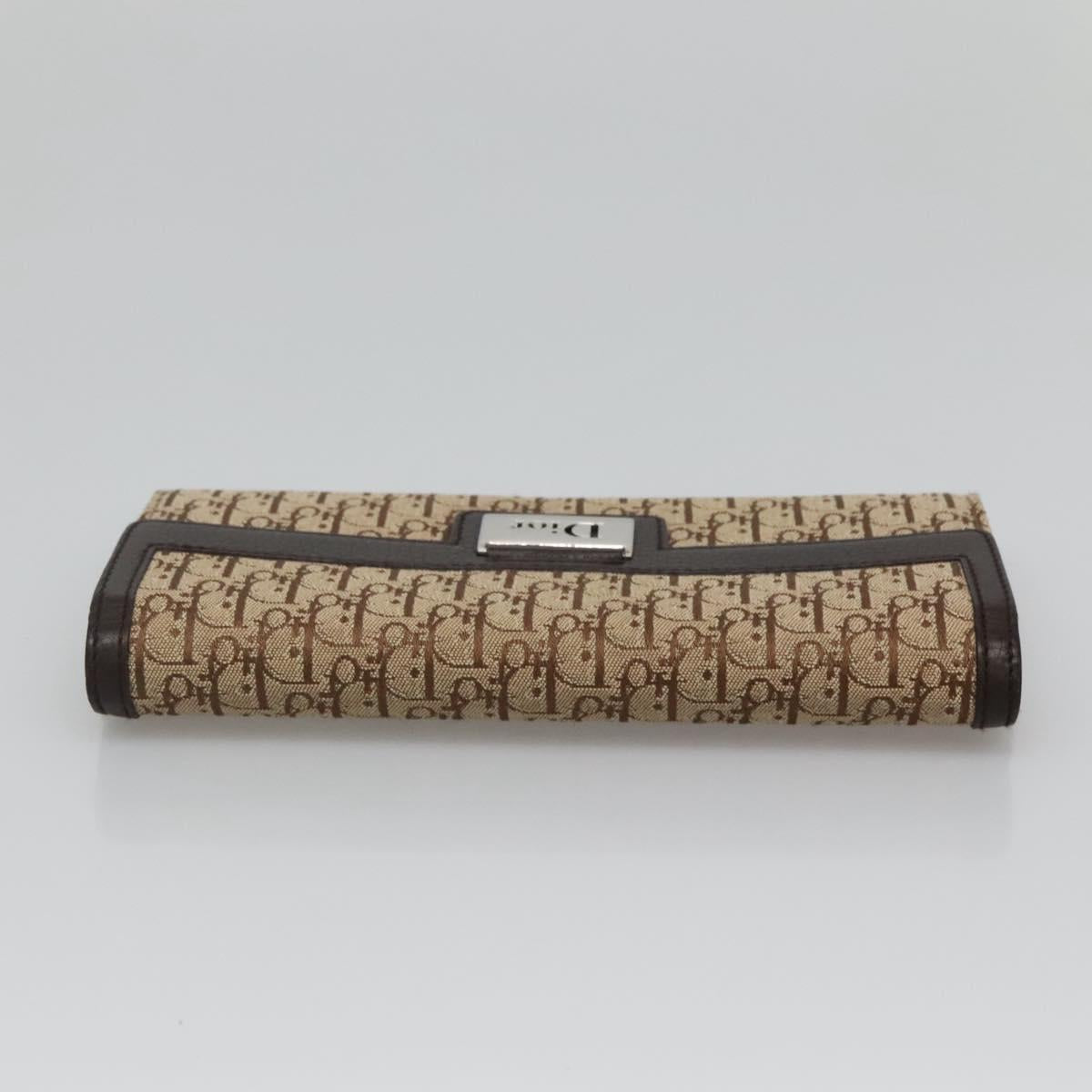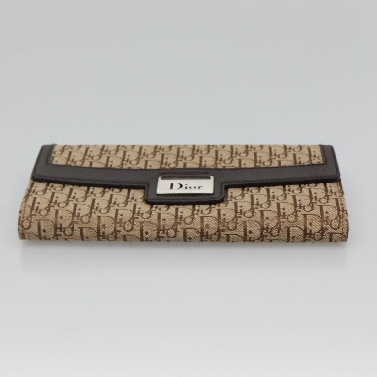 Christian Dior Trotter Canvas Wallet Beige Silver Auth yk17562V