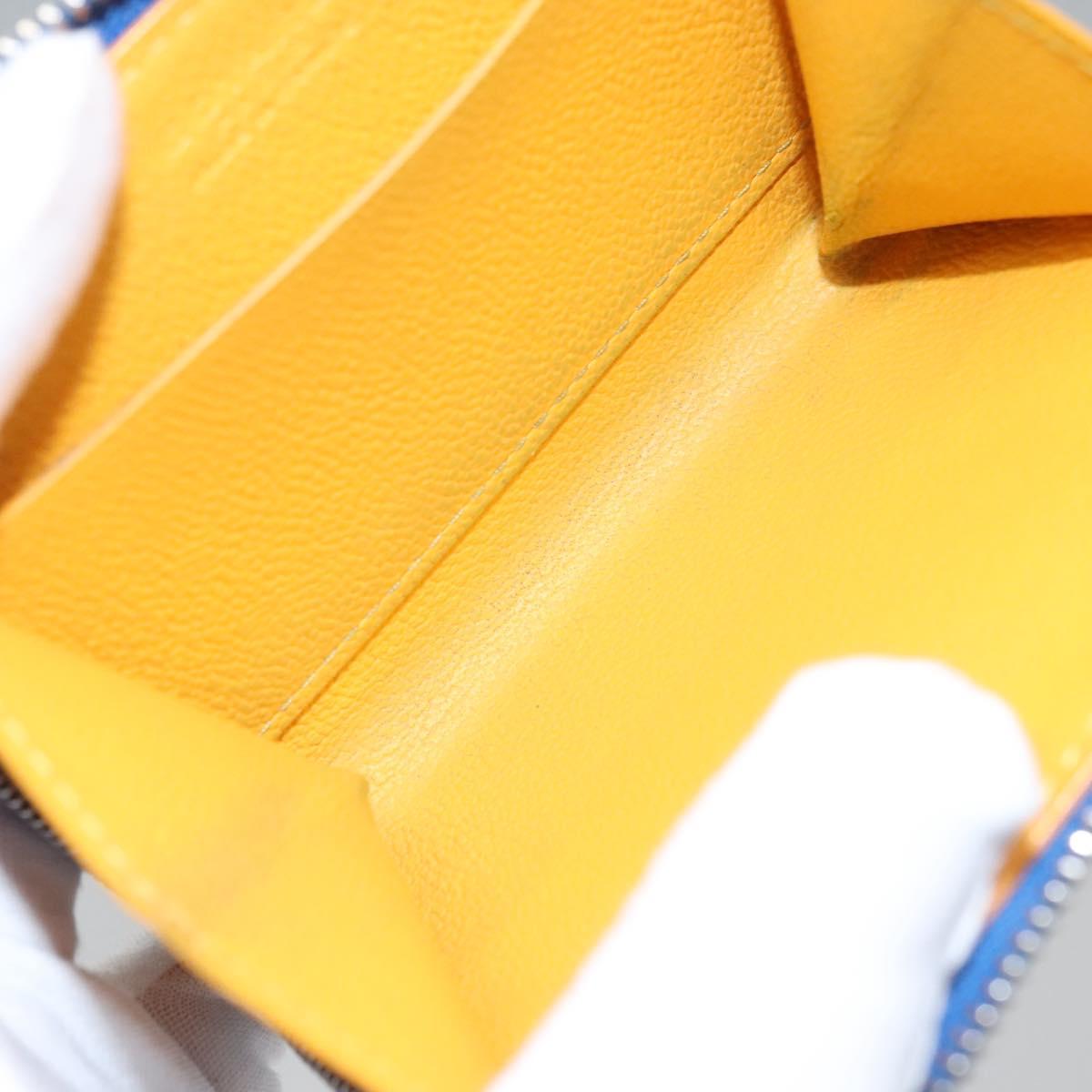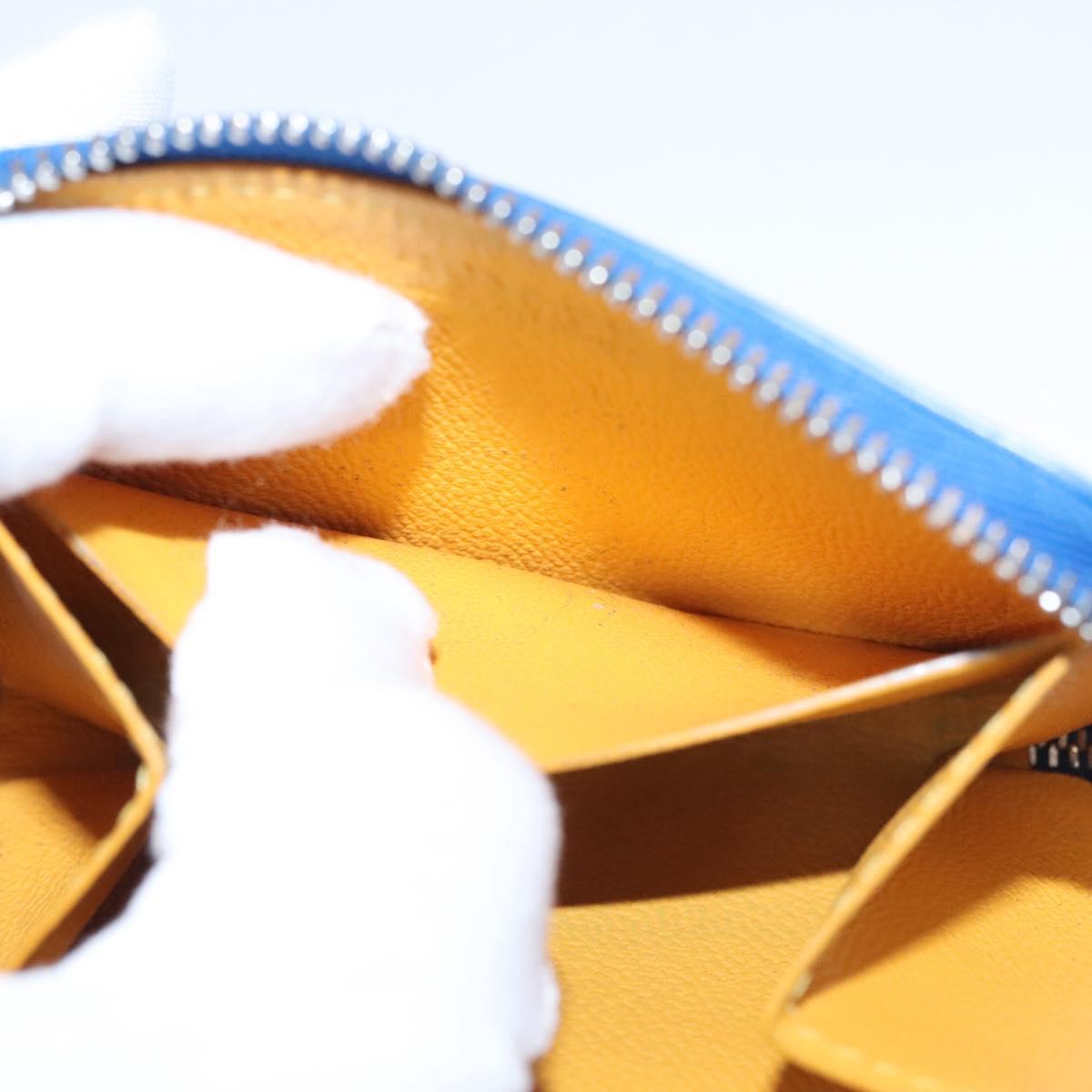 GOYARD Herringbone Coin Purse Leather Blue Auth 110579AM