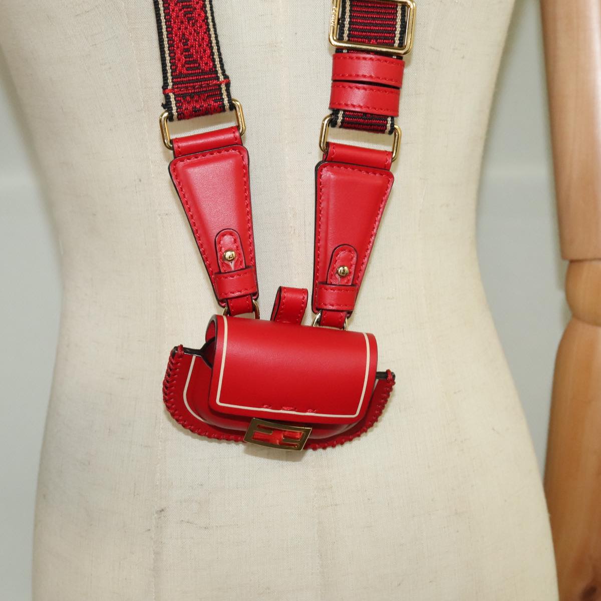 FENDI AirPods case Pouch Leather Red Auth ac3375V
