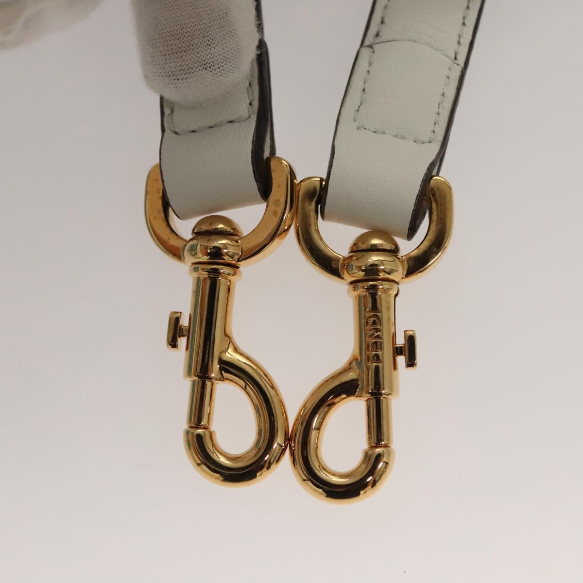 FENDI Shoulder Bag Leather Light Blue White gold Auth 116629V