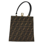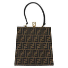 FENDI Zucca Canvas Hand Bag Brown Black gold Auth BD1571V