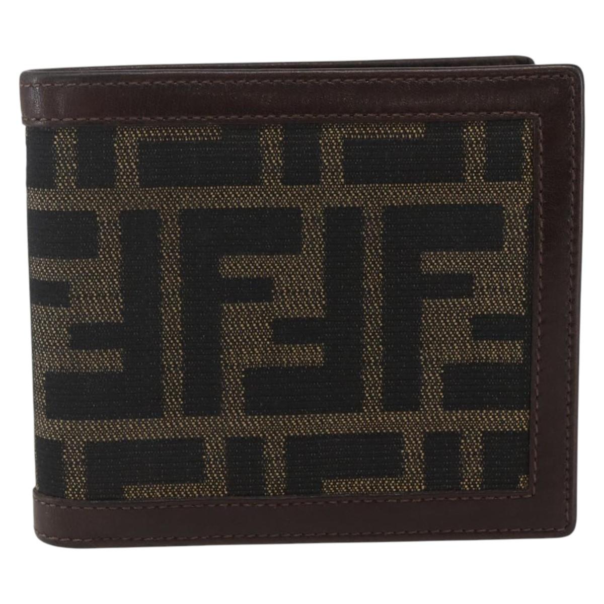 FENDI Zucca Canvas Wallet Black Brown Black Brown Auth 158179