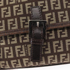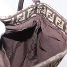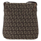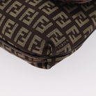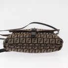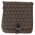 FENDI Zucchino Canvas Shoulder Bag Brown Silver Auth 154749
