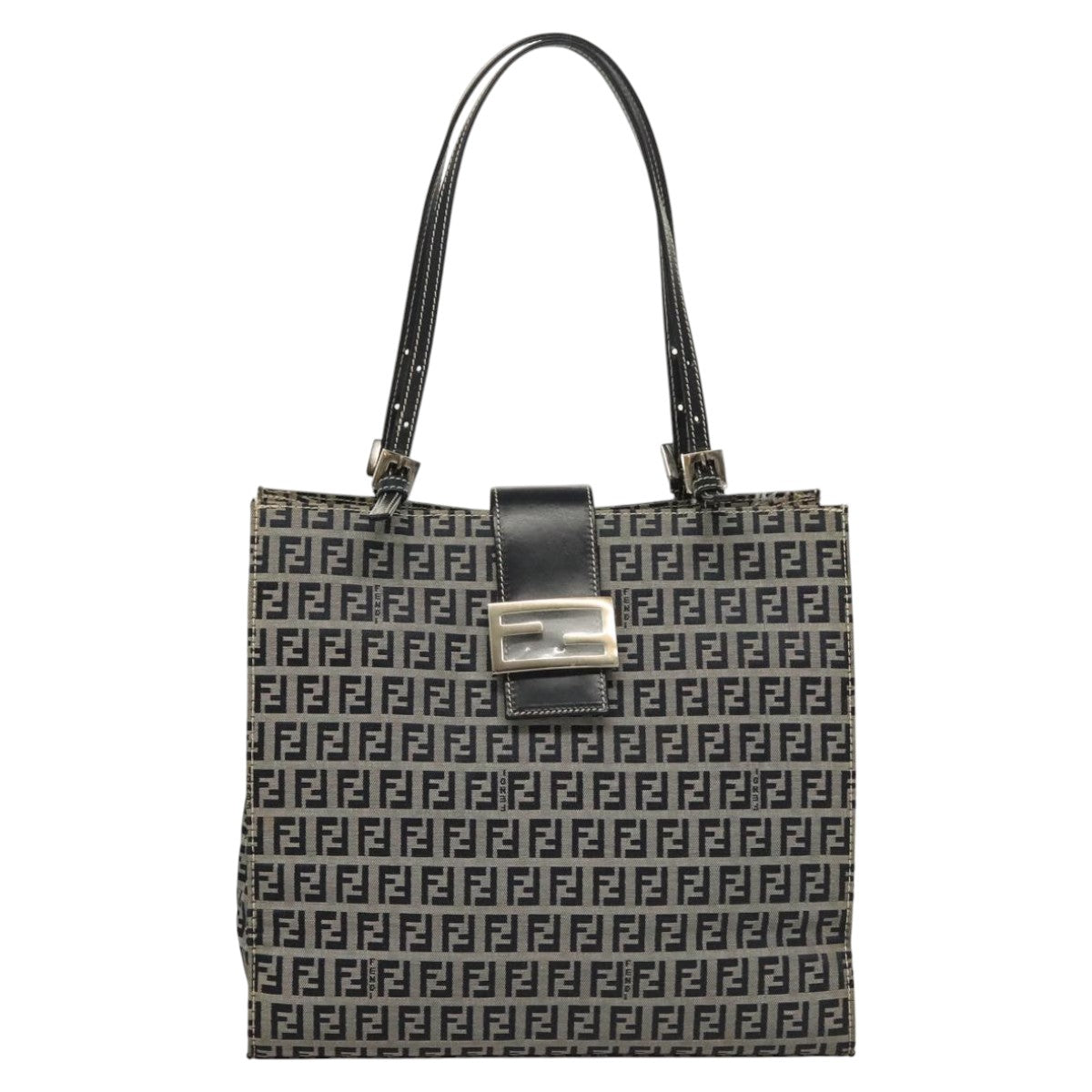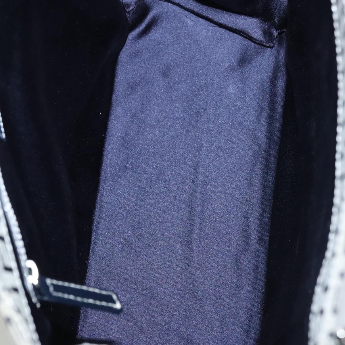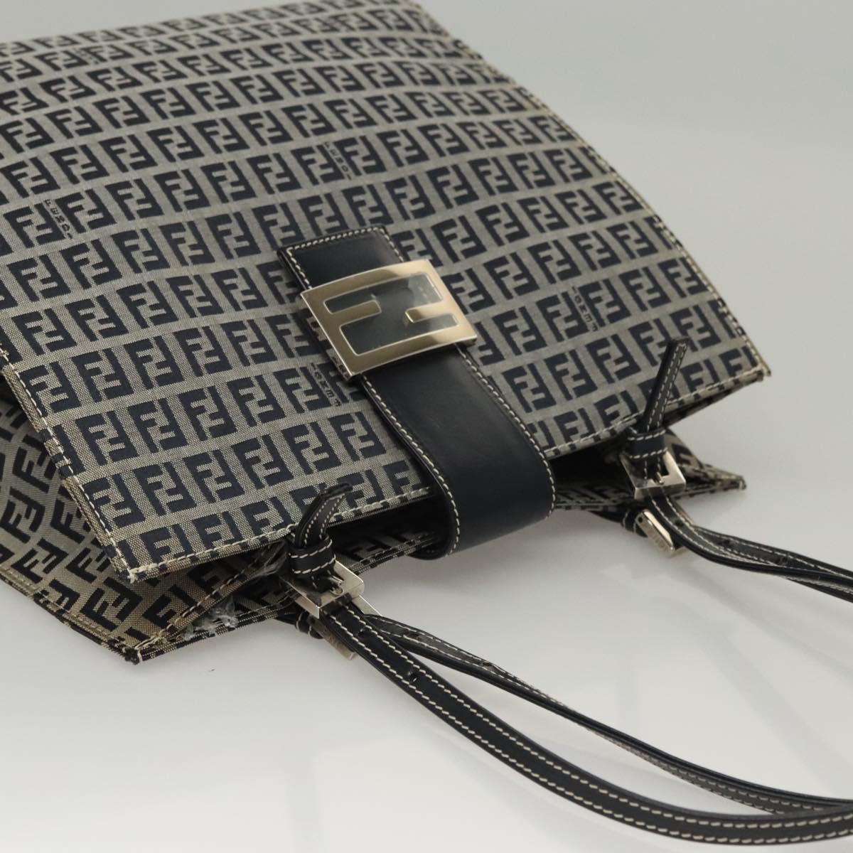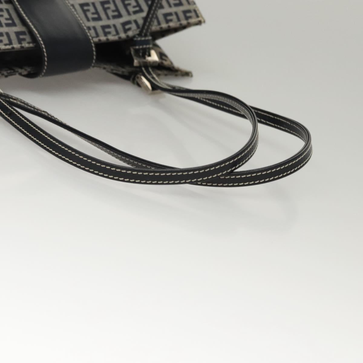 FENDI Zucchino Canvas Tote Bag Navy Silver Auth BA886V