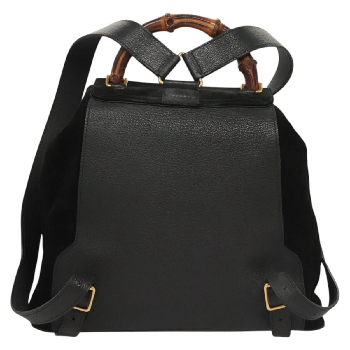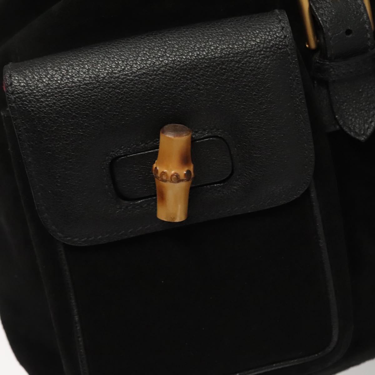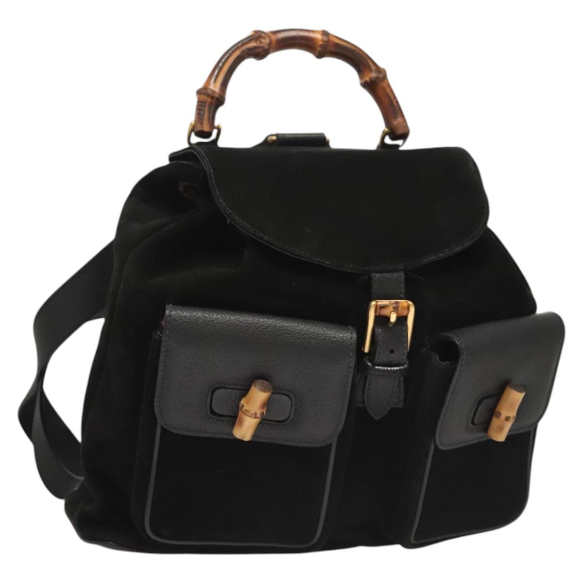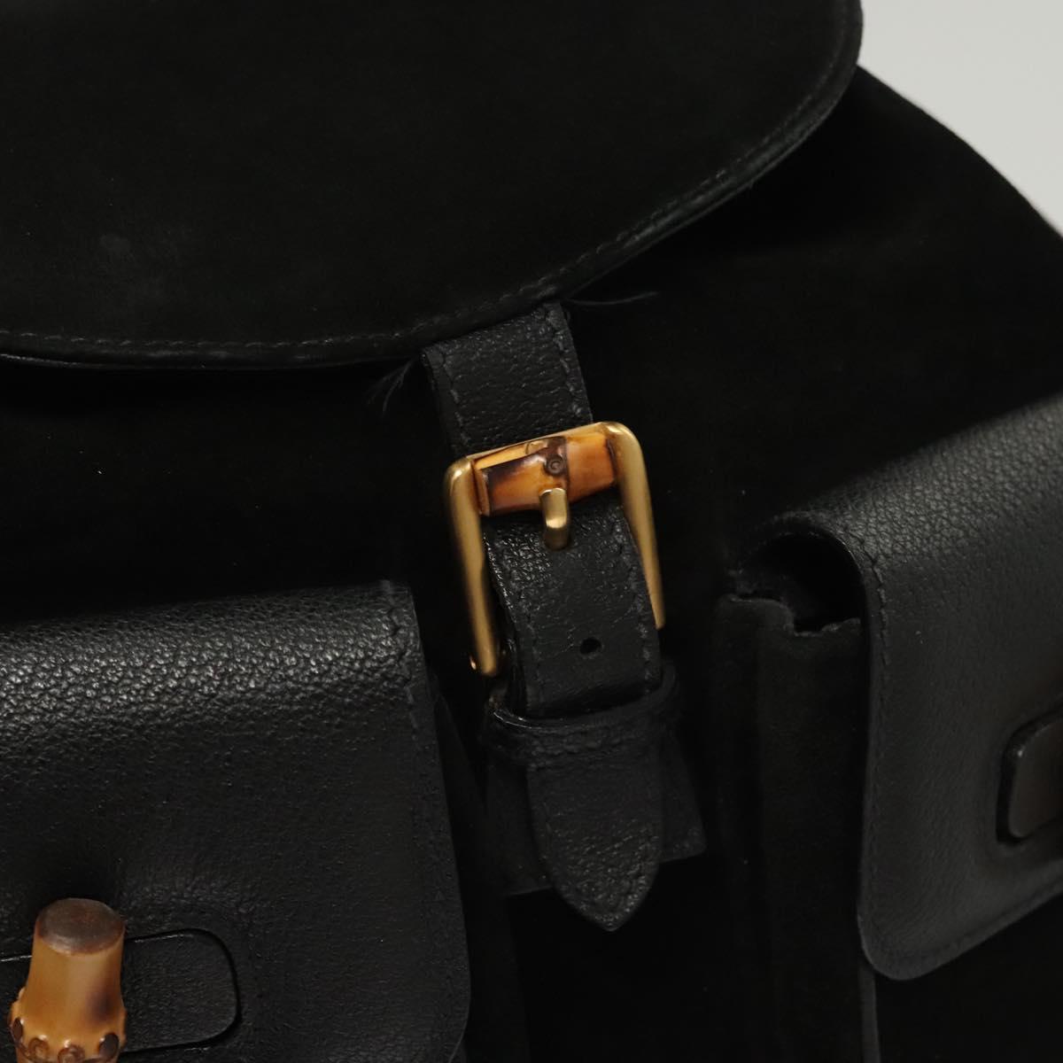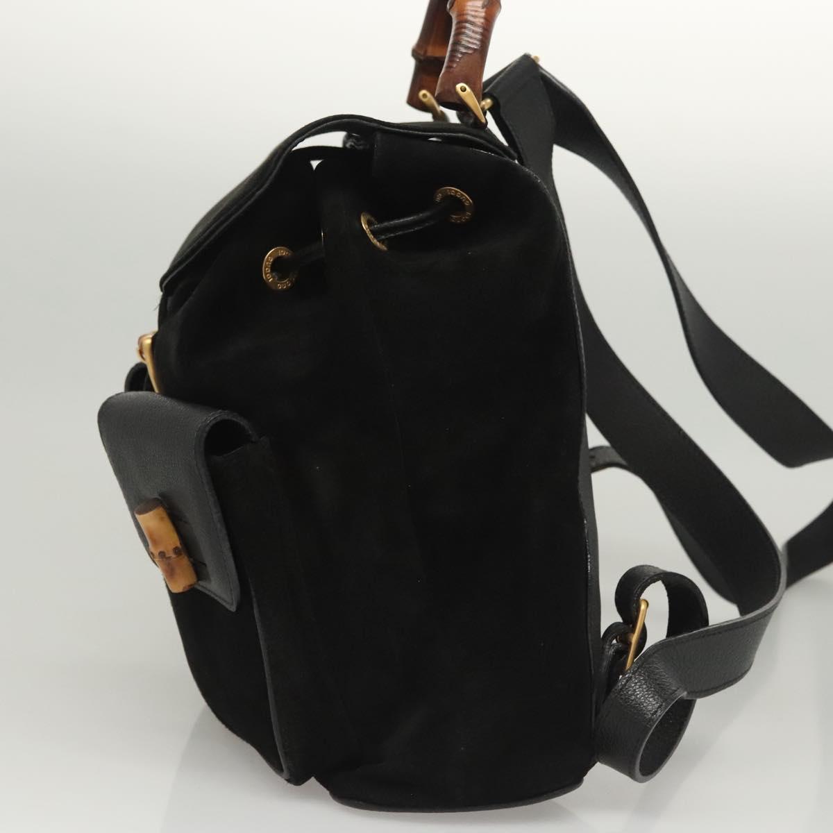 GUCCI Bamboo Backpack Suede Black Gold 003 2058 0016 Auth 125588