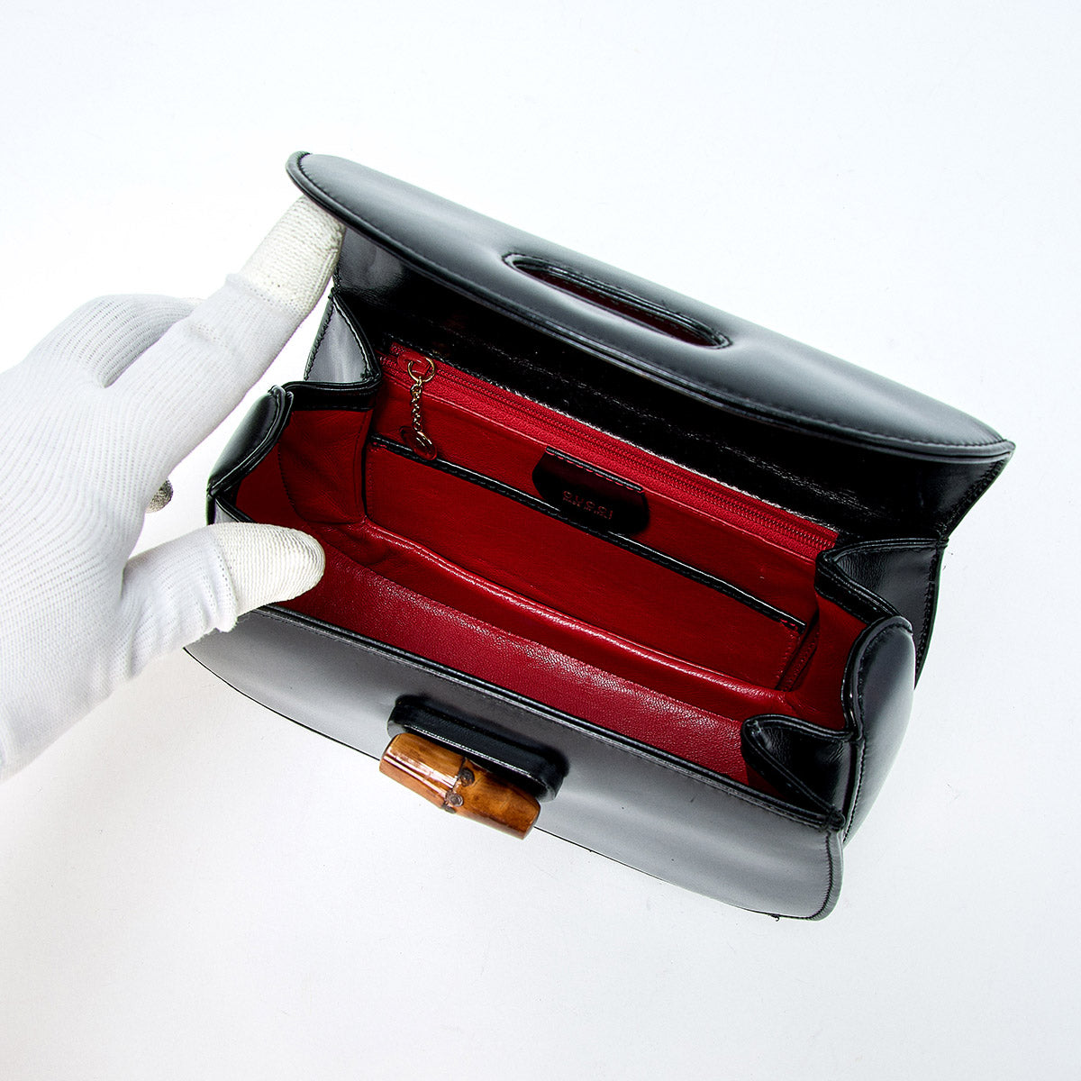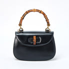 GUCCI Bamboo Hand Bag Black Gold Box Scarf Auth