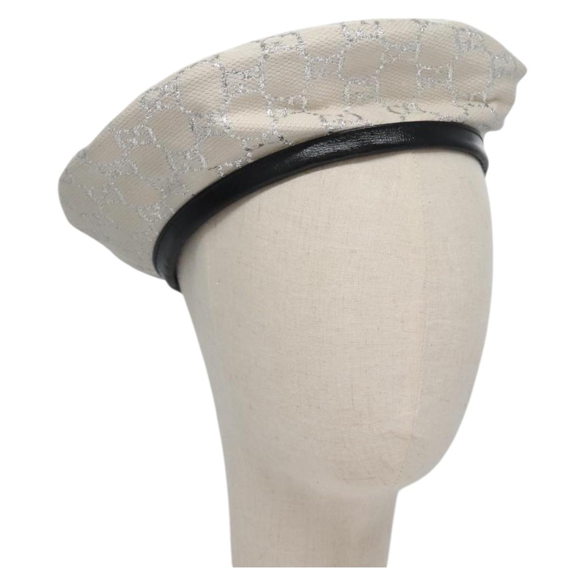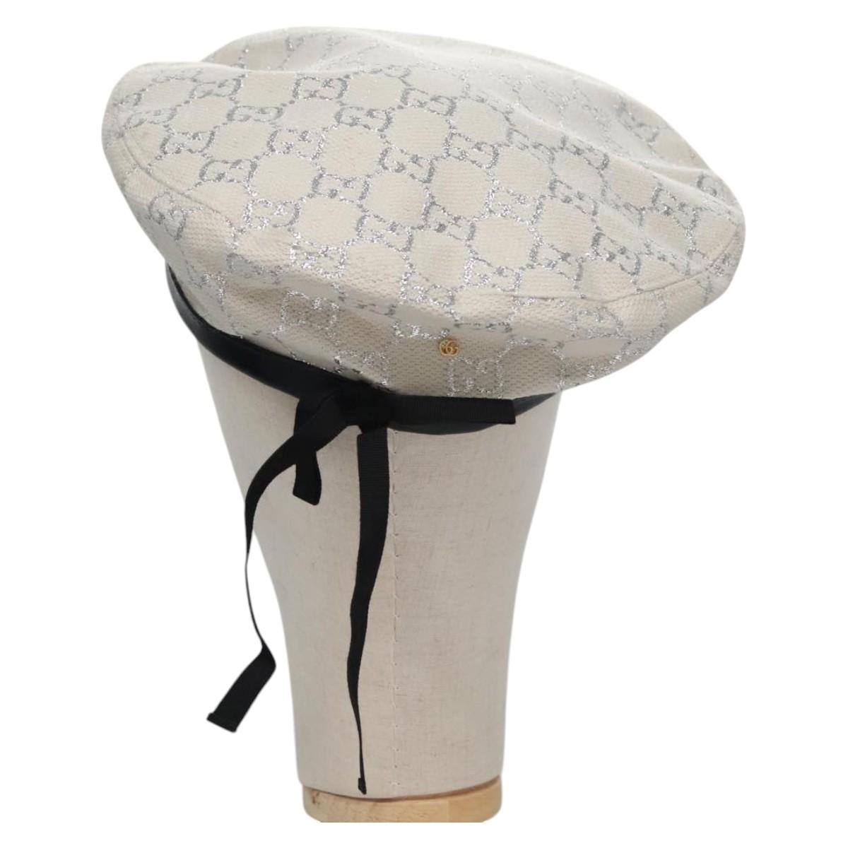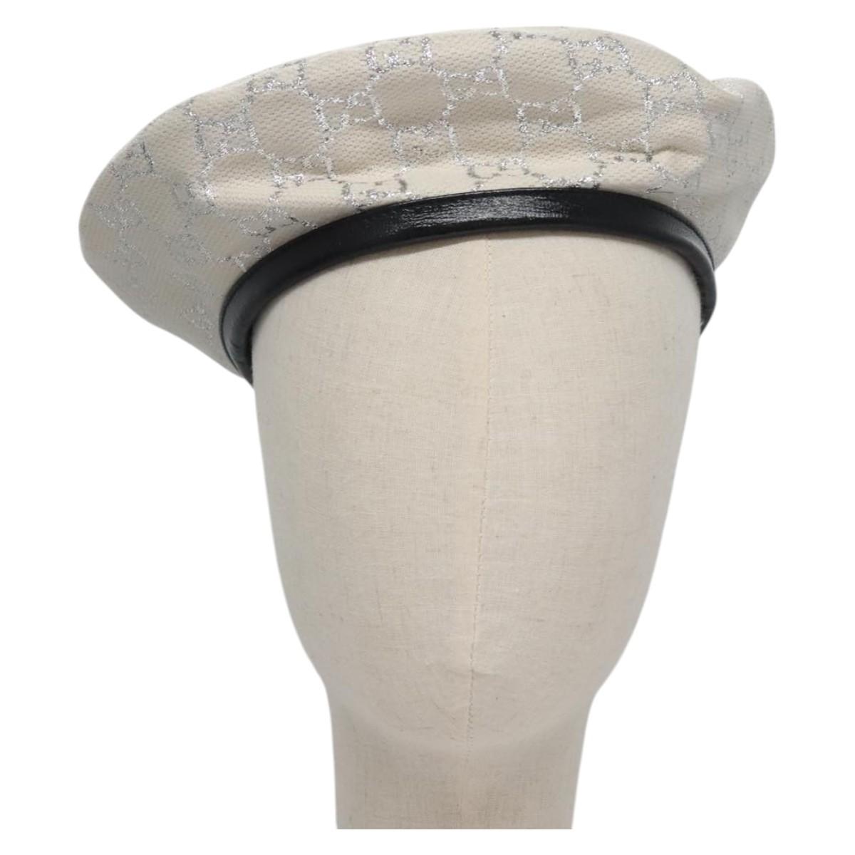GUCCI GG Canvas Beret Hat M Silver 603409 Auth ac3643V