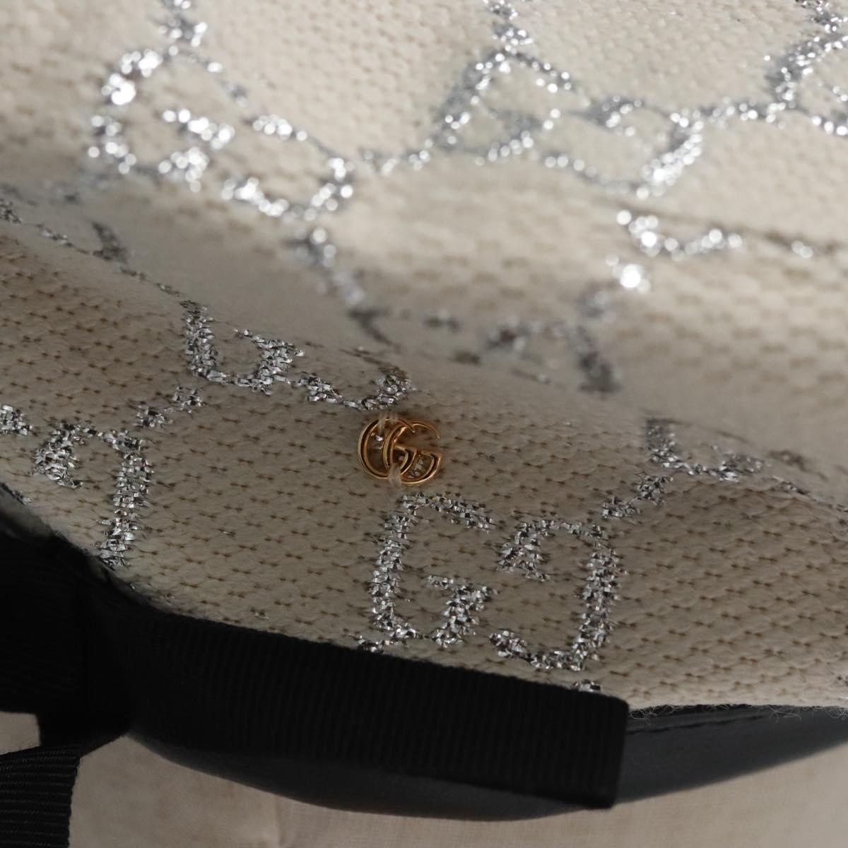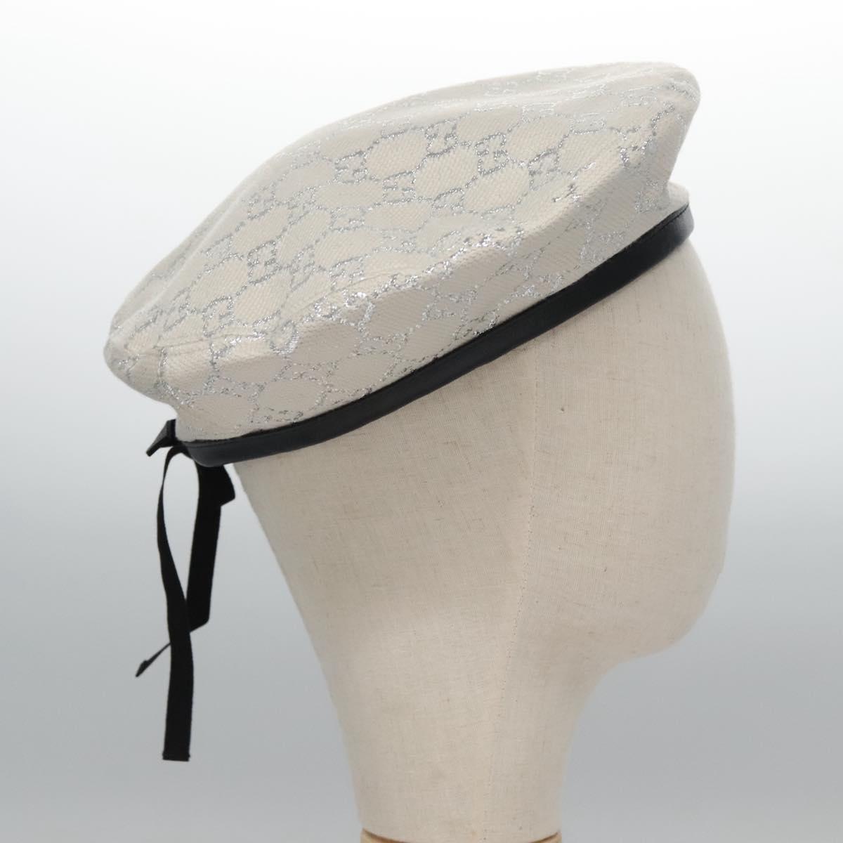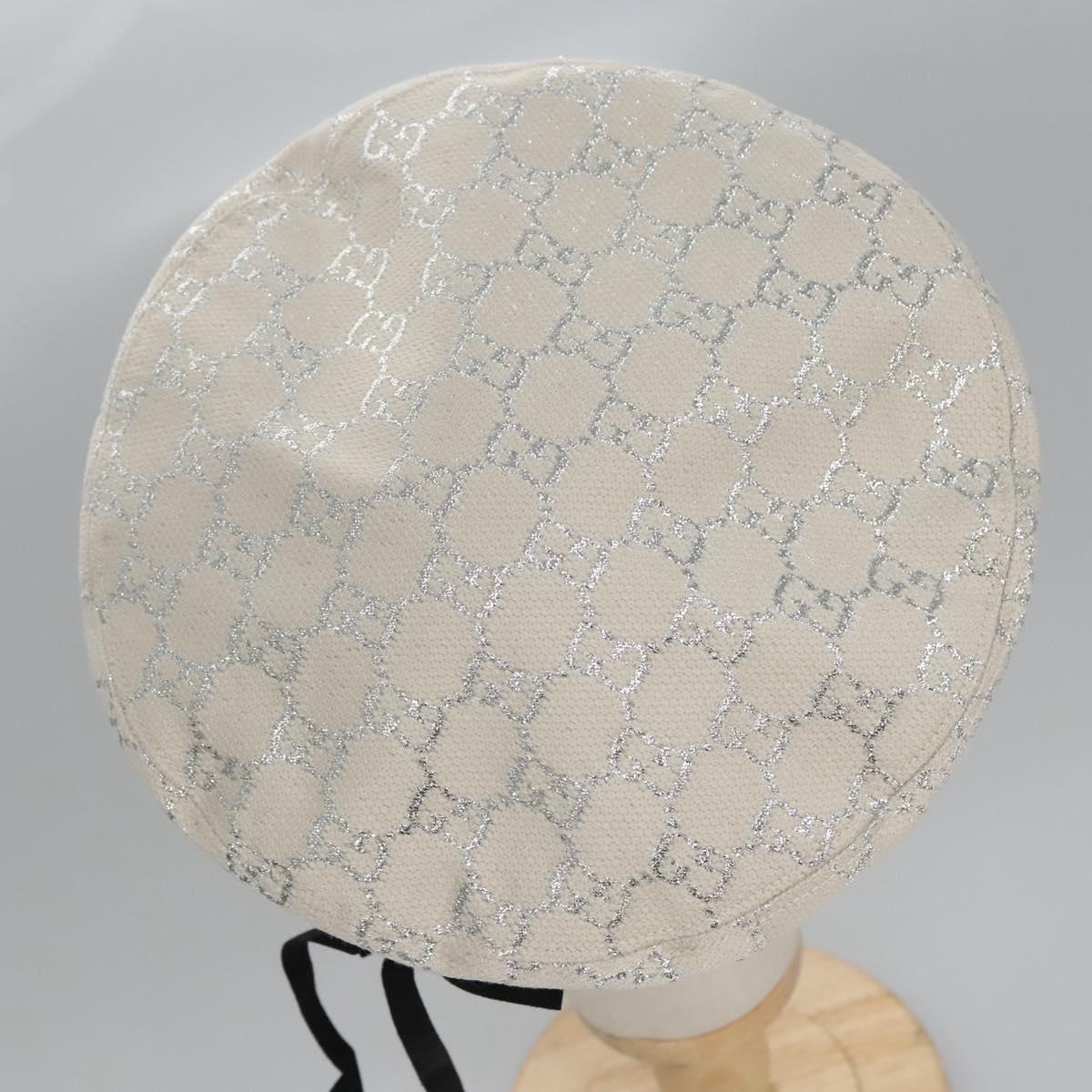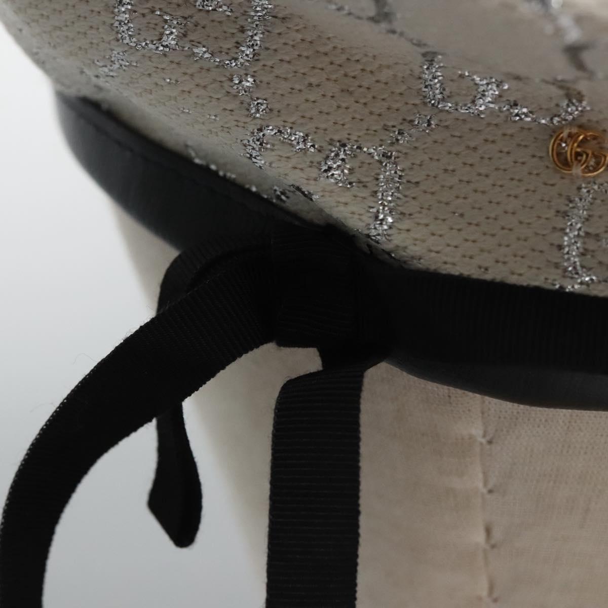 GUCCI GG Canvas Beret Hat M Silver 603409 Auth ac3643V