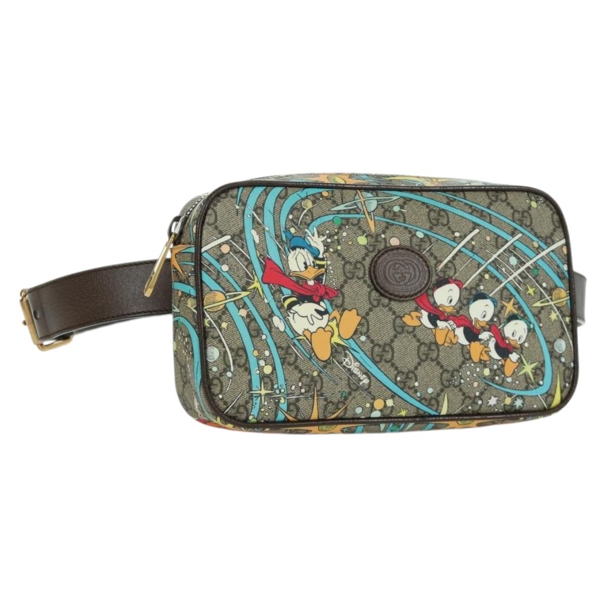 GUCCI GG Canvas Disney Waist bag PVC Beige Gold 602695 Auth ARZ017SAM
