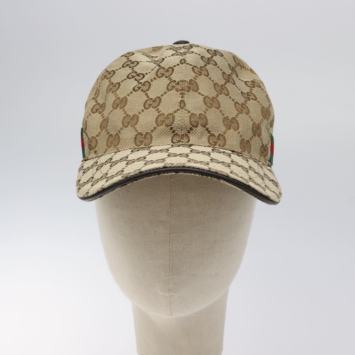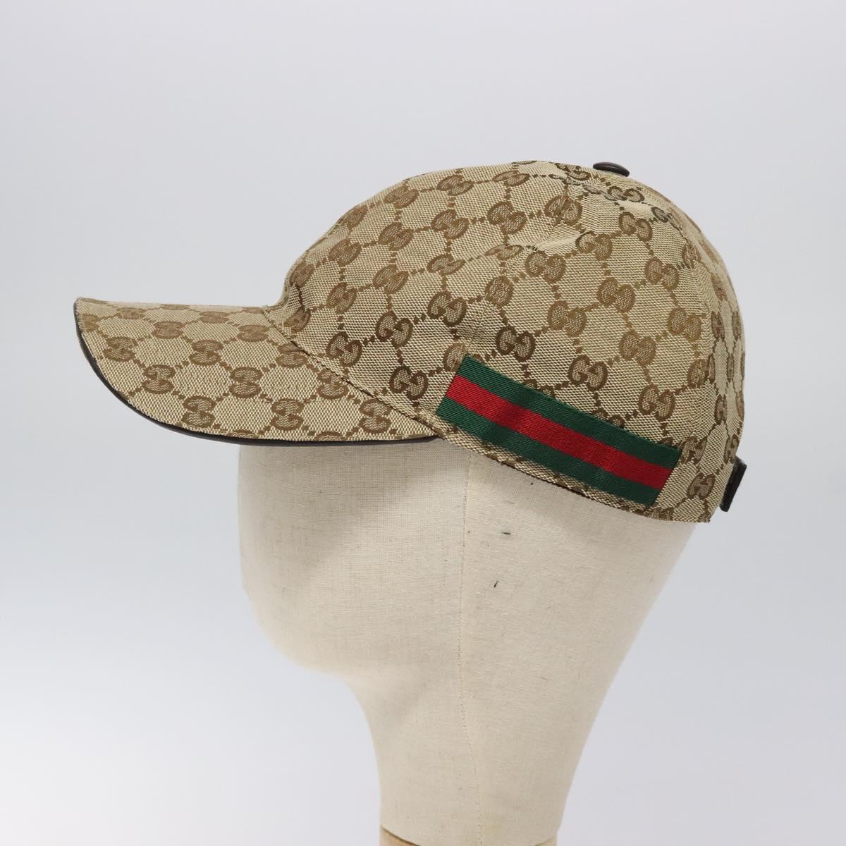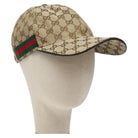 GUCCI GG Canvas Web Sherry Line Baseball Cap M Beige Red 200035 Auth ki5537