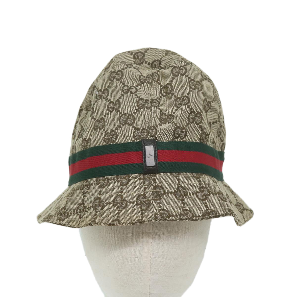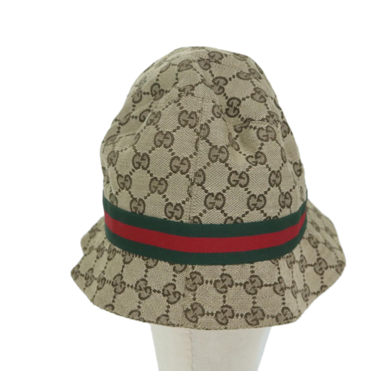 GUCCI GG Canvas Web Sherry Line Hat M Size Beige Red Green Auth am5574V