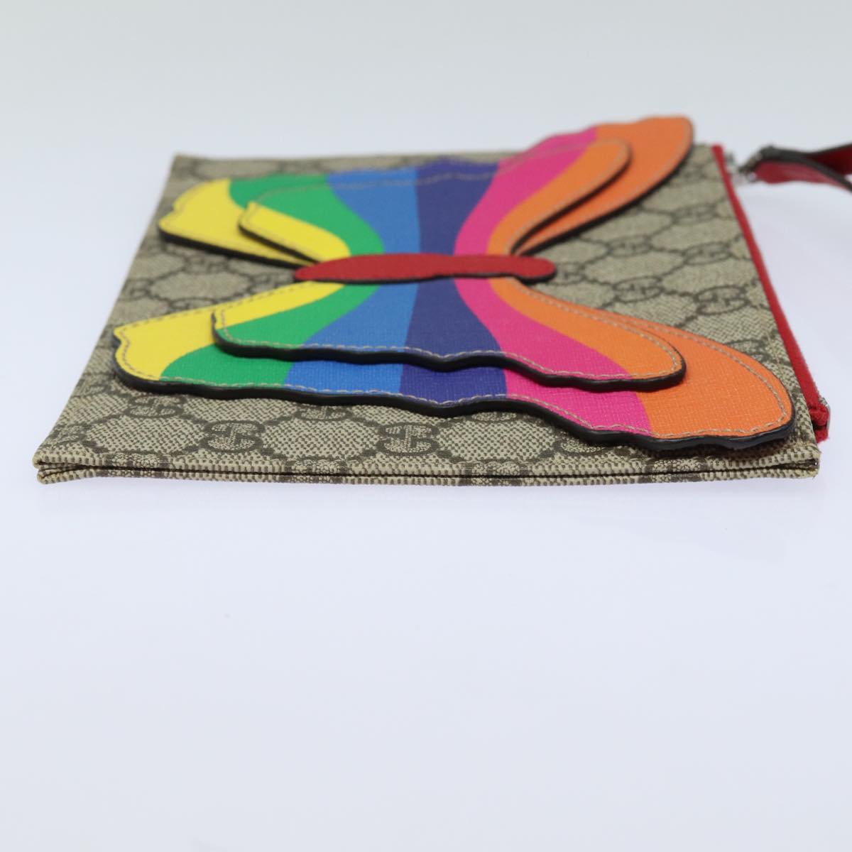 GUCCI GG Supreme Butterfly Clutch Bag PVC Beige 550781 Auth 79205V