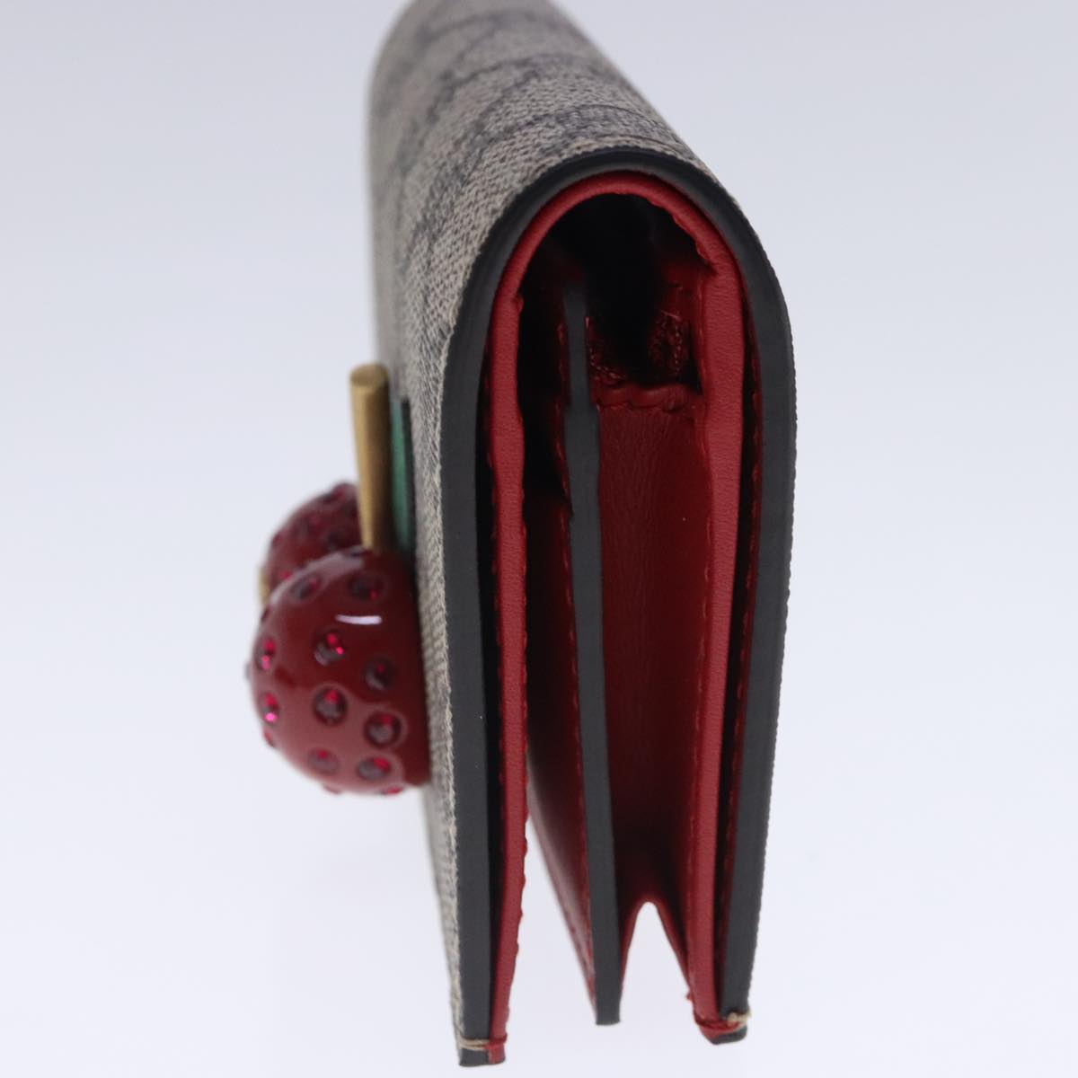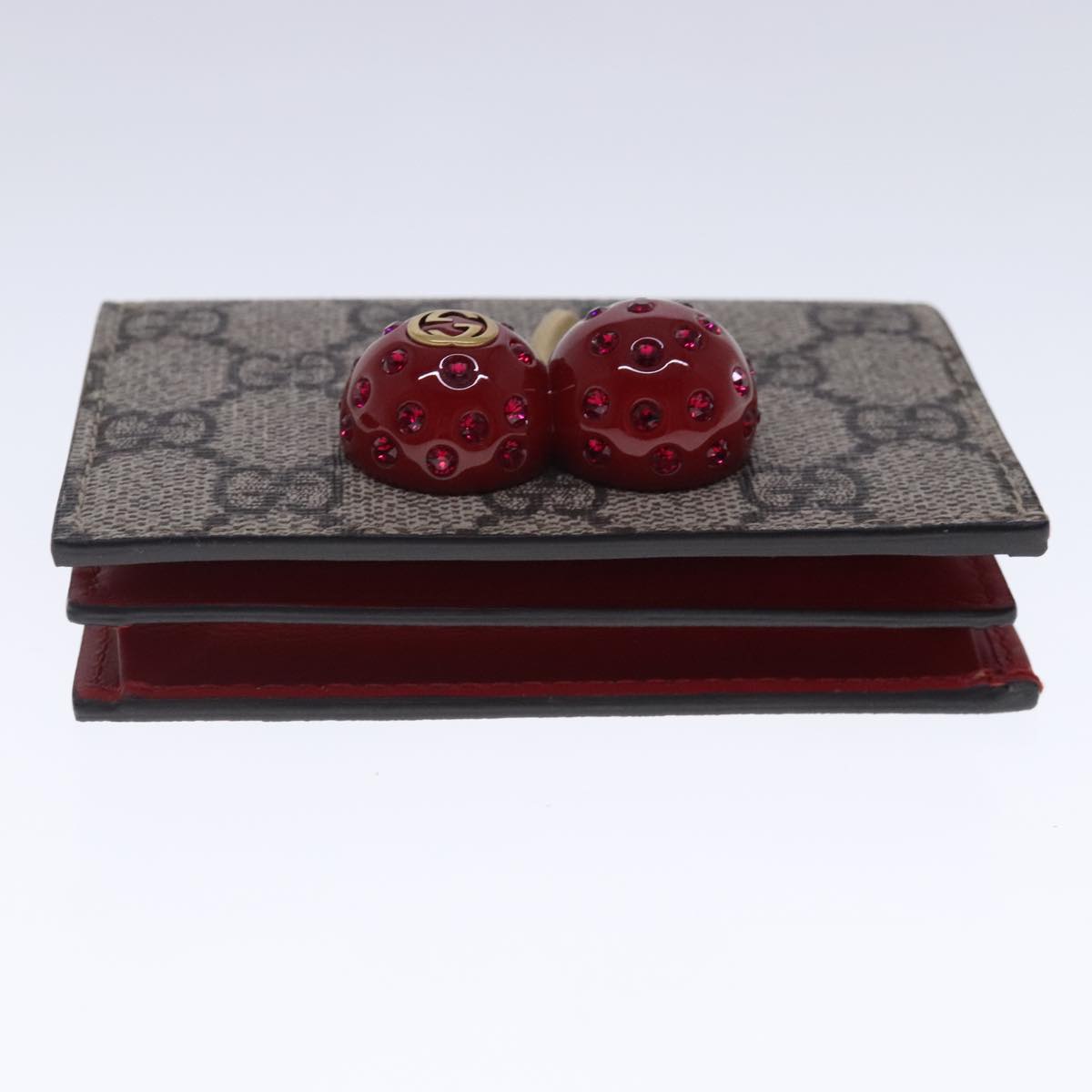 GUCCI GG Supreme Cherry Wallet PVC Leather Beige Red 476050 Auth am7021V