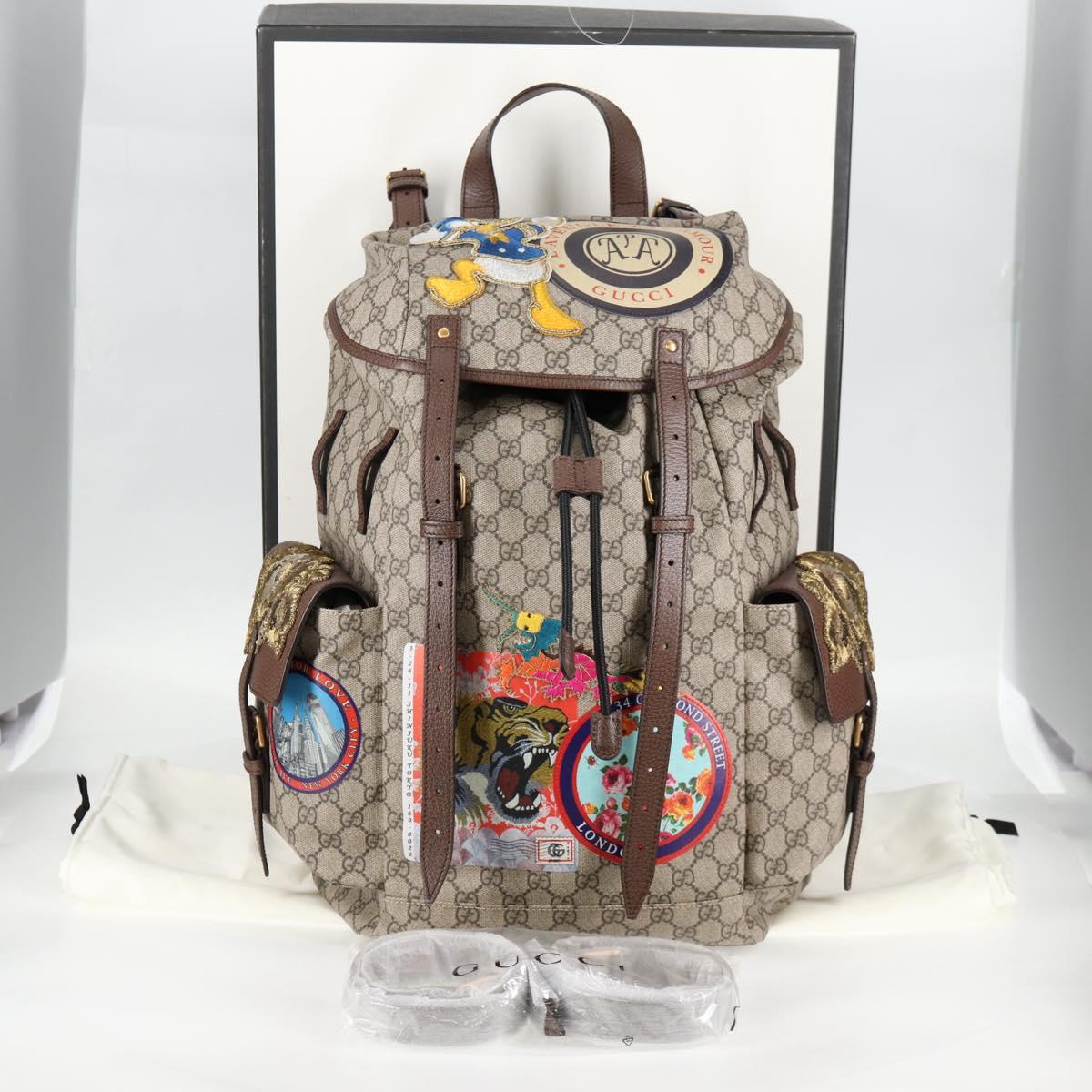 GUCCI GG Supreme Disney Collaboration Backpack PVC Beige Gold 460029 Auth sw904M