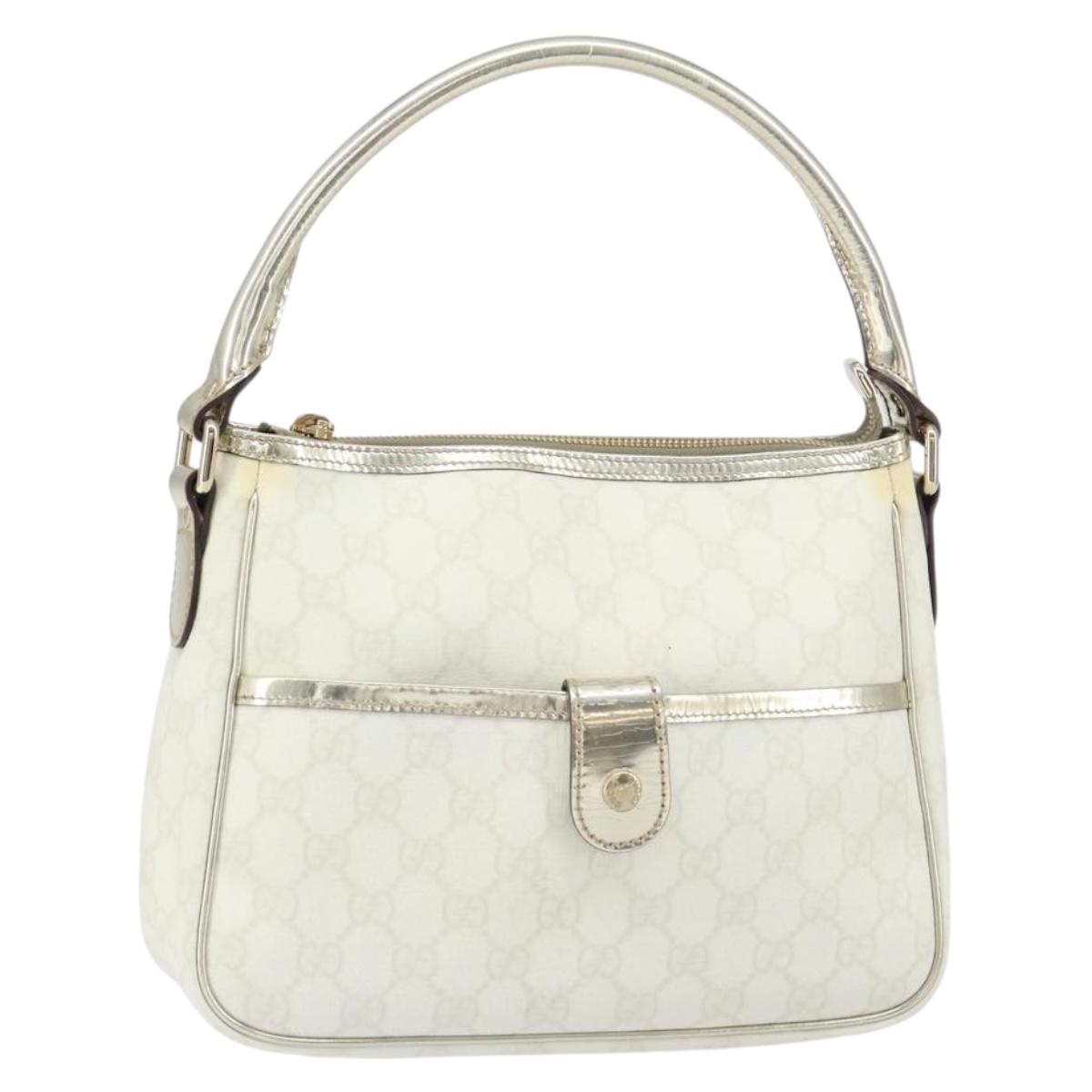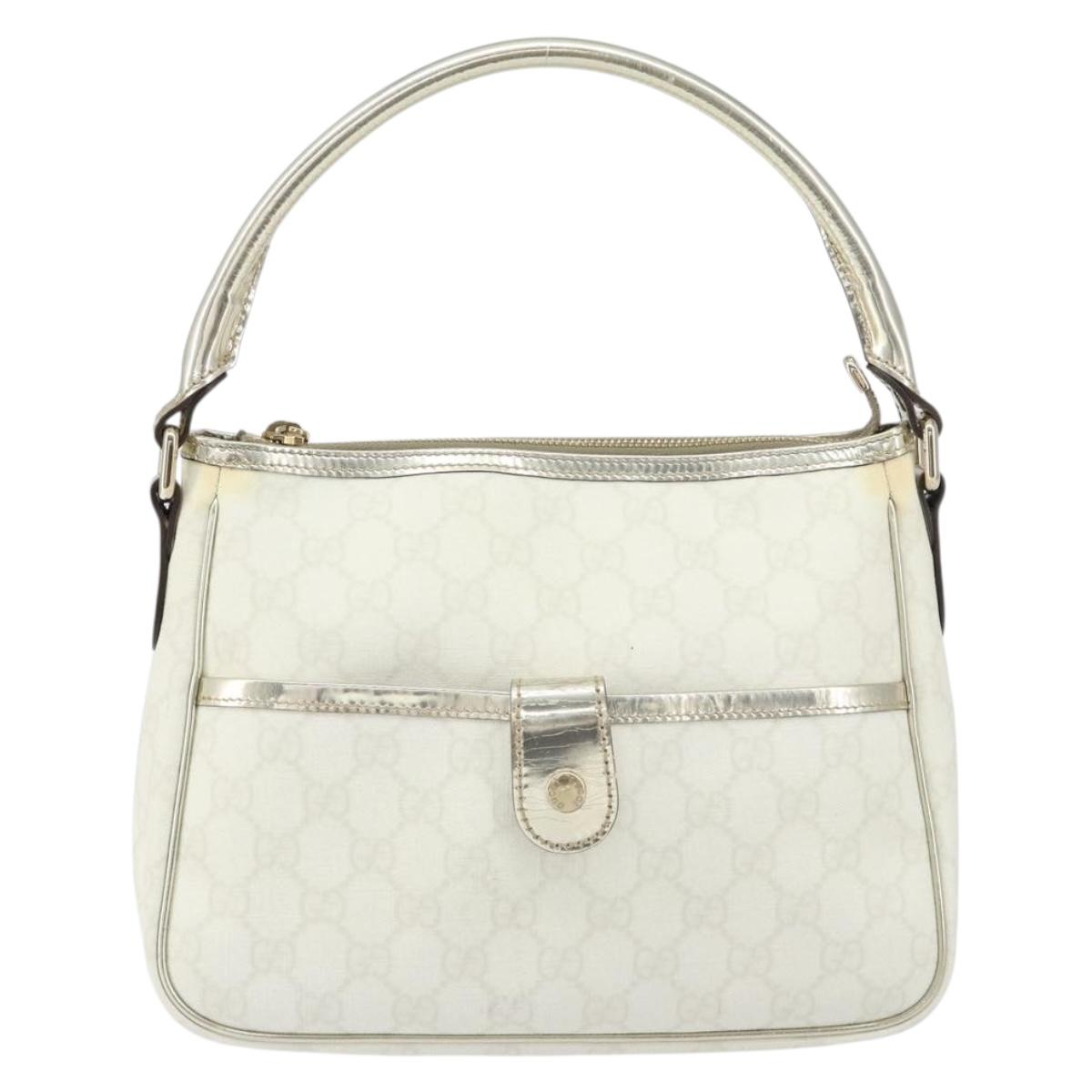 GUCCI GG Supreme Hand Bag PVC Leather White Gold 190258 Auth 157336