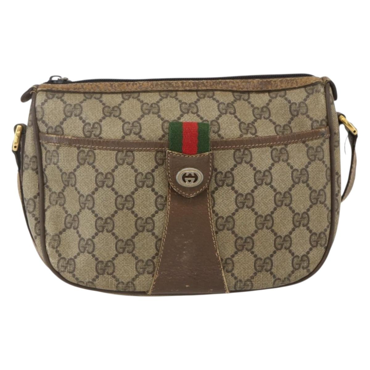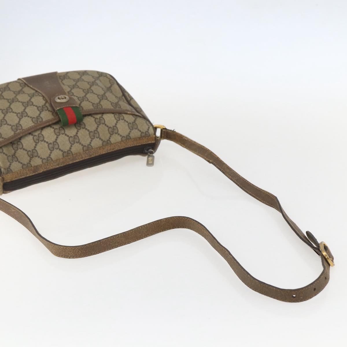 GUCCI GG Supreme Web Sherry Line Bag PVC Beige Gold 89 02 032 Auth 160476