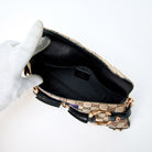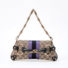 GUCCI Horsebit Shoulder Bag Beige Purple Black Gold Canvas Auth