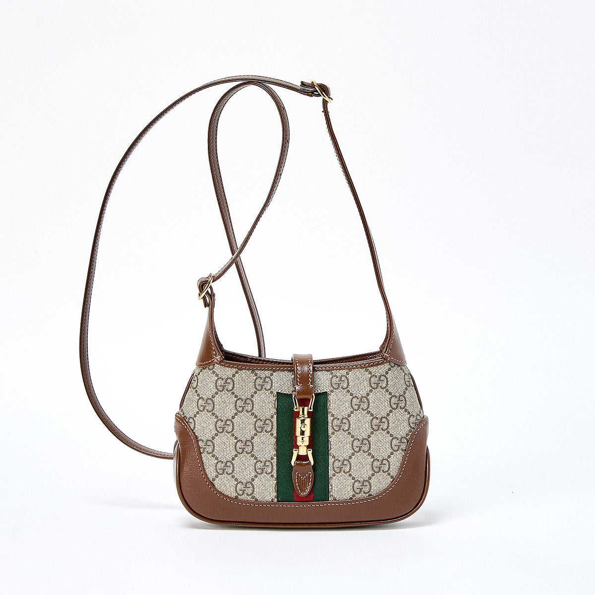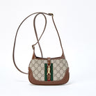GUCCI Jackie Shoulder Bag Brown Green Red Gold Canvas Auth