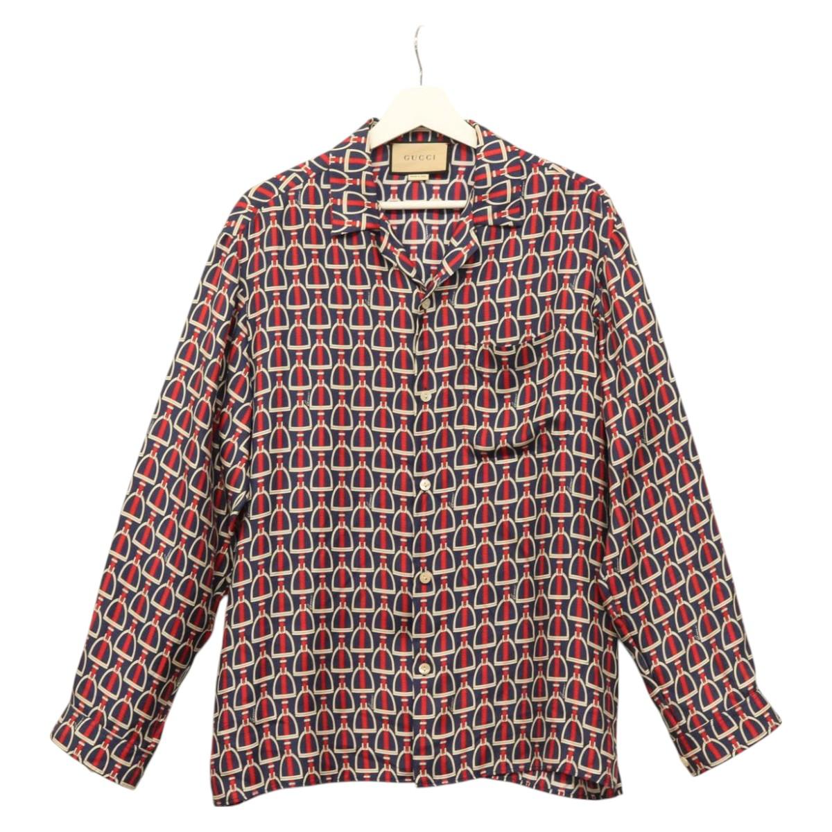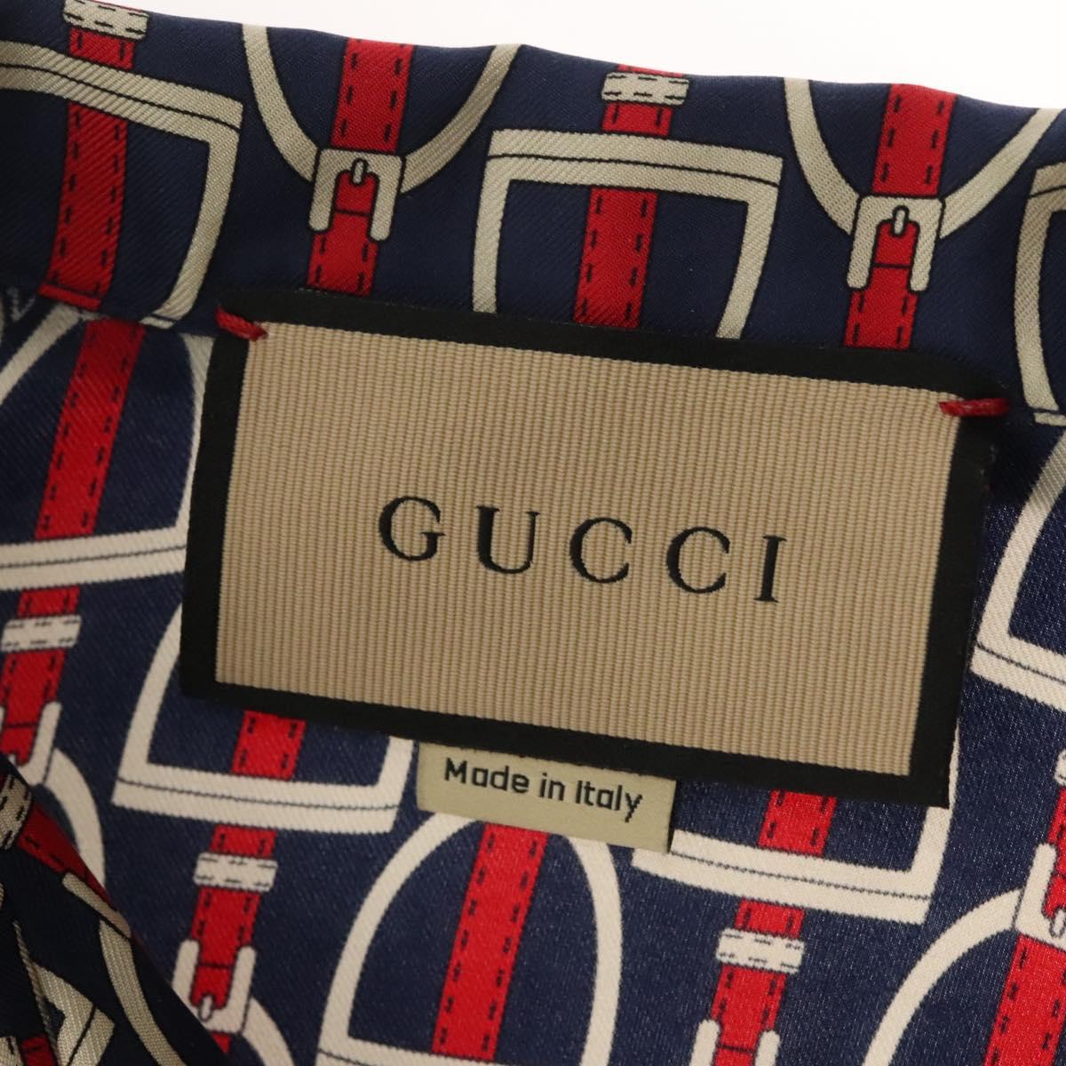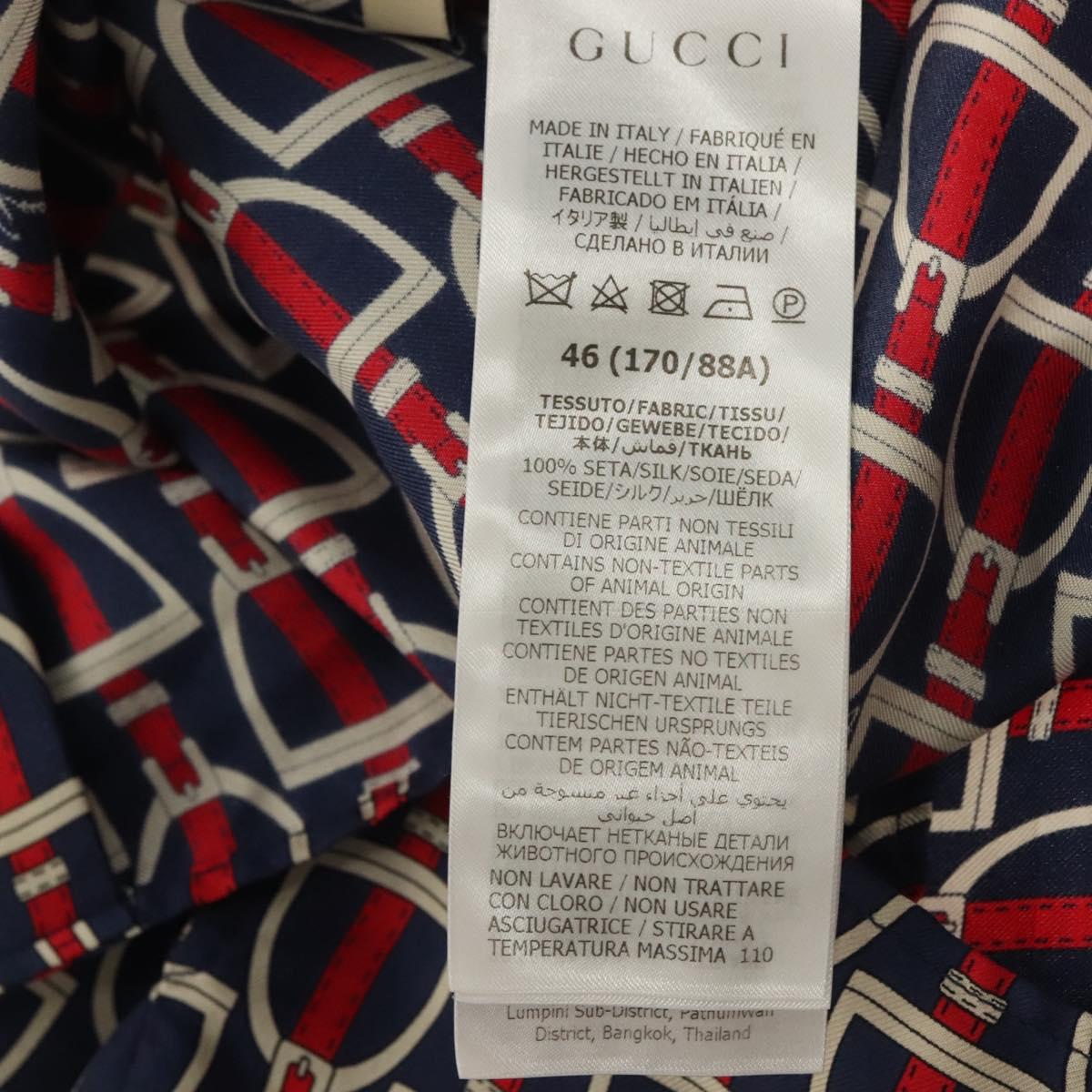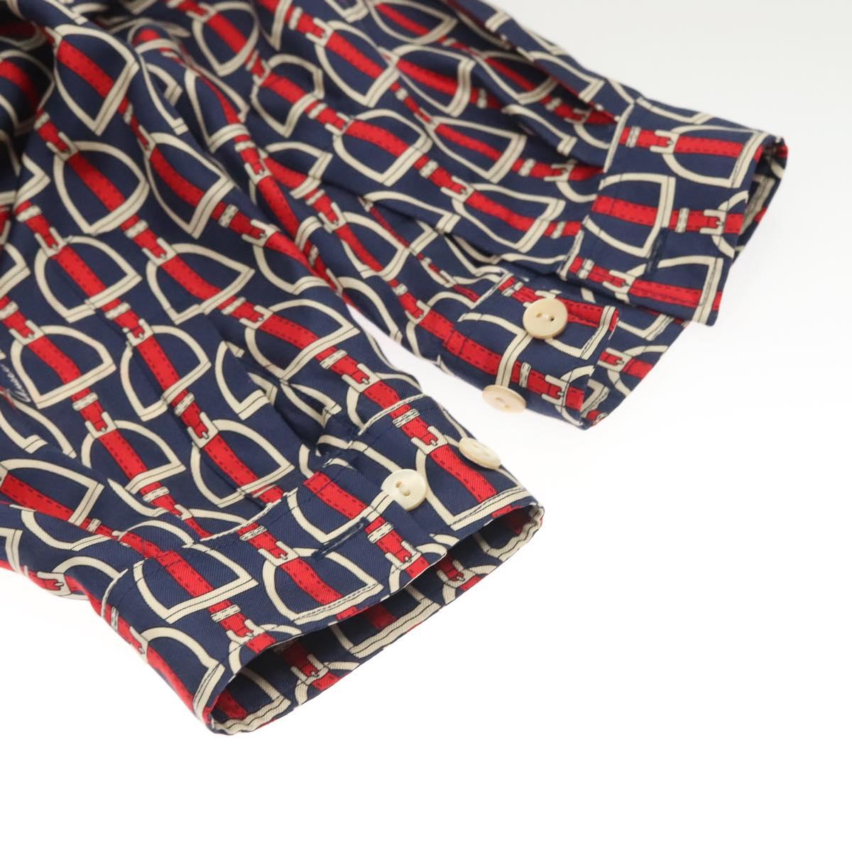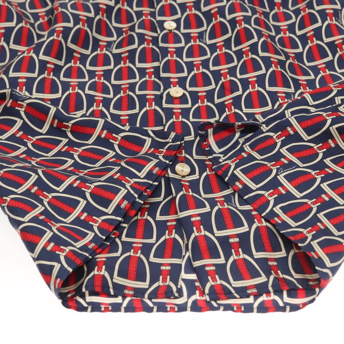 GUCCI Long Sleeved Shirt Silk 46 Red Navy Auth ym054M