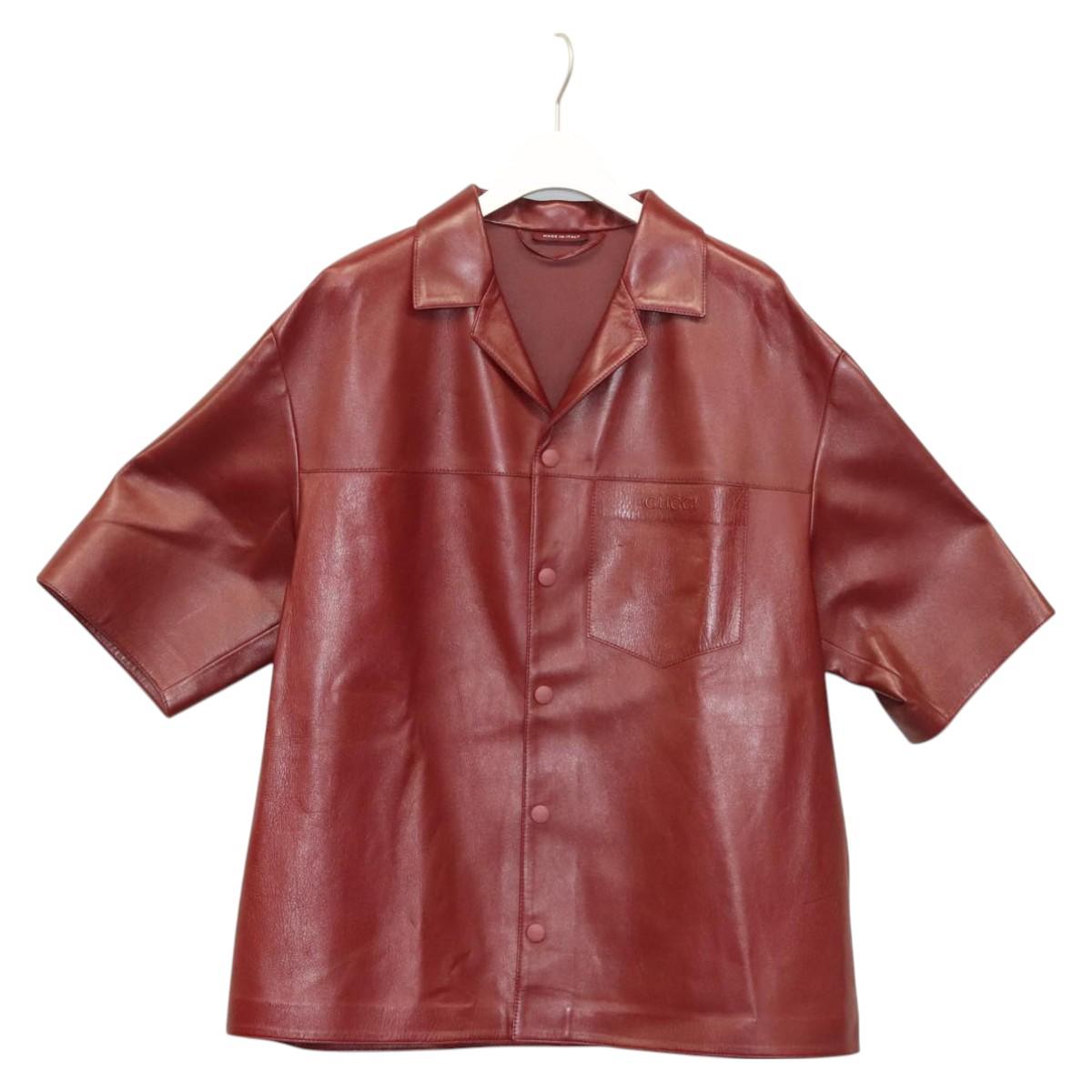 GUCCI Short Sleeve Leather Shirt Shirt Lamb Skin 48 Bordeaux 790536 Auth ym027M