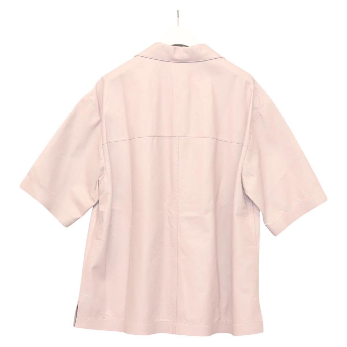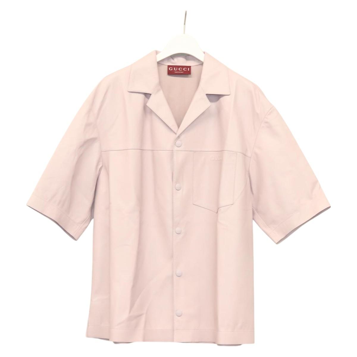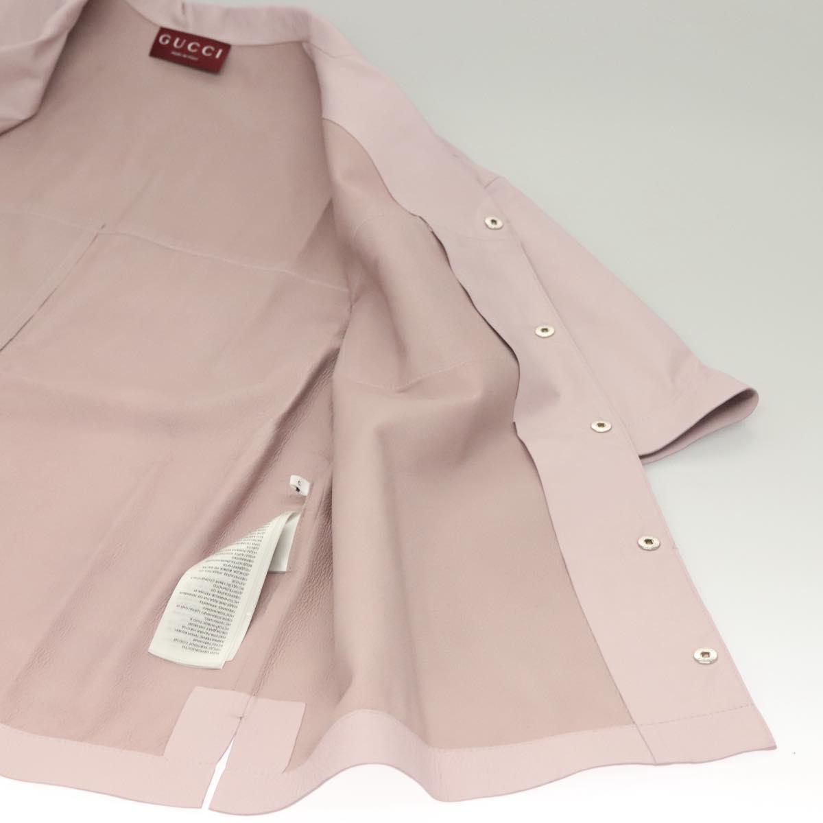 GUCCI Short Sleeve Leather Shirt Shirt Lamb Skin 48 Pink Auth ym035M