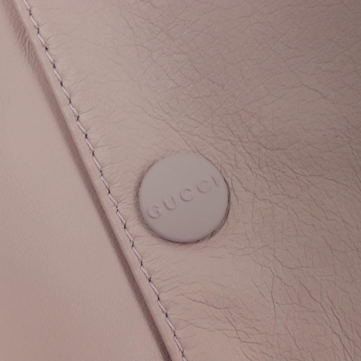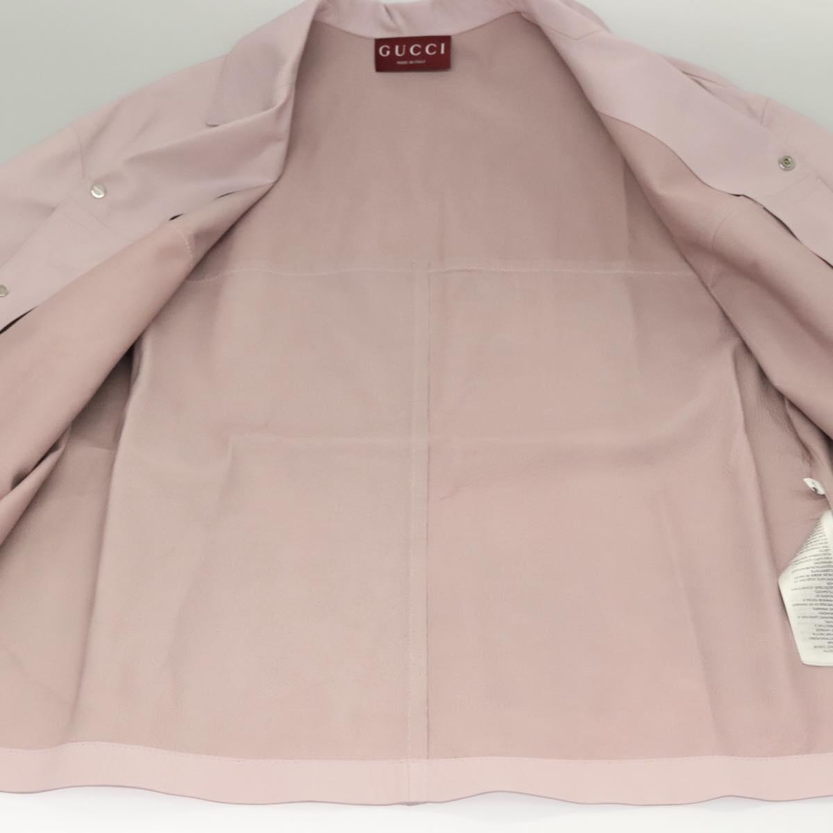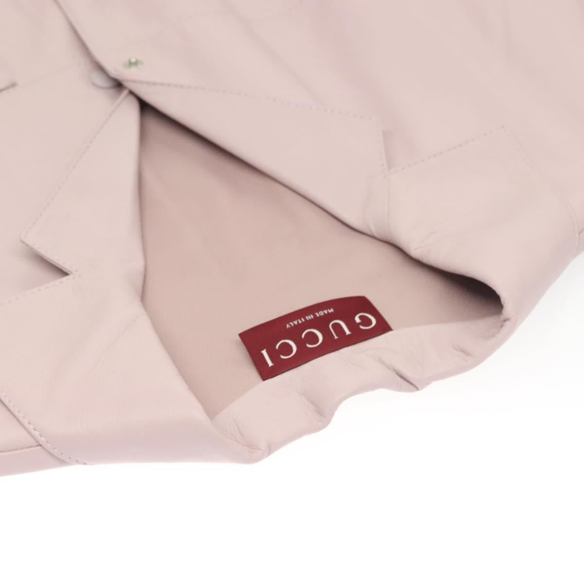 GUCCI Short Sleeve Leather Shirt Shirt Lamb Skin 48 Pink Auth ym035M