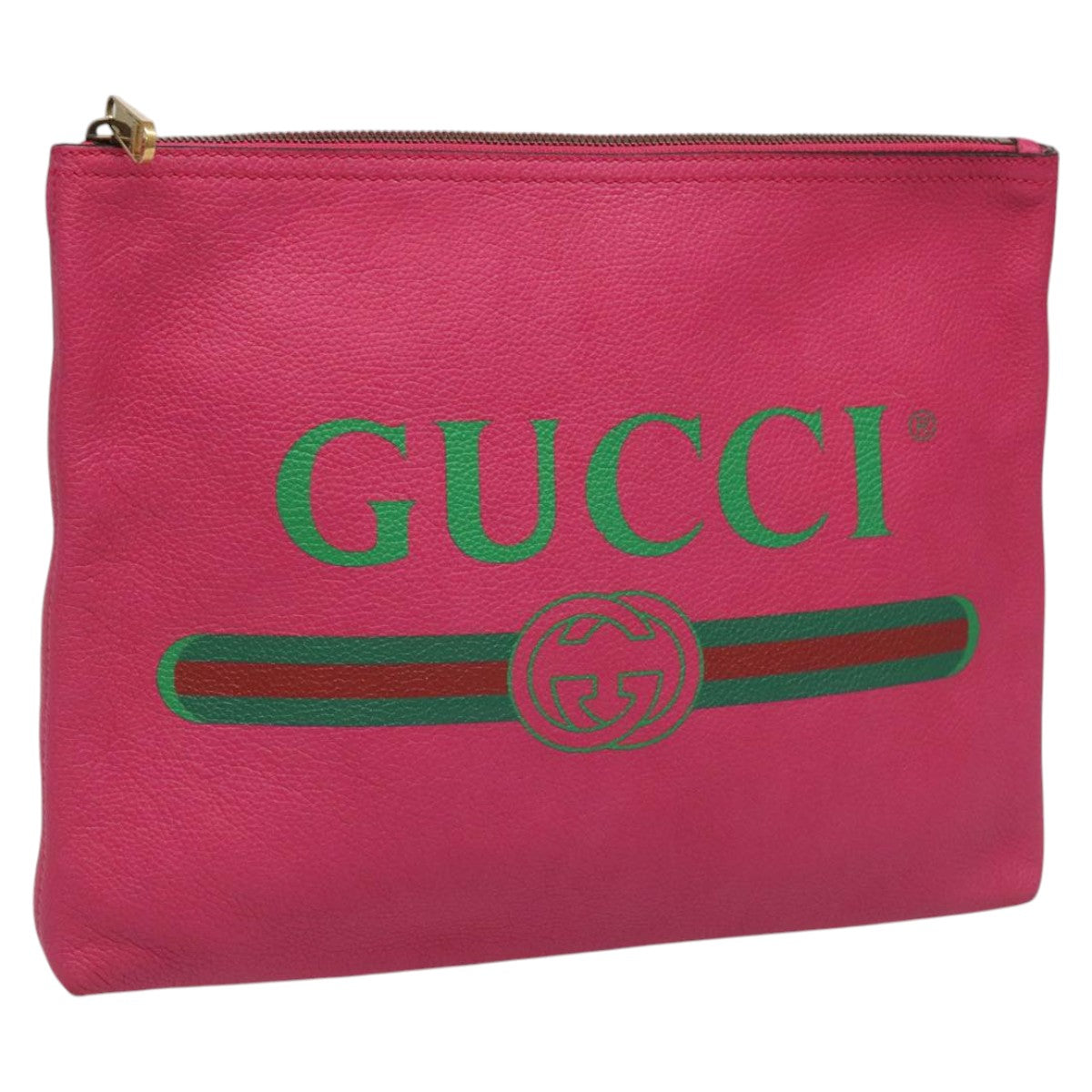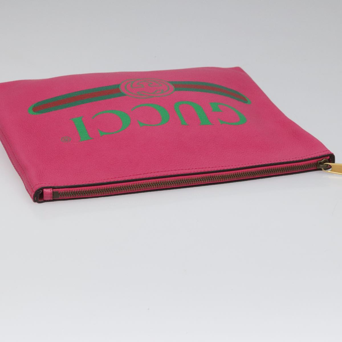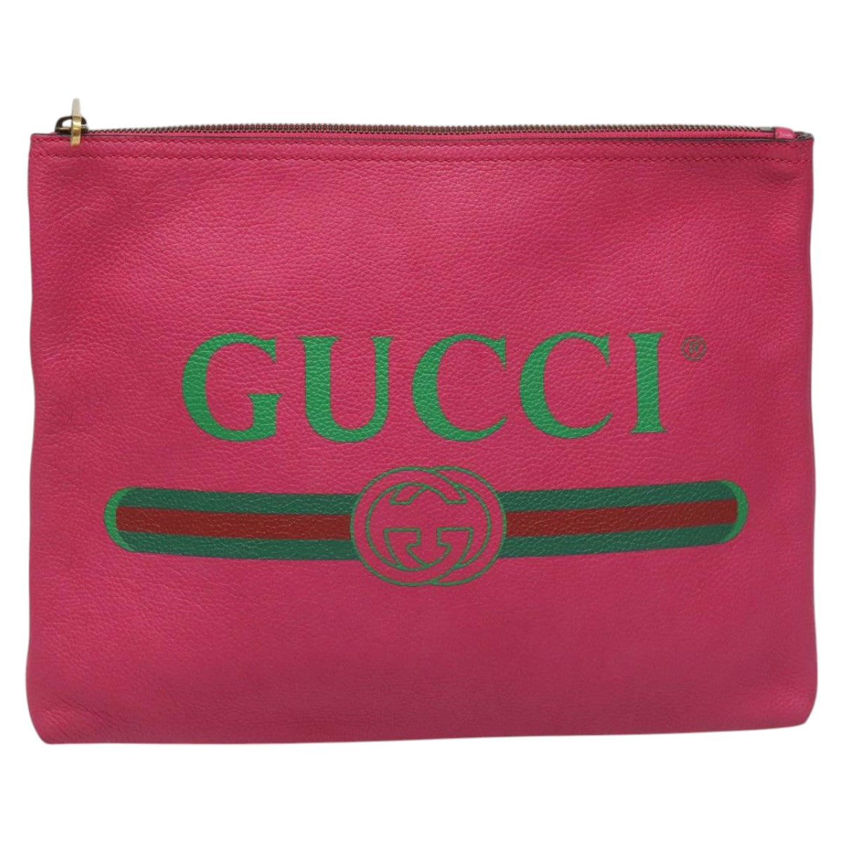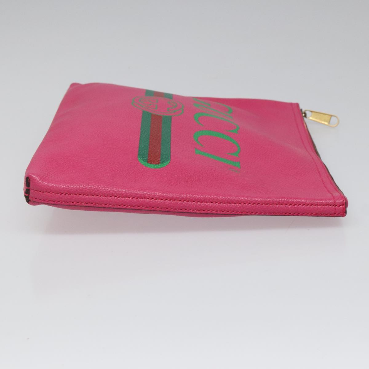 GUCCI Web Sherry Line Clutch Bag Leather Pink Gold 500981 Auth mr968V