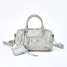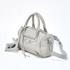BALENCIAGA Classic Mini Twiggy Handbag Grey Silver Leather Auth