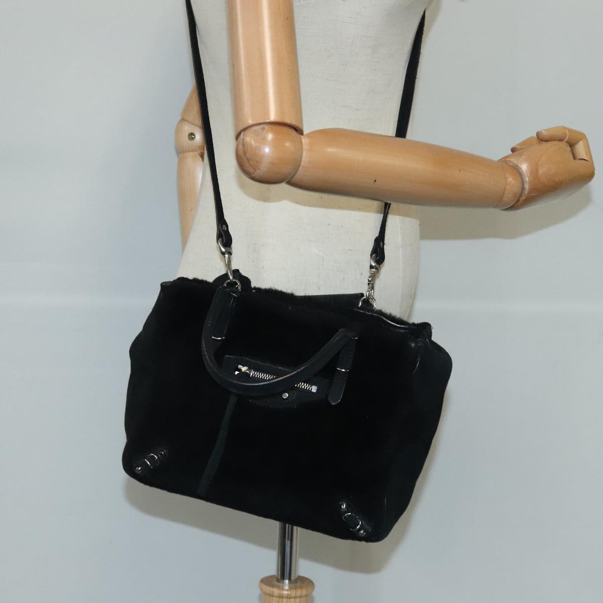 BALENCIAGA Hand Bag Suede 2way Black Silver 305572 Auth ki5224V