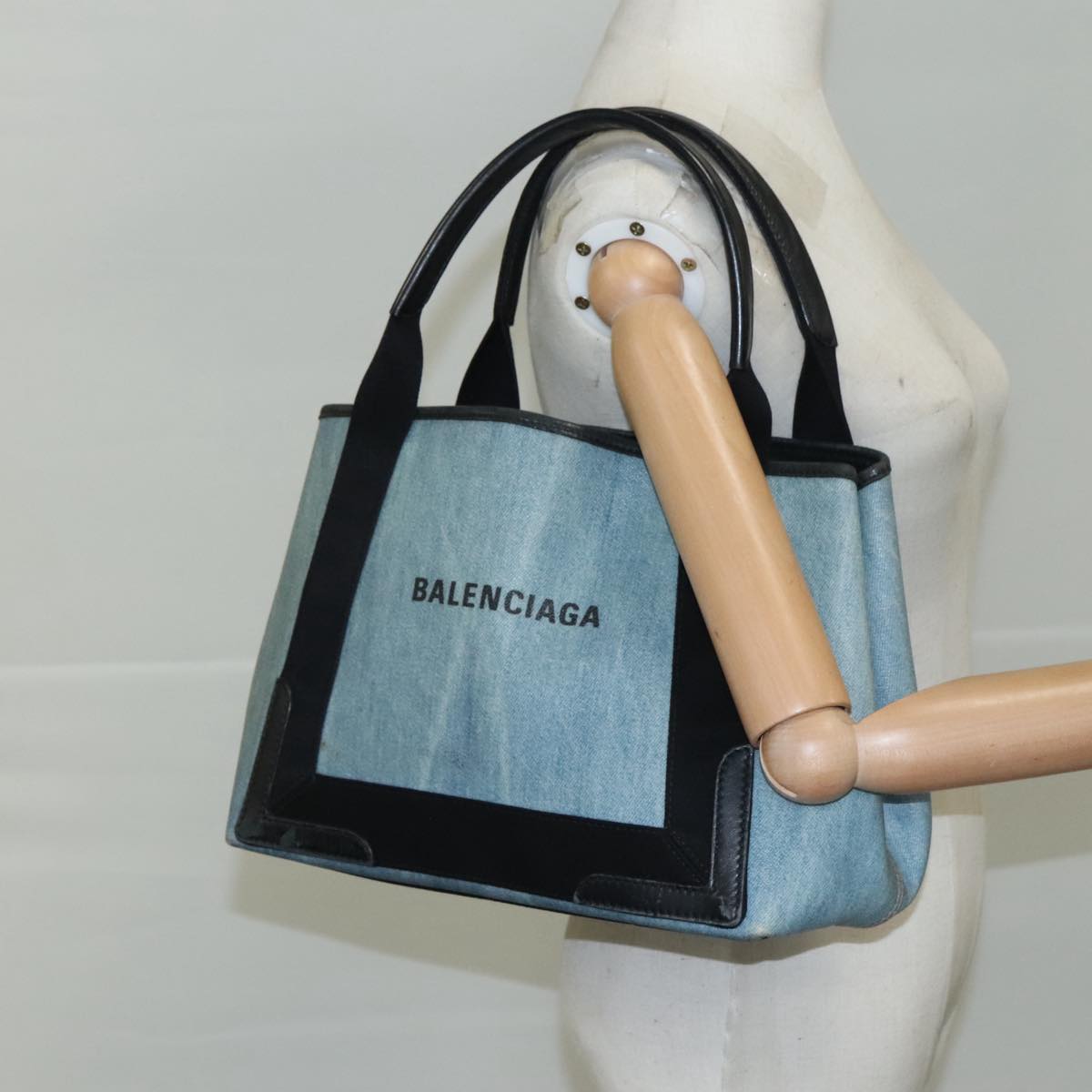 BALENCIAGA Navy Cabas S Hand Bag PVC Leather Blue 339933 Auth yk16746V