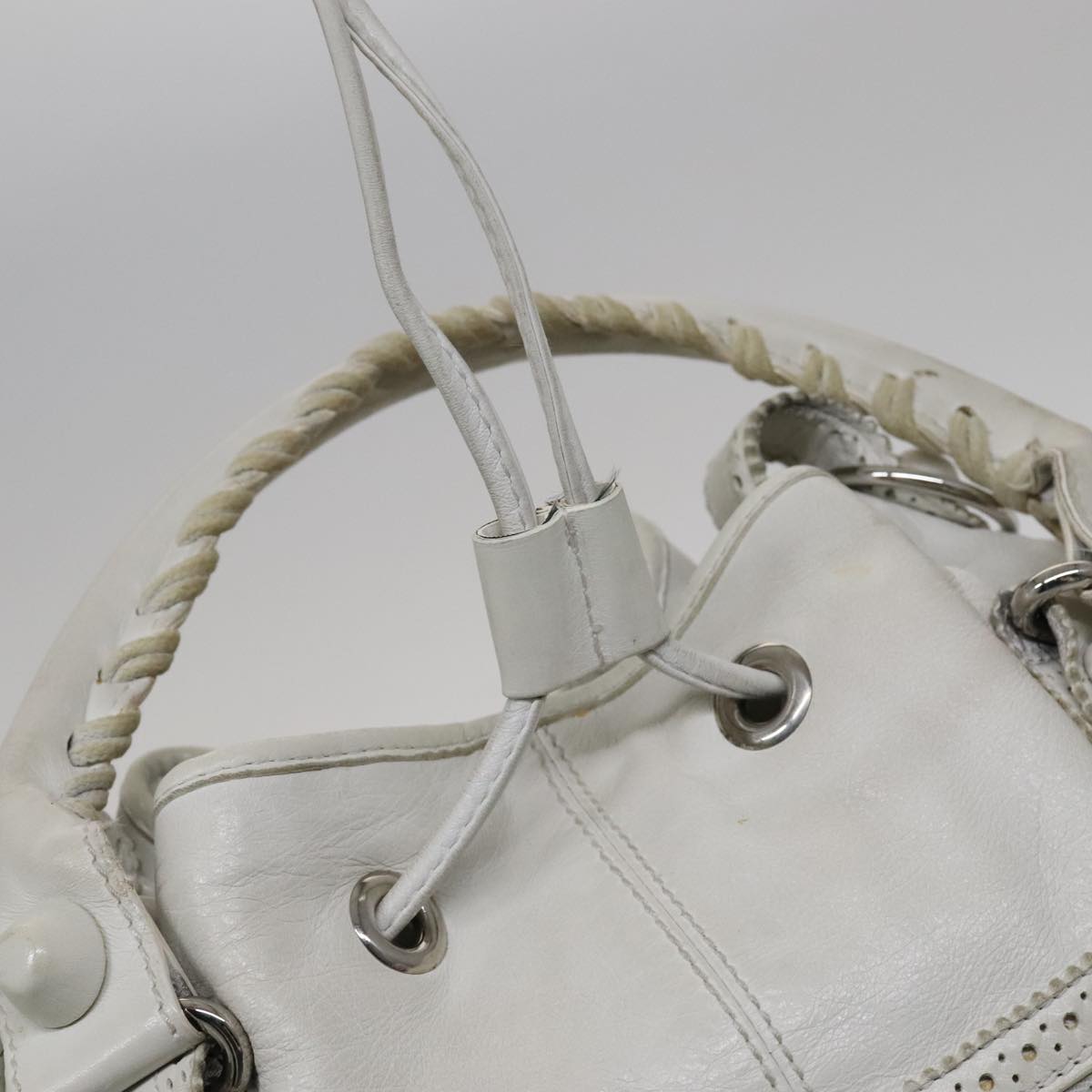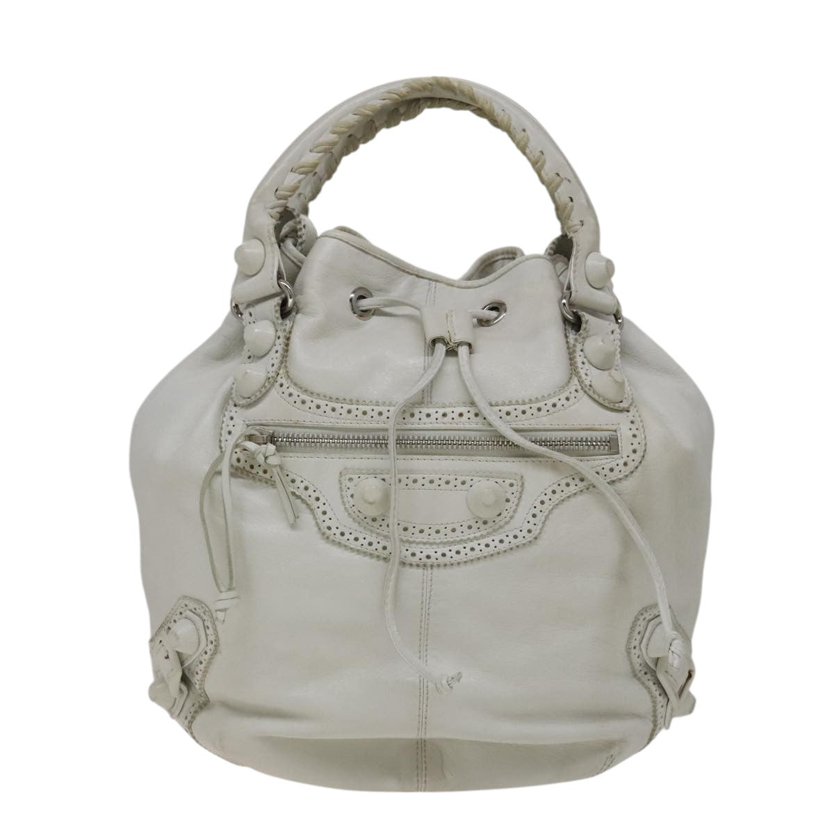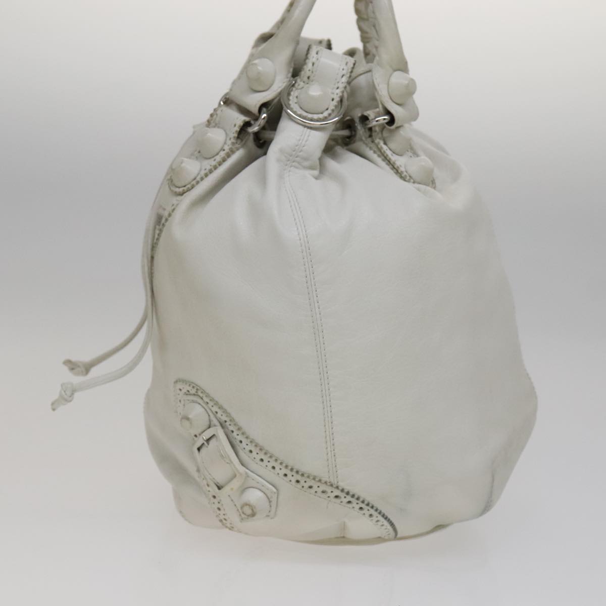 BALENCIAGA The Giant Pom Pom Hand Bag Leather 2way White 204540 Auth yk16673V