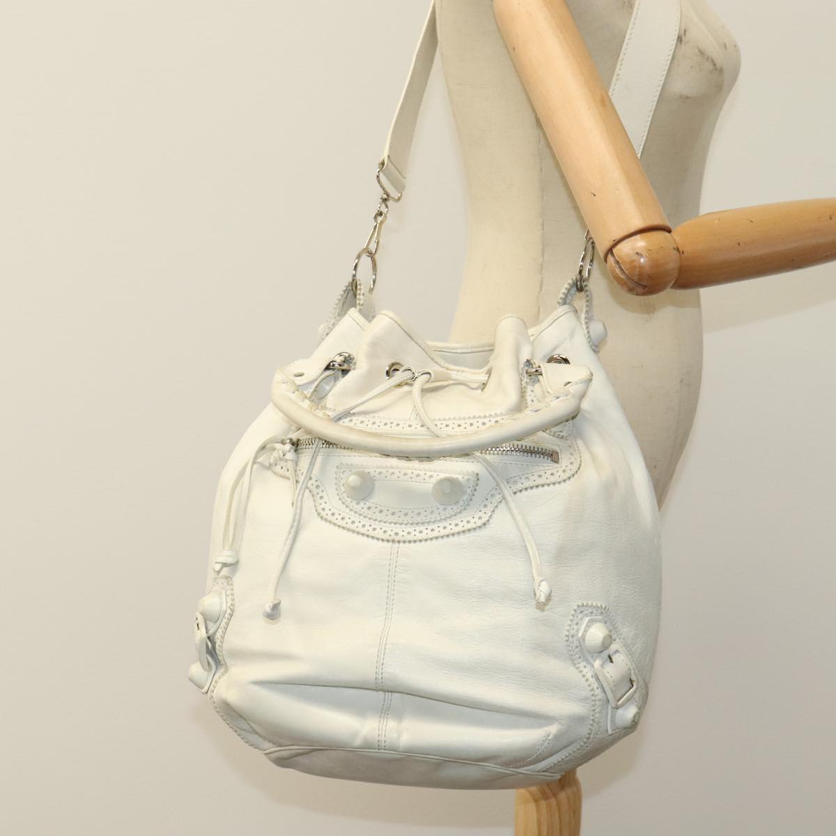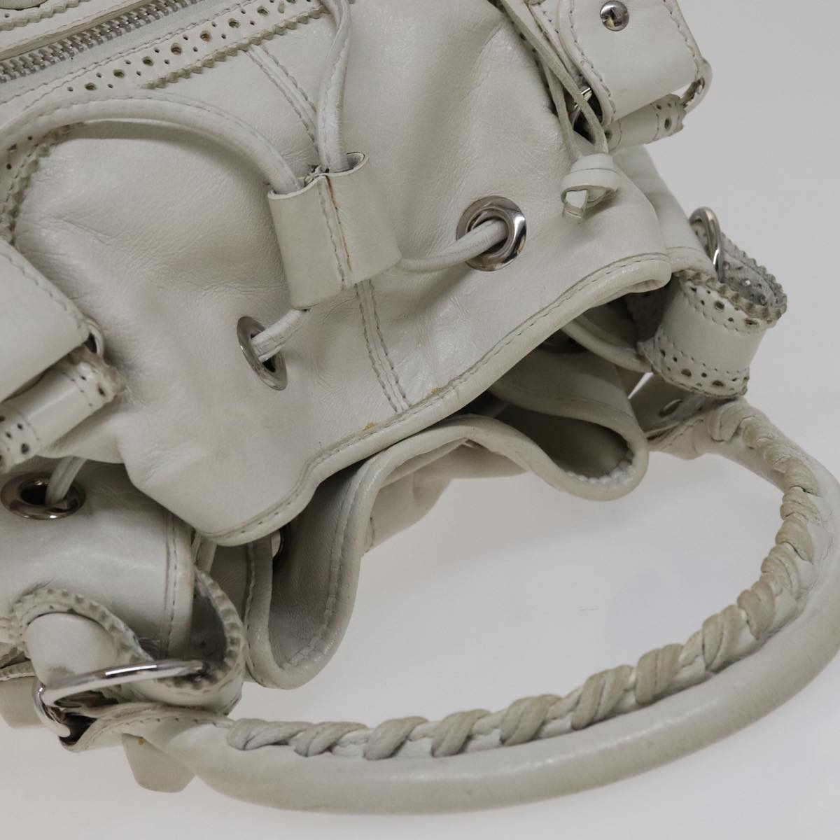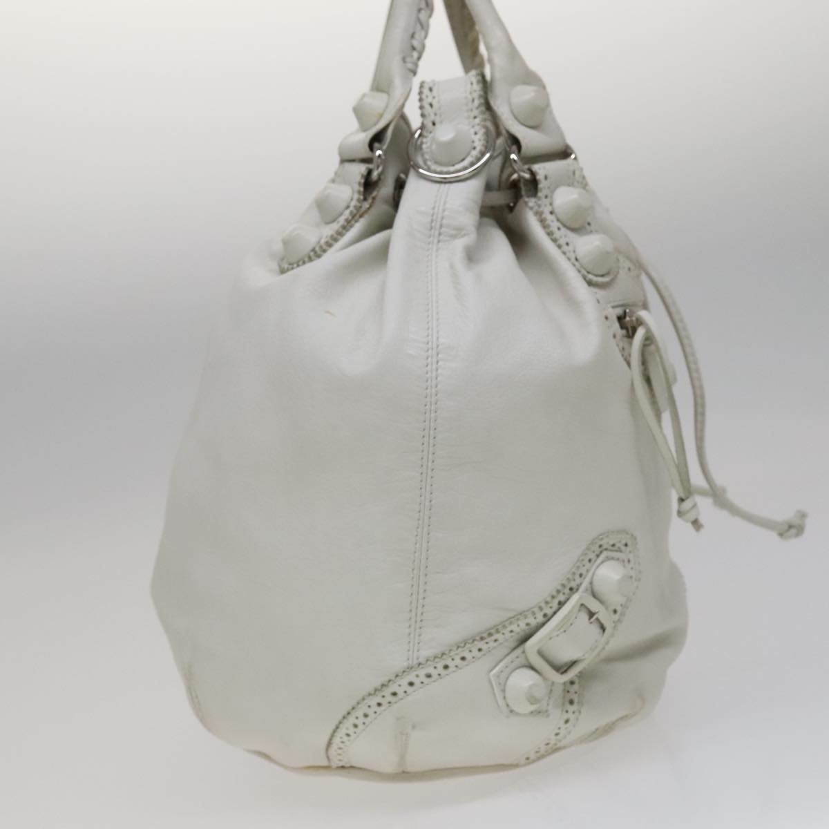 BALENCIAGA The Giant Pom Pom Hand Bag Leather 2way White 204540 Auth yk16673V