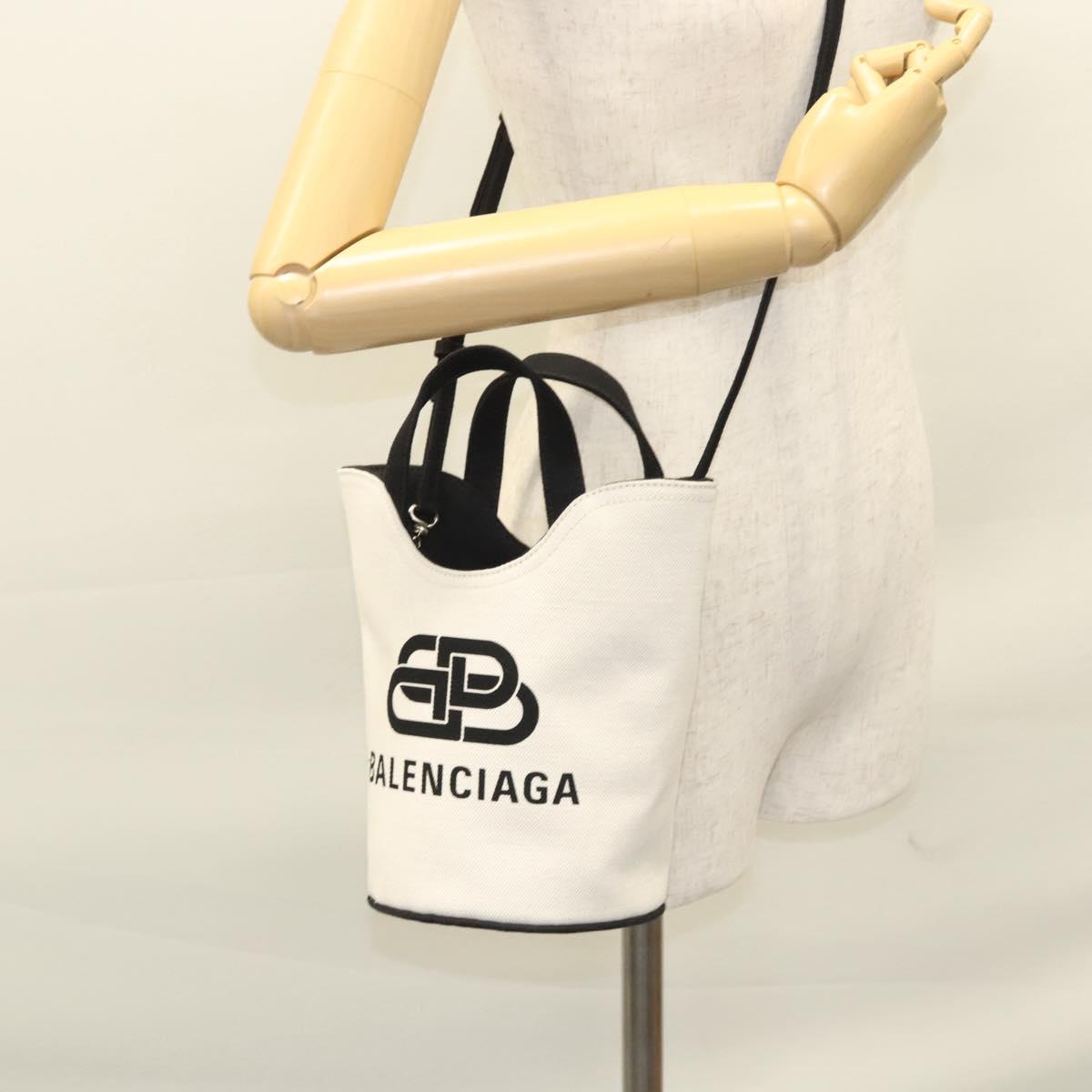 BALENCIAGA Wave XS Hand Bag Canvas 2way White 619979 Auth ac3745V
