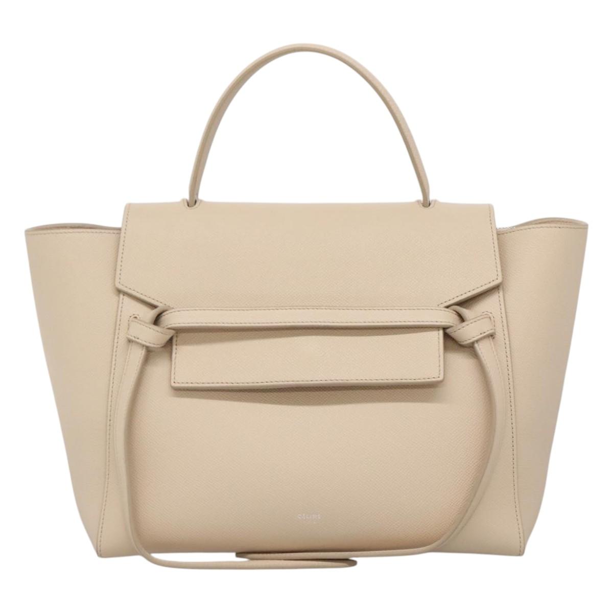 CELINE Mini Belt bag Hand Bag Leather 2way Beige Silver Auth BD1057AM
