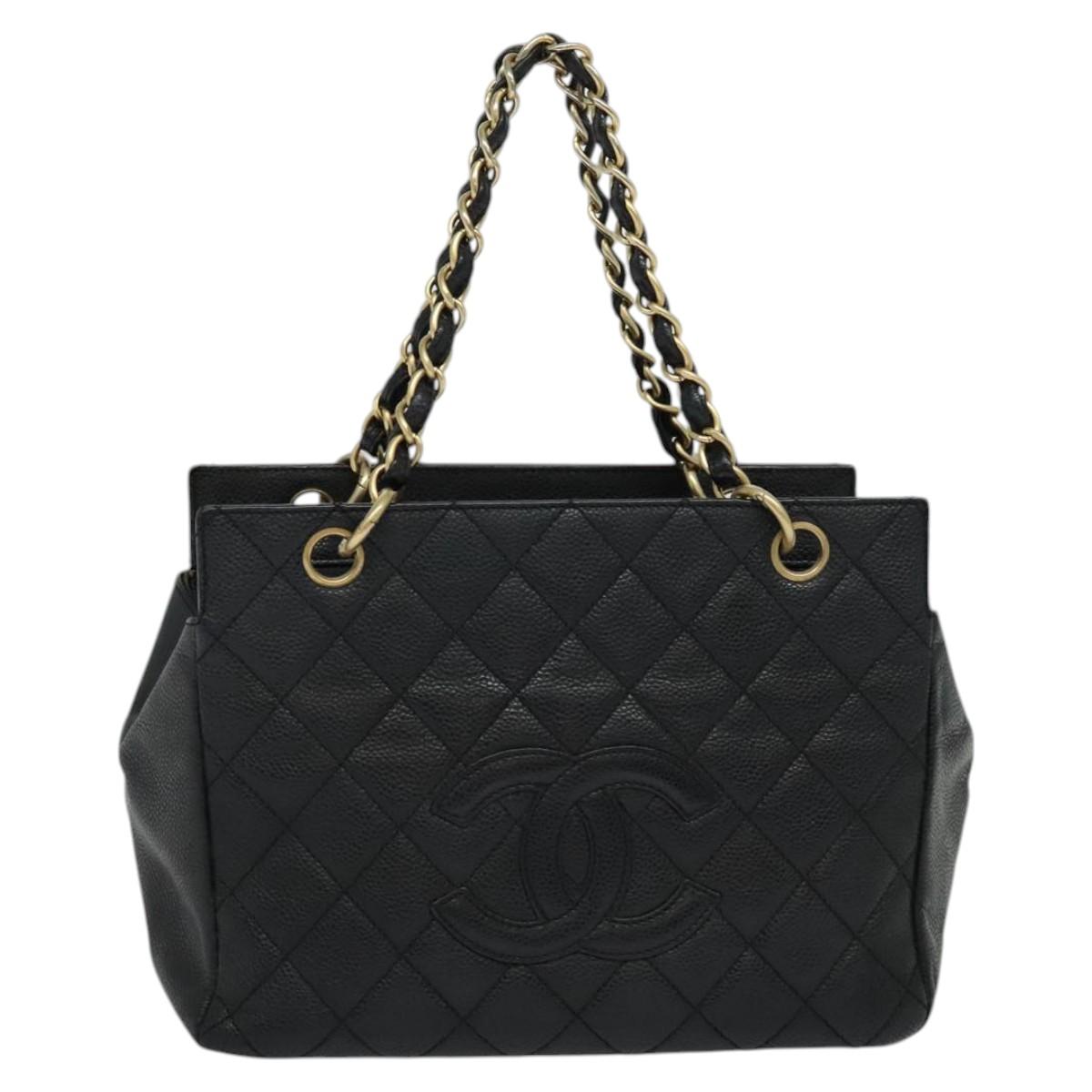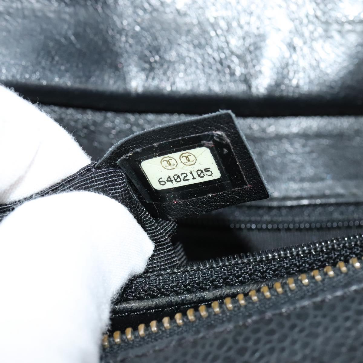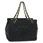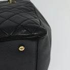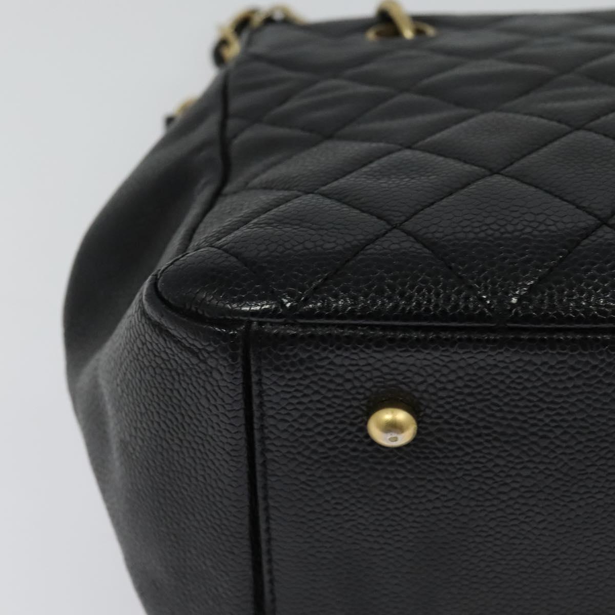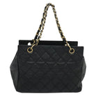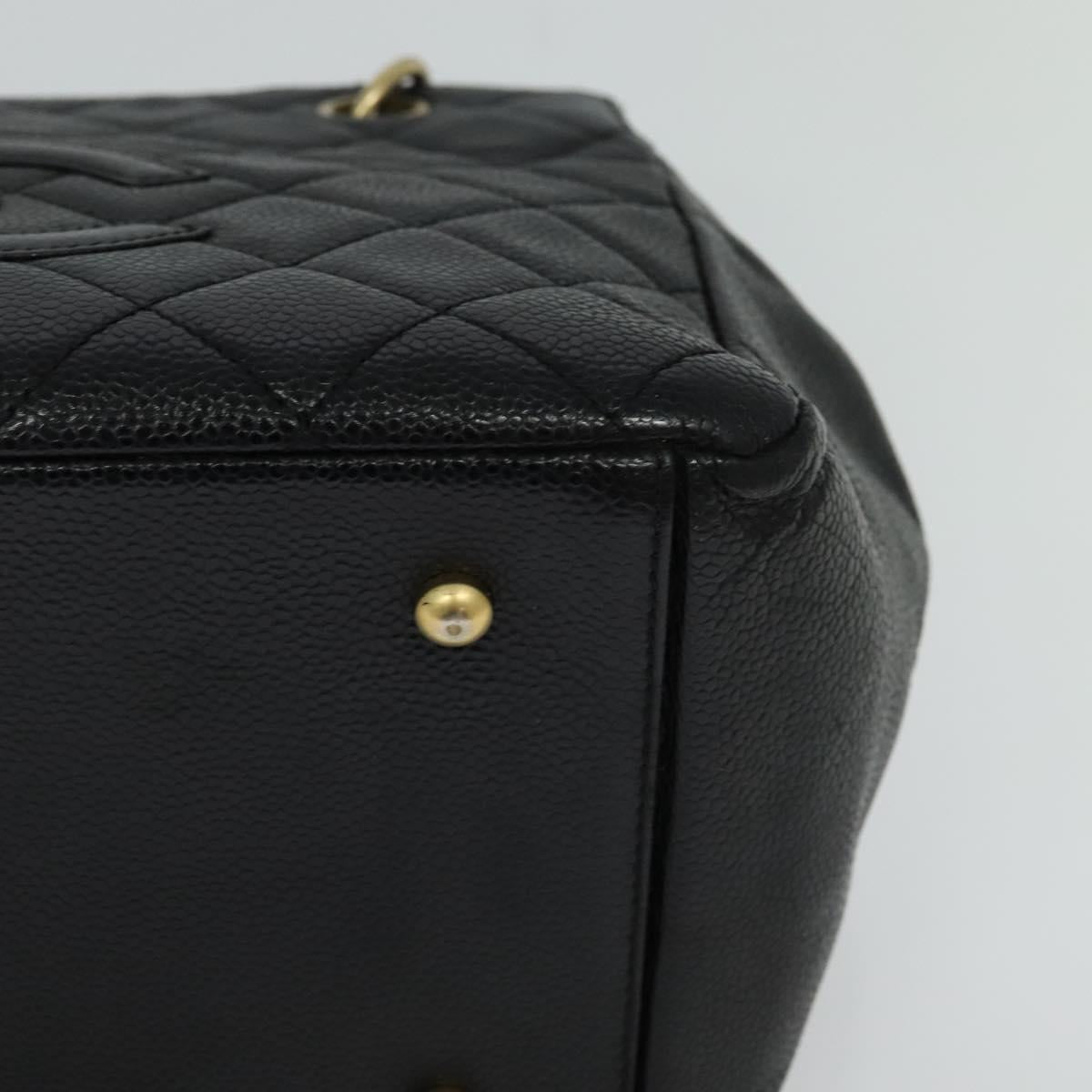 CHANEL Chain Hand Bag Caviar Skin Black Gold CC Auth IN015V